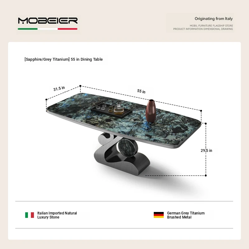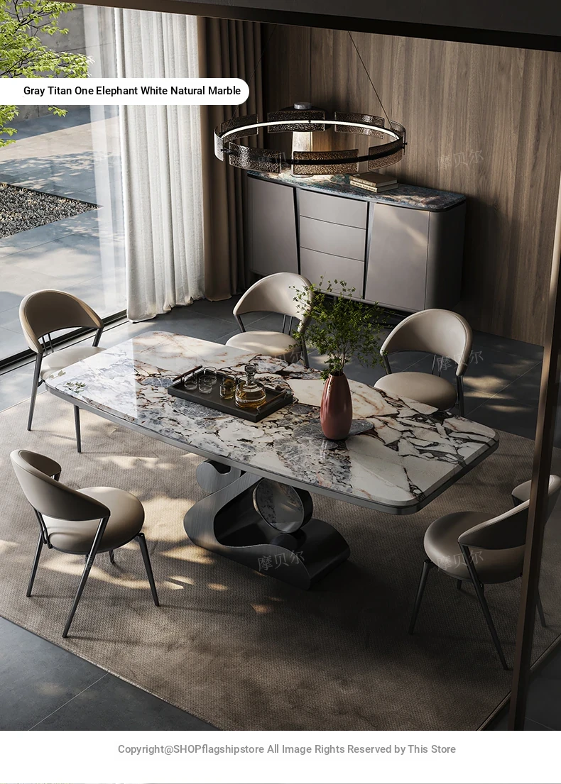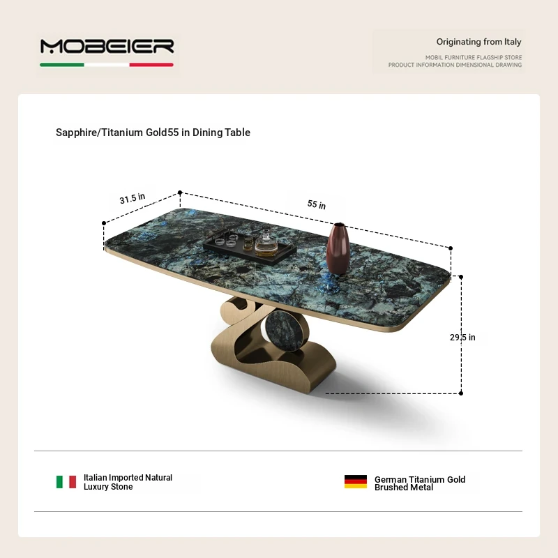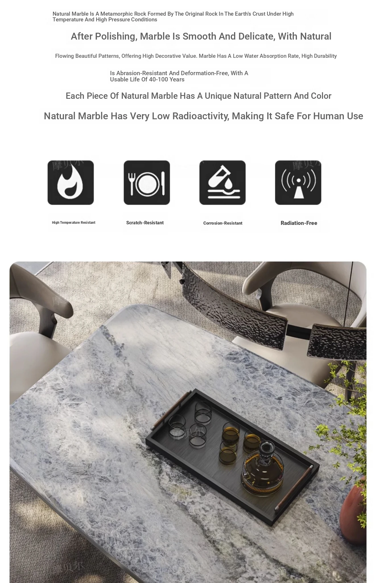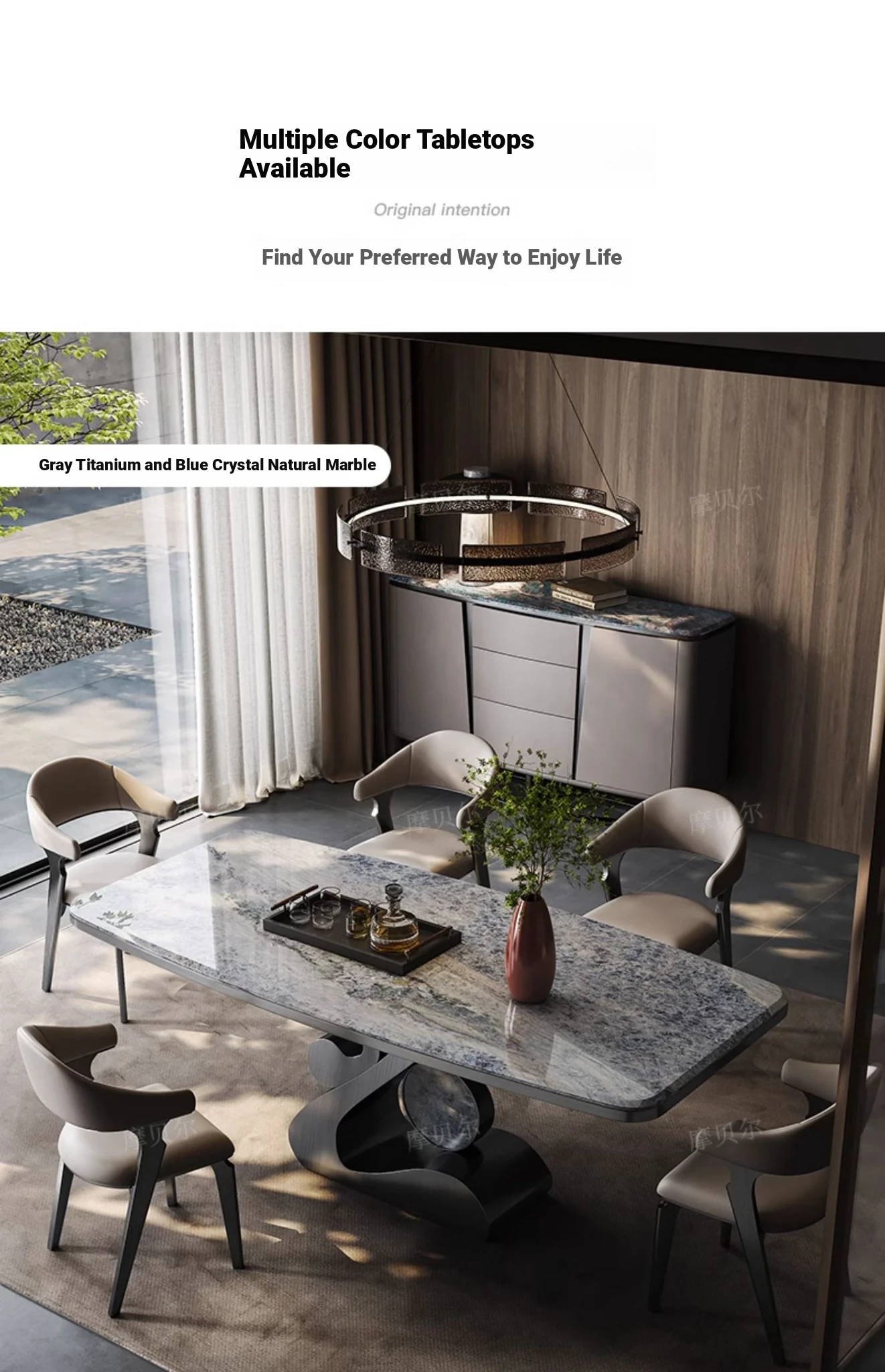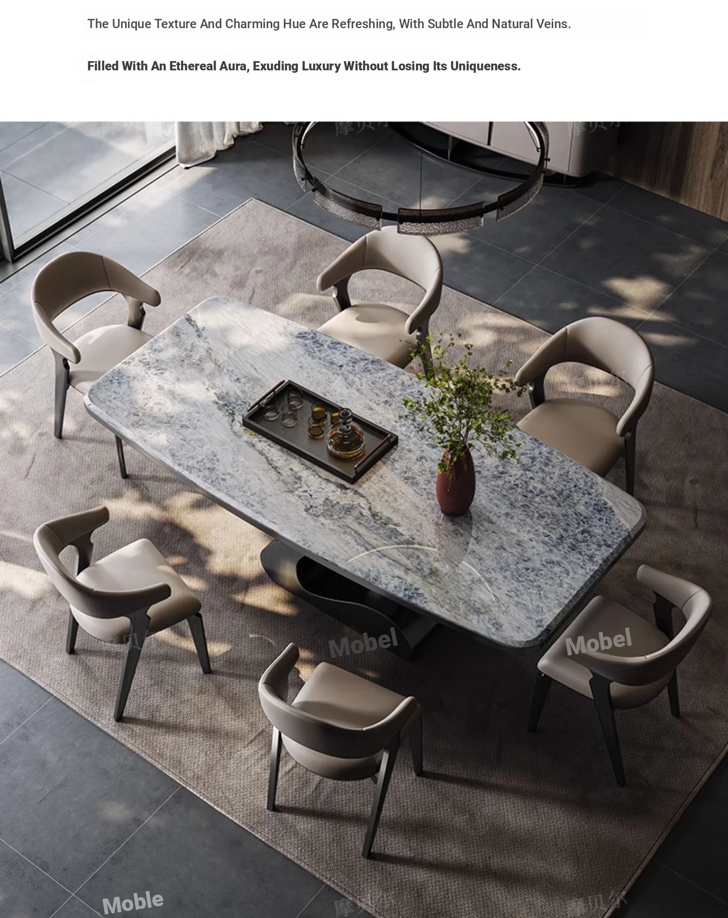 Mobeier Luxurious Marble Dining Table - Elegant Italian-Style Sapphire Stone Rectangular Table and Chair Set for Upscale Villas and Homes
