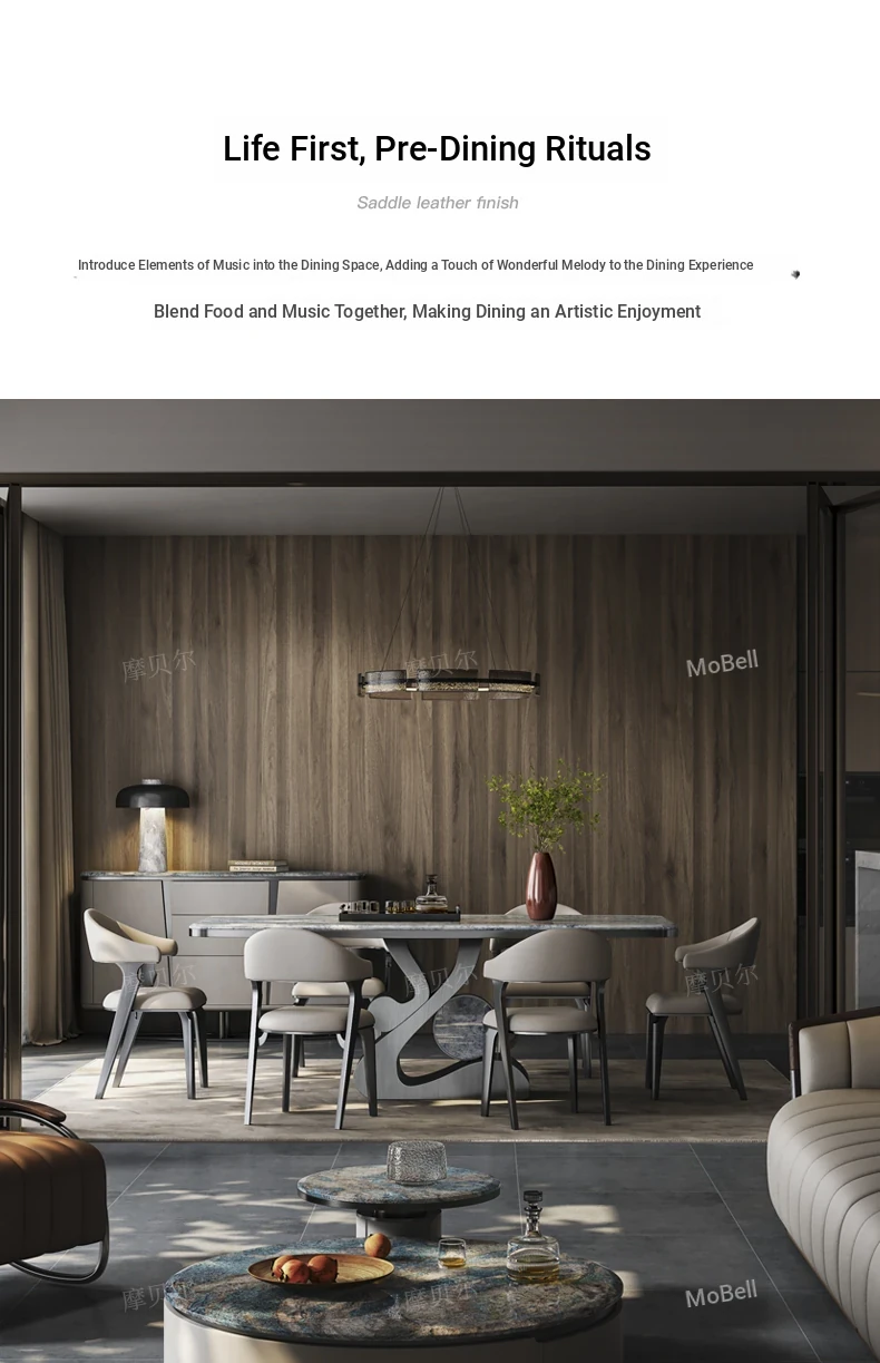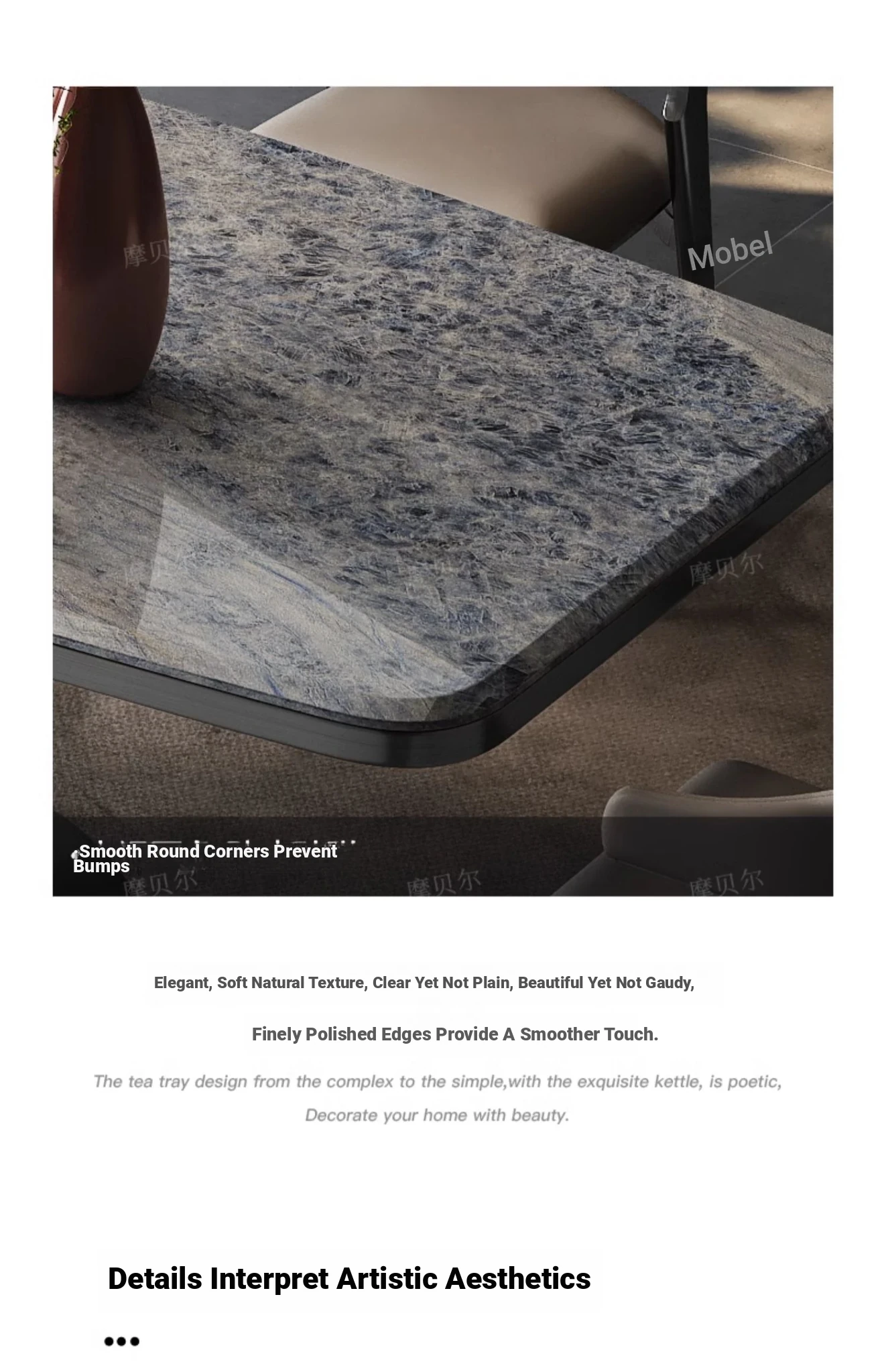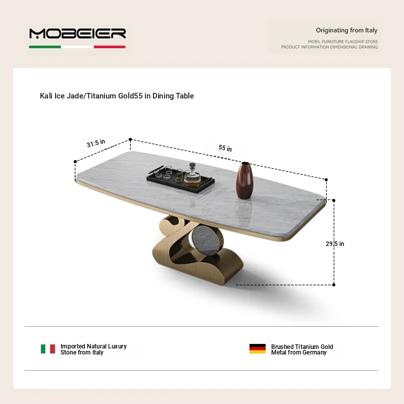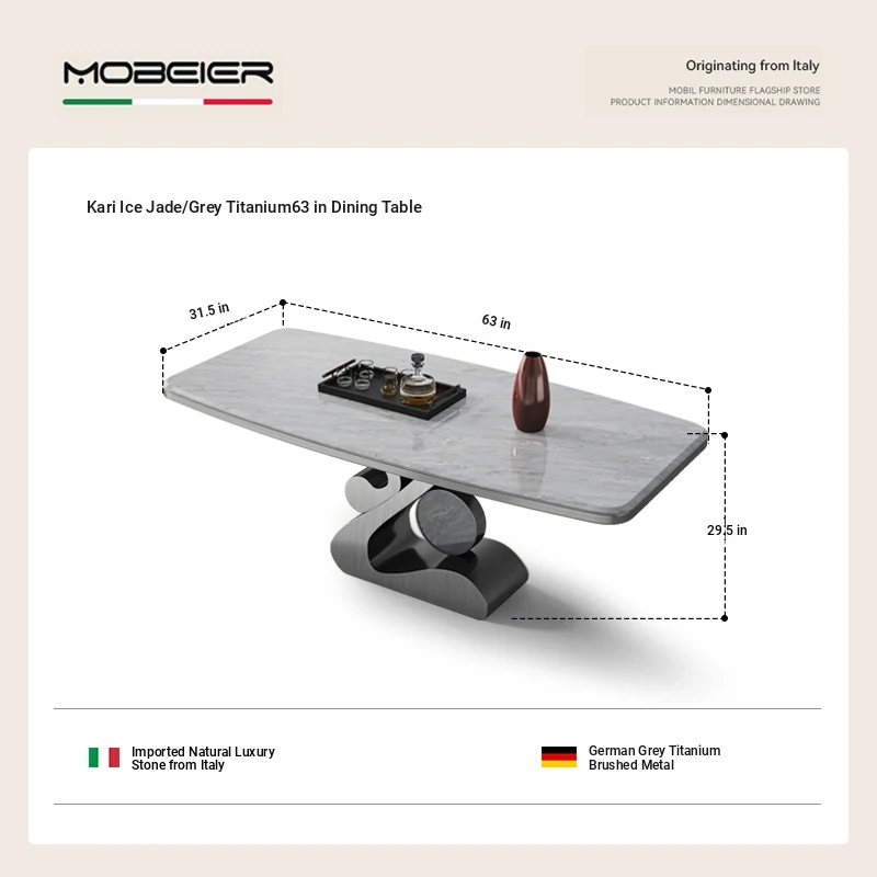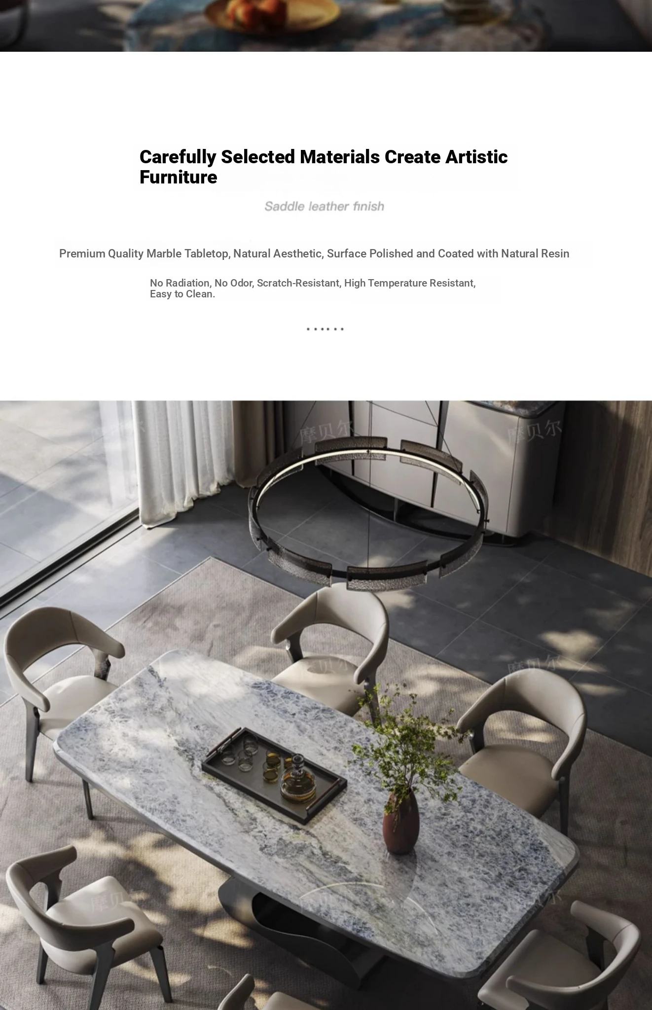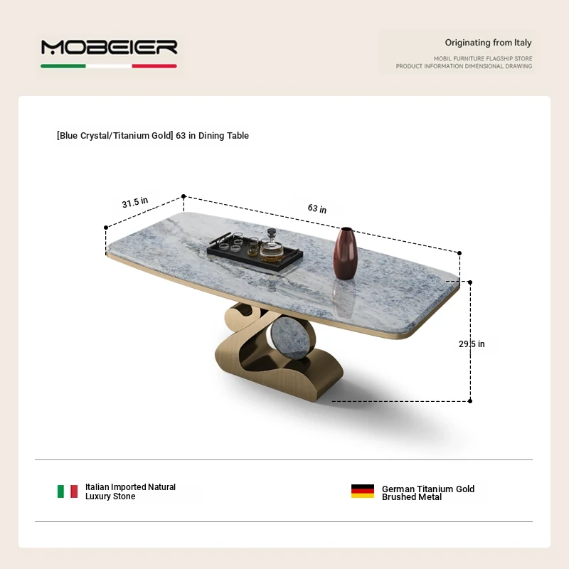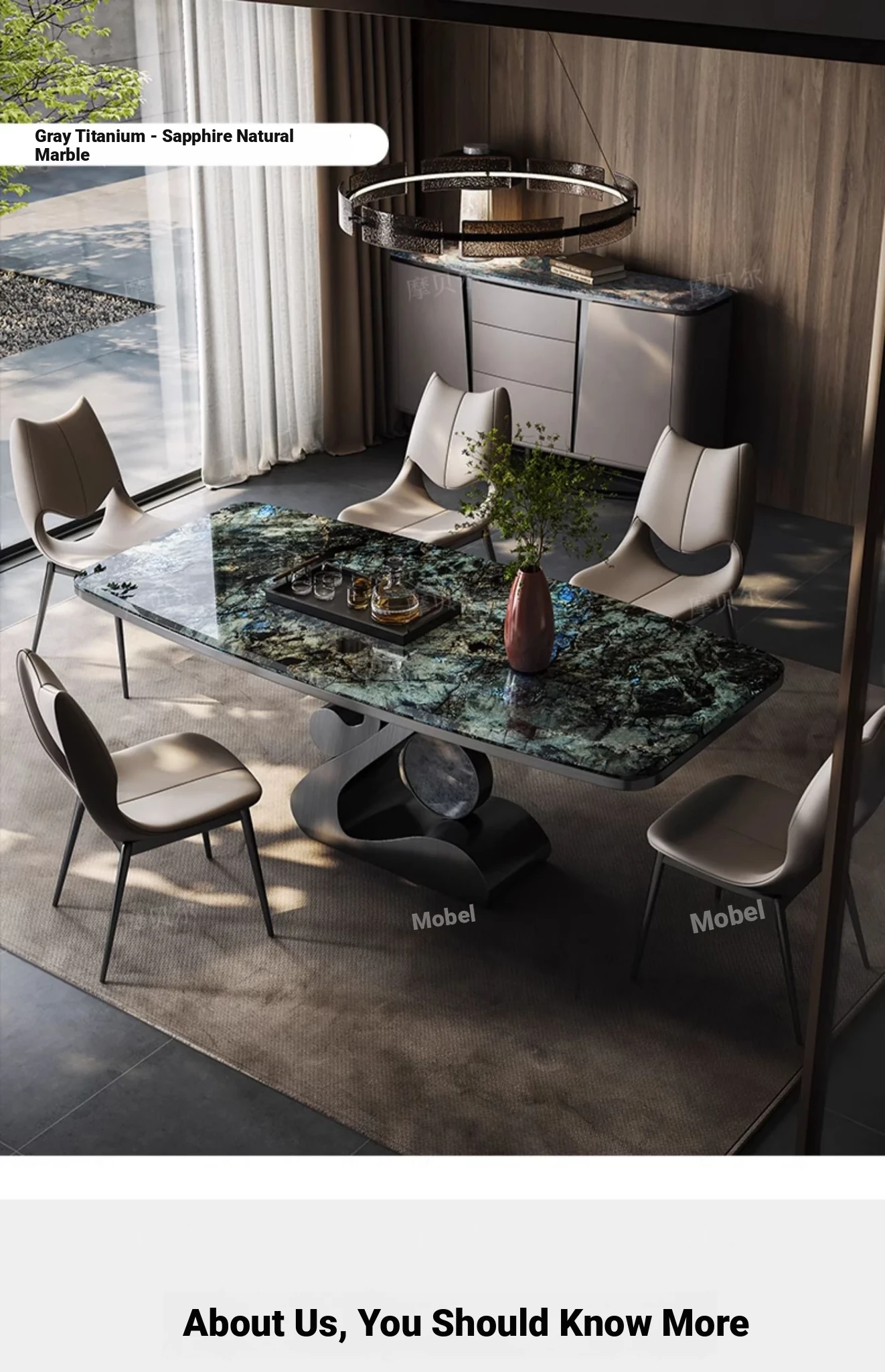 Mobeier Luxurious Marble Dining Table - Elegant Italian-Style Sapphire Stone Rectangular Table and Chair Set for Upscale Villas and Homes