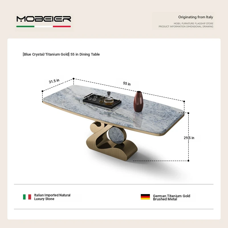 [Blue Crystal/Titanium] 55.12 in Dining Table