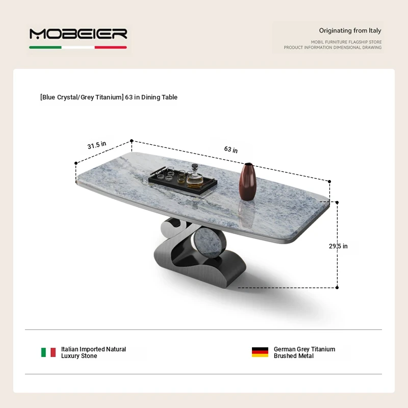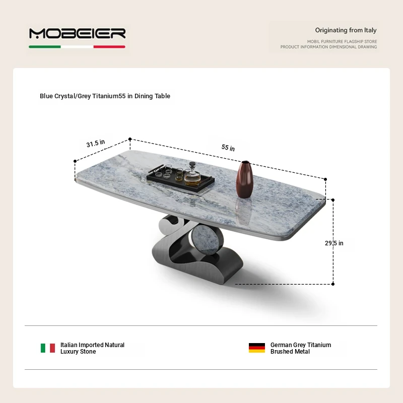 [Blue Crystal/Grey Titanium] 55.12 in Dining Table