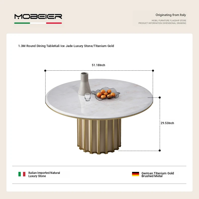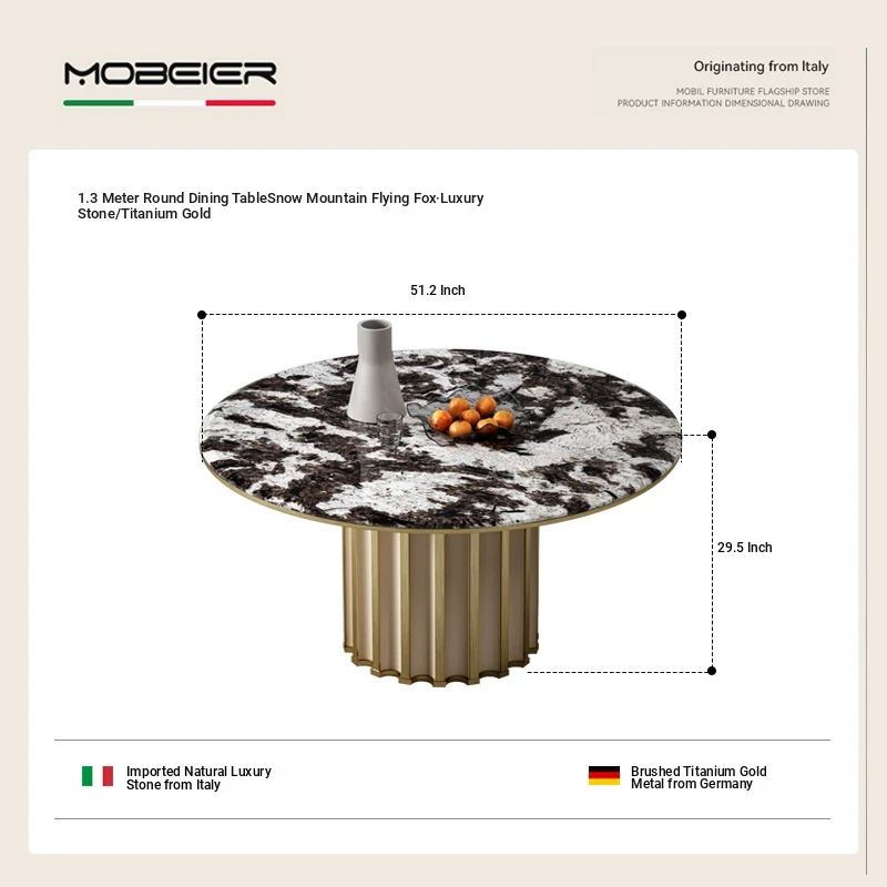 51.18 in Round Dining Table [Snow Mountain Flying Fox Luxury Stone/Titanium]]