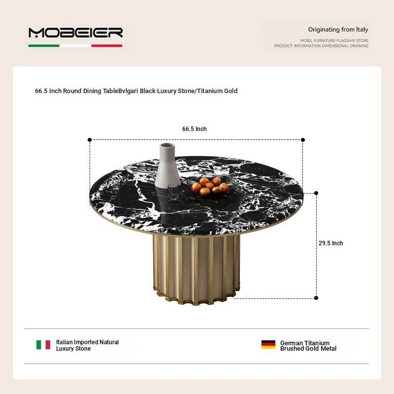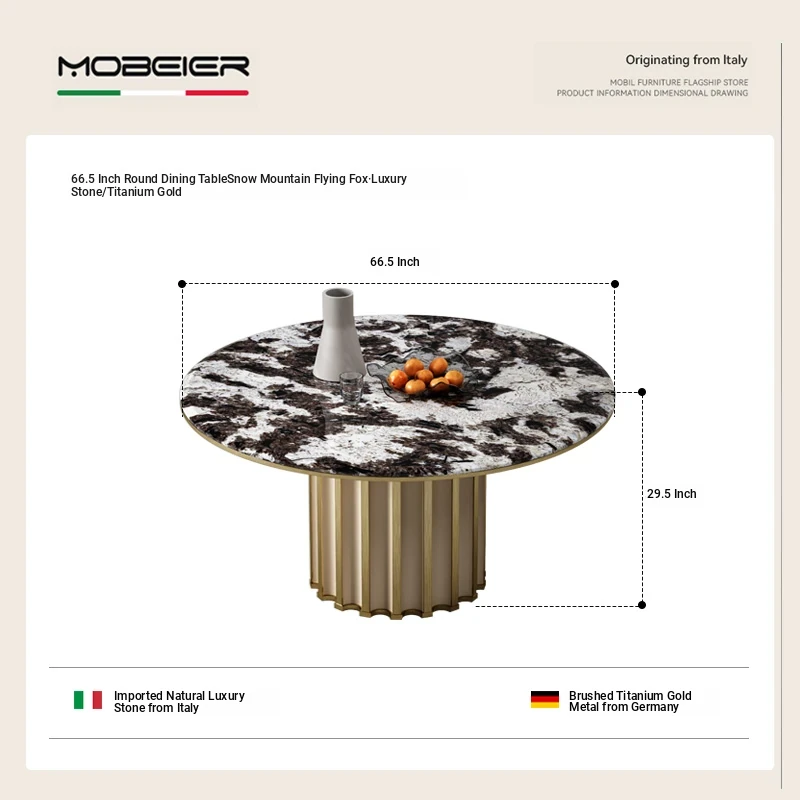 66.93 in Round Dining Table [Snow Mountain Flying Fox Luxury Stone/Titanium]]