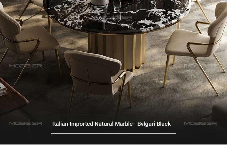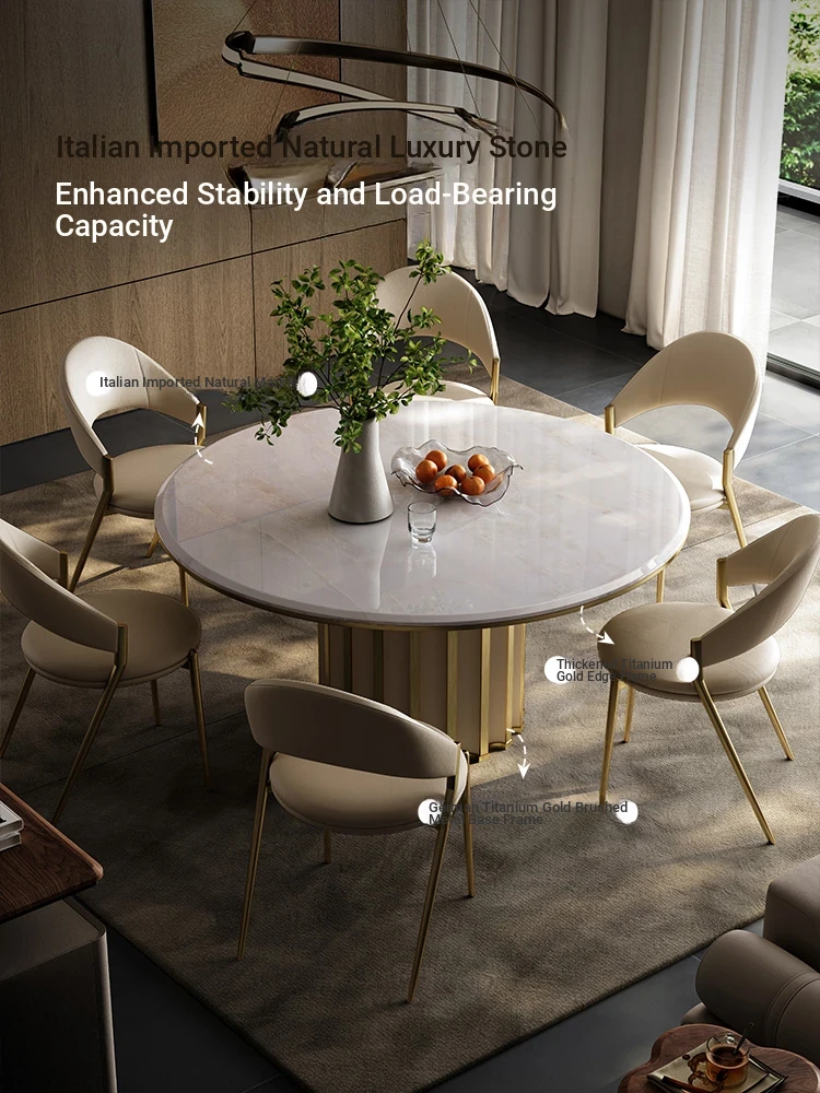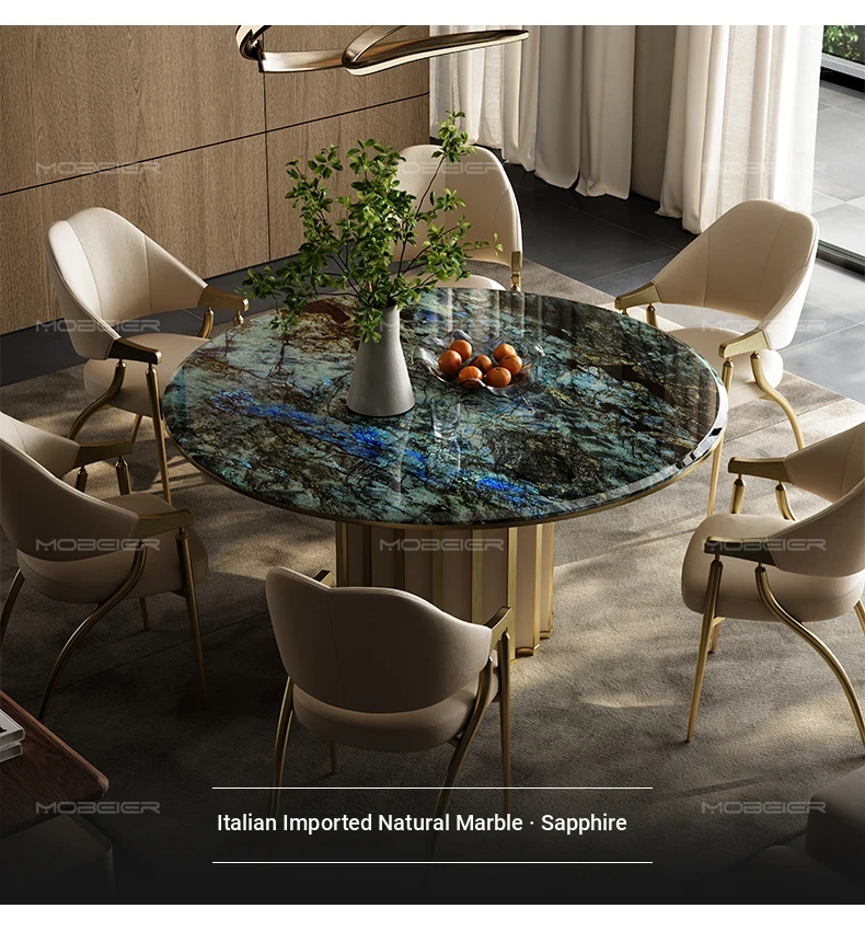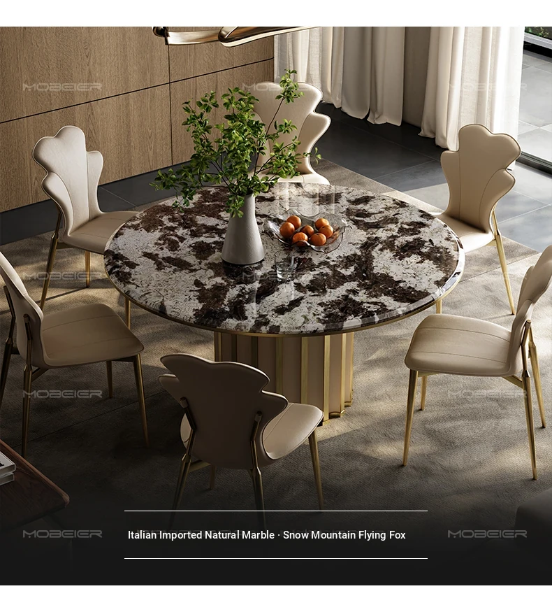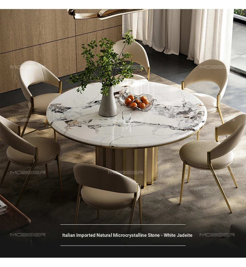 Mobeier Natural Marble Round Dining Table - Elegant Calacatta Ice Stone, Minimalist Italian Design, Perfect for Home Dining