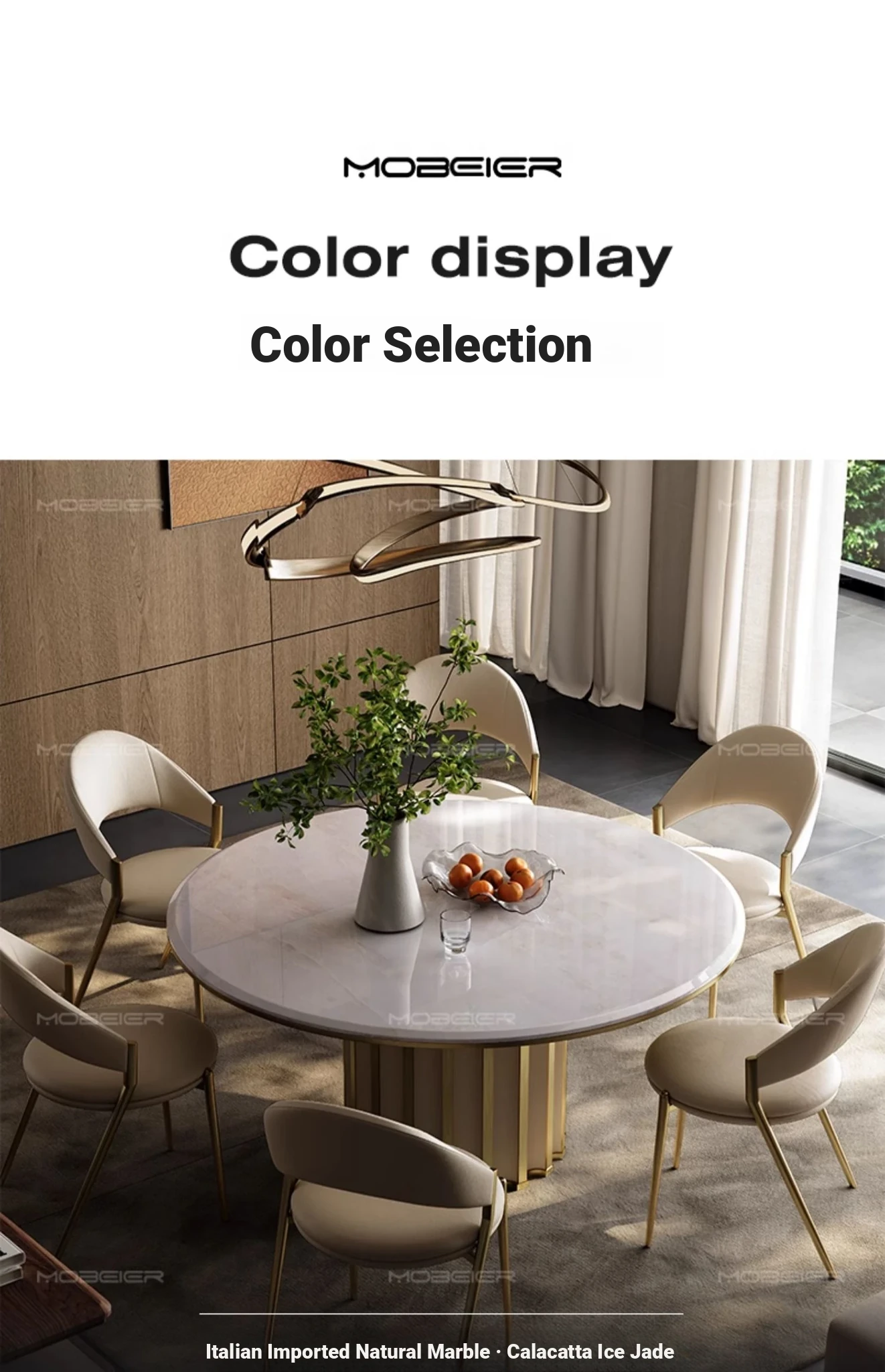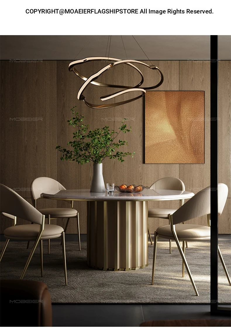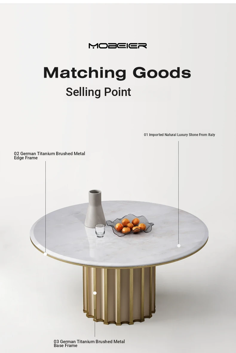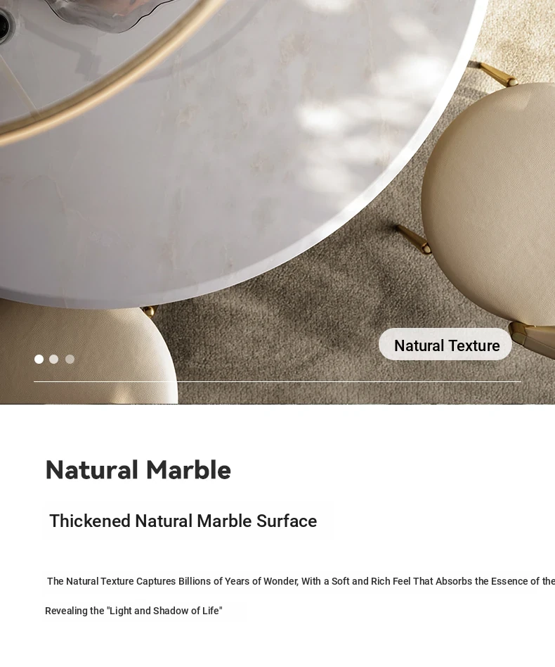 Mobeier Natural Marble Round Dining Table - Elegant Calacatta Ice Stone, Minimalist Italian Design, Perfect for Home Dining