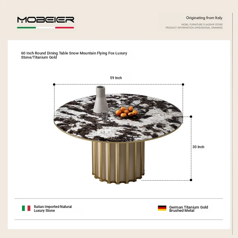 59.06 in Round Dining Table [Snow Mountain Flying Fox Luxury Stone/Titanium]]