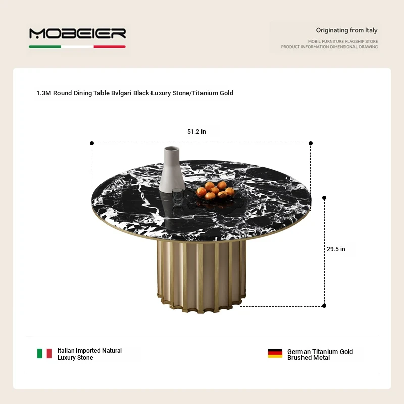 51.18 in Round Dining Table [Bulgari Black Luxury Stone/Titanium]]