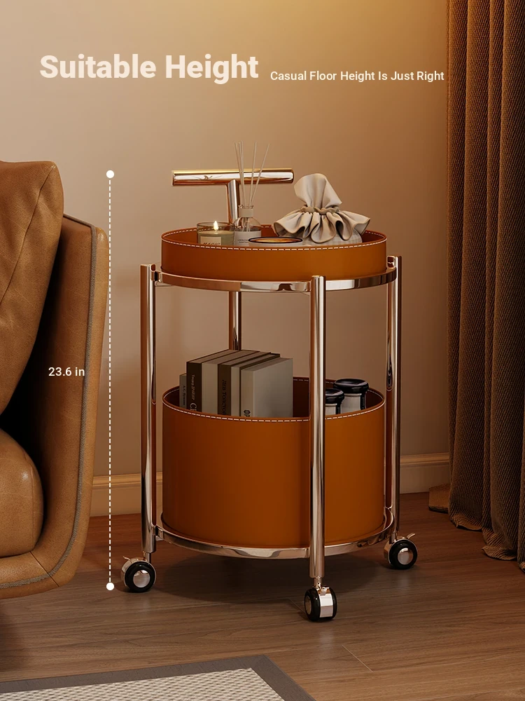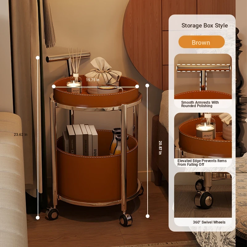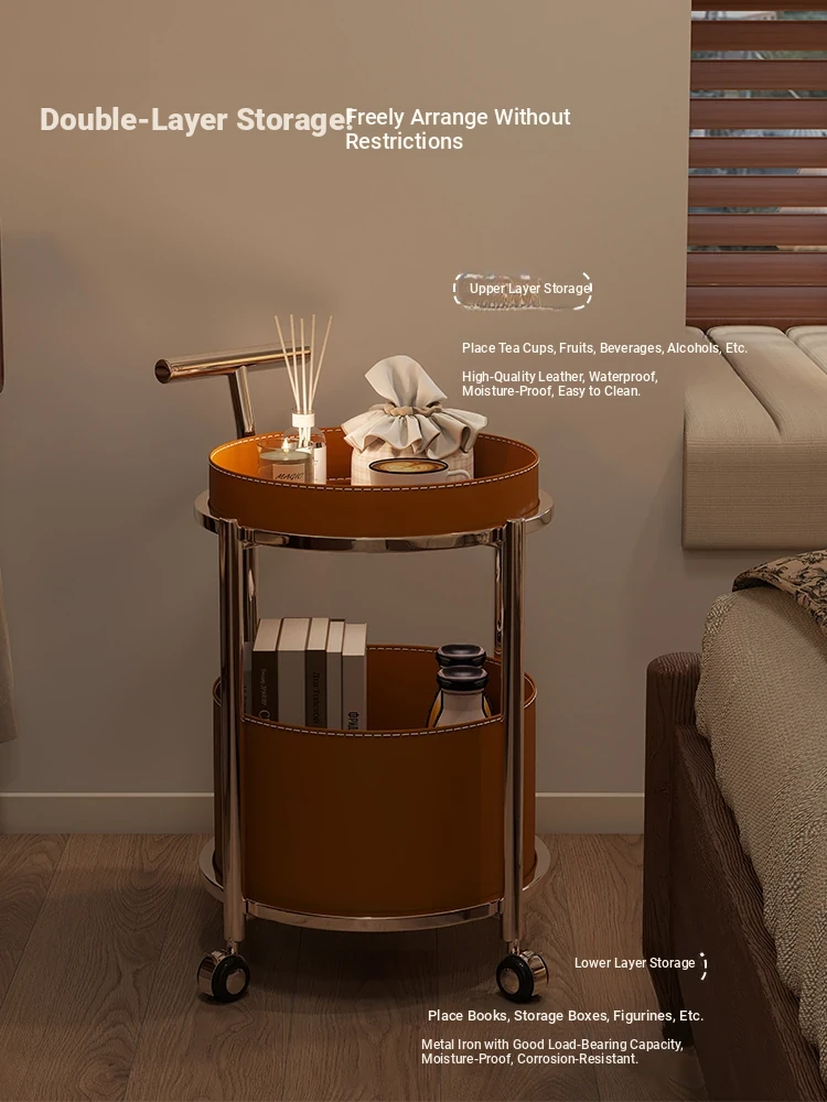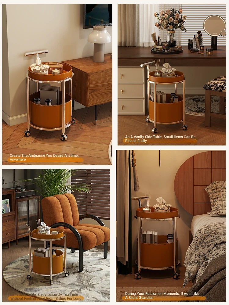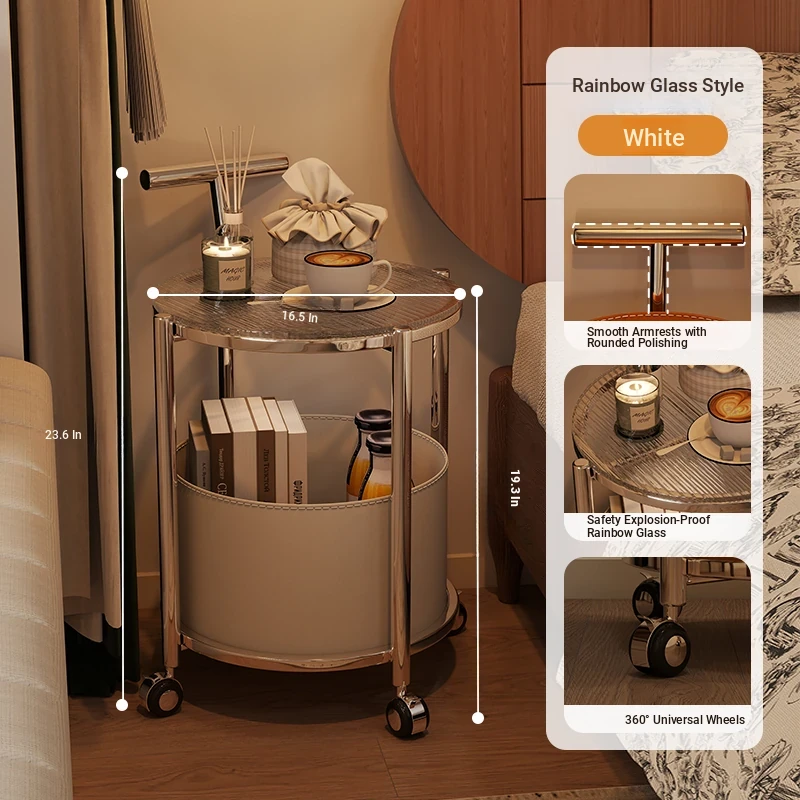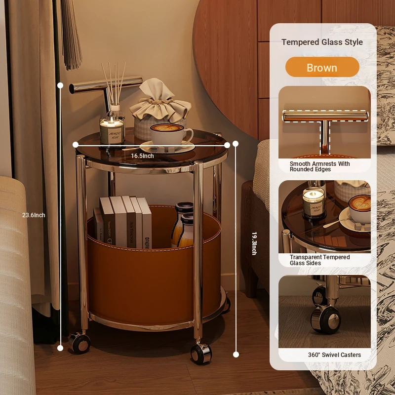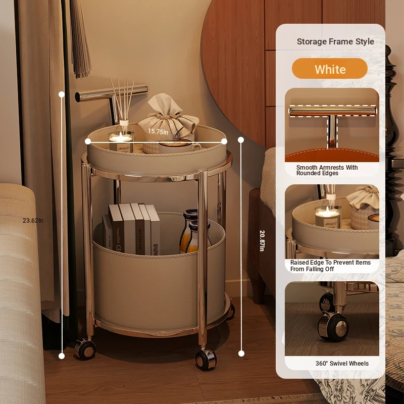 Mobile Side Table with Wheels - Versatile Round Coffee Table for Living Room, Bedside Storage Rack - Trendy and Functional Design for Home Use