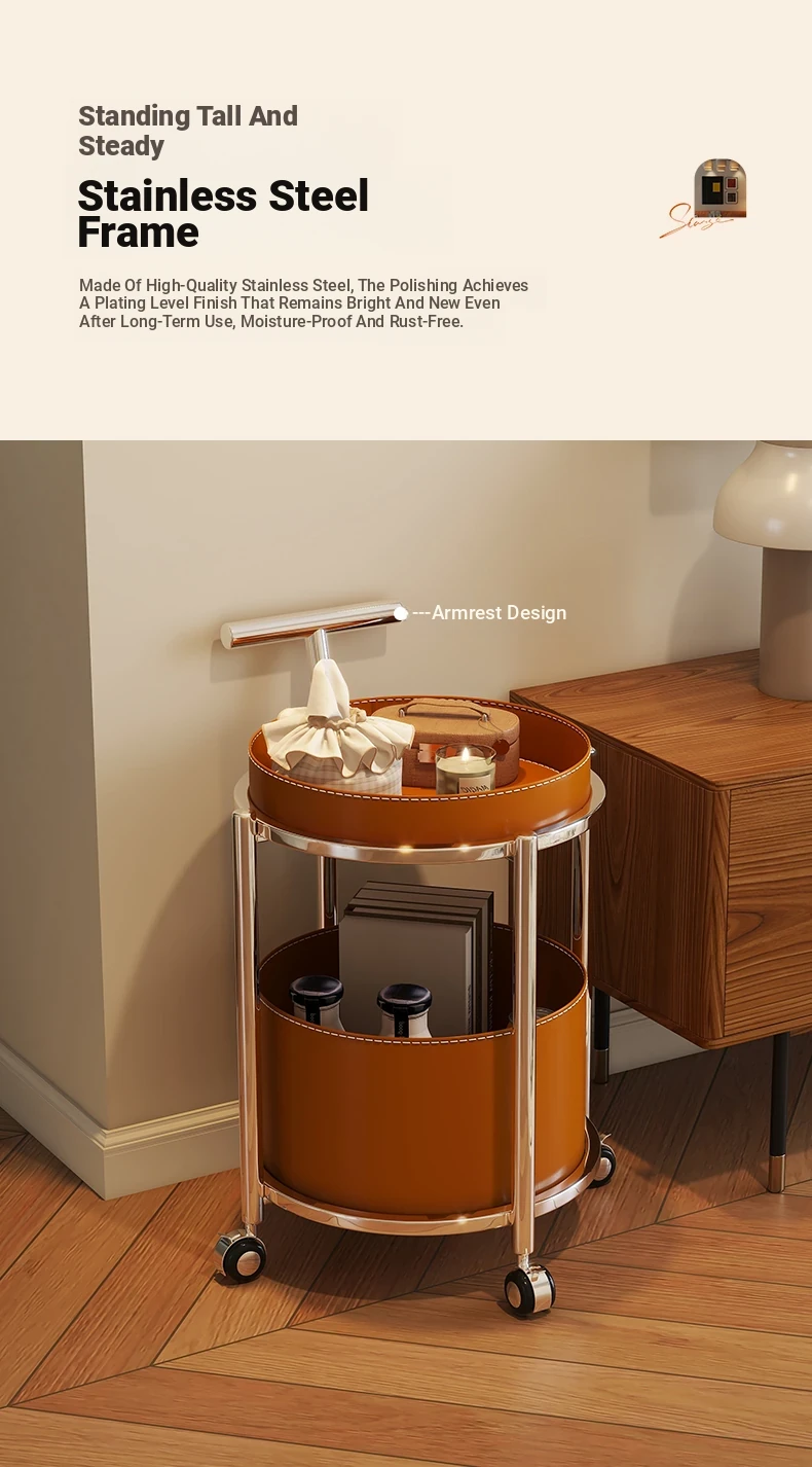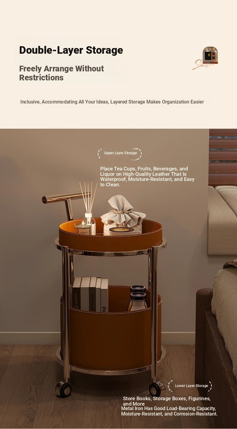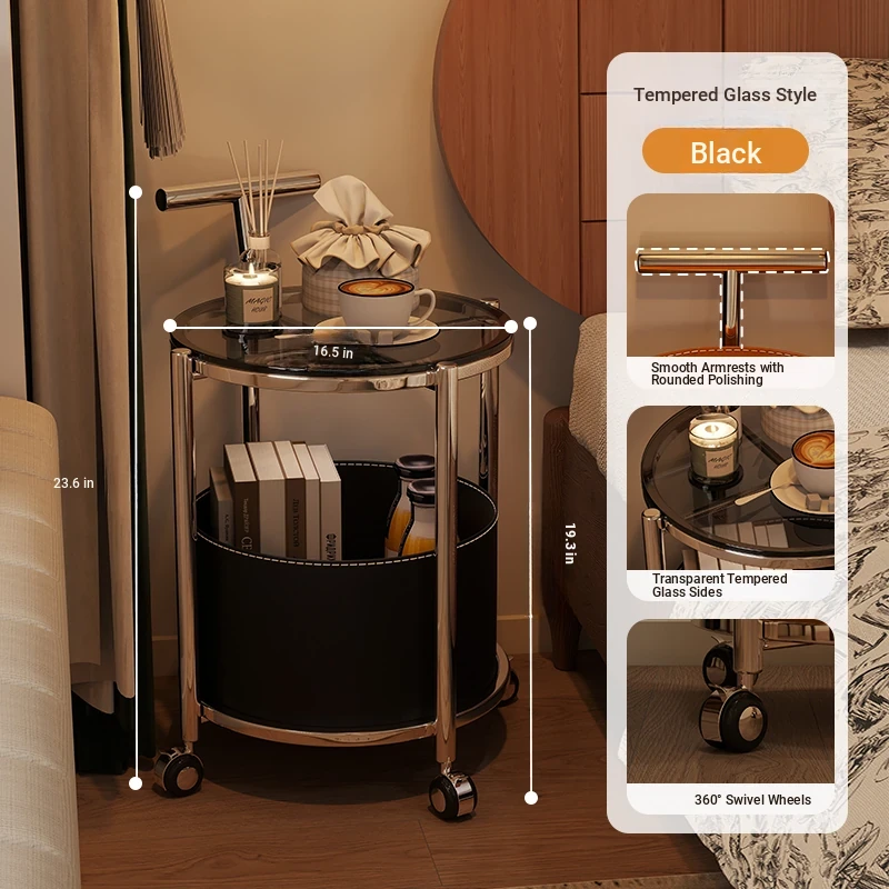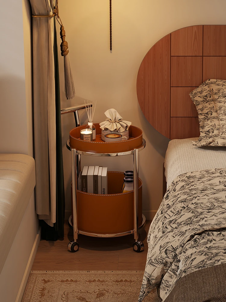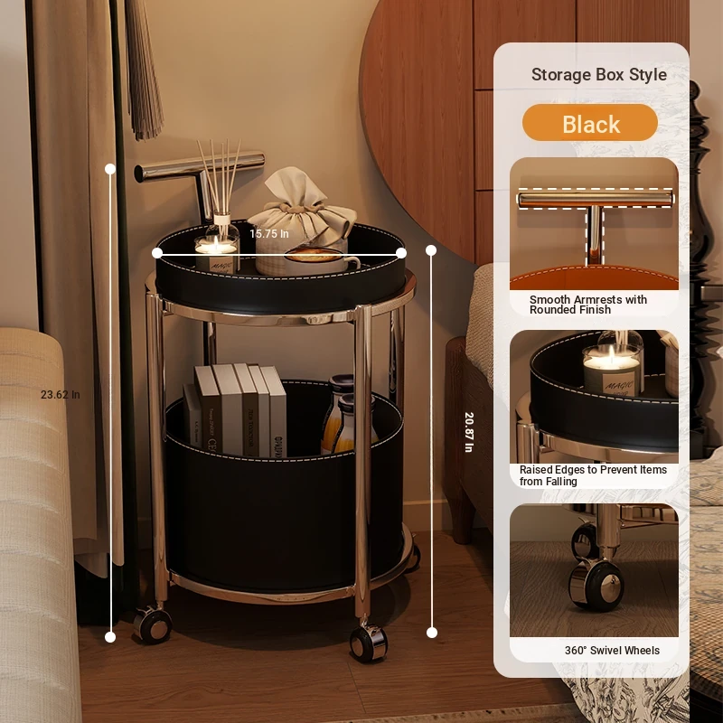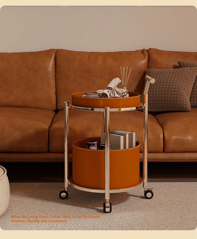 Mobile Side Table with Wheels - Versatile Round Coffee Table for Living Room, Bedside Storage Rack - Trendy and Functional Design for Home Use