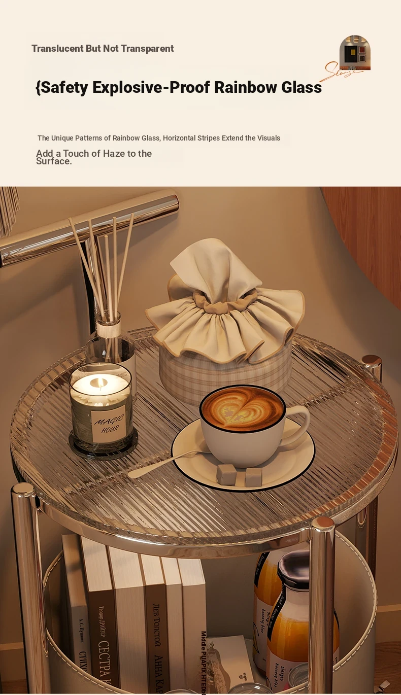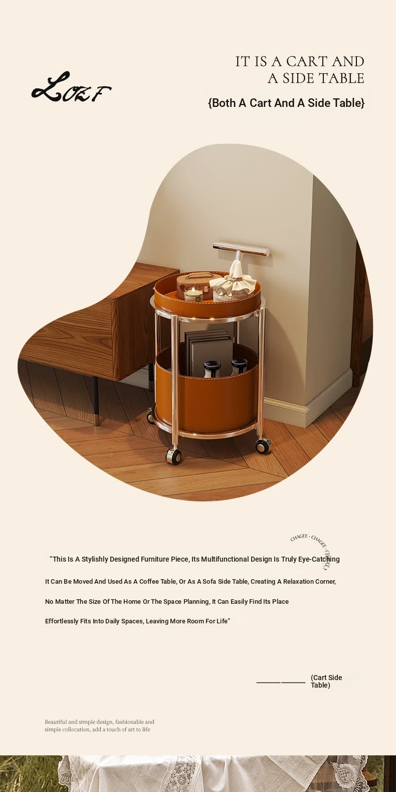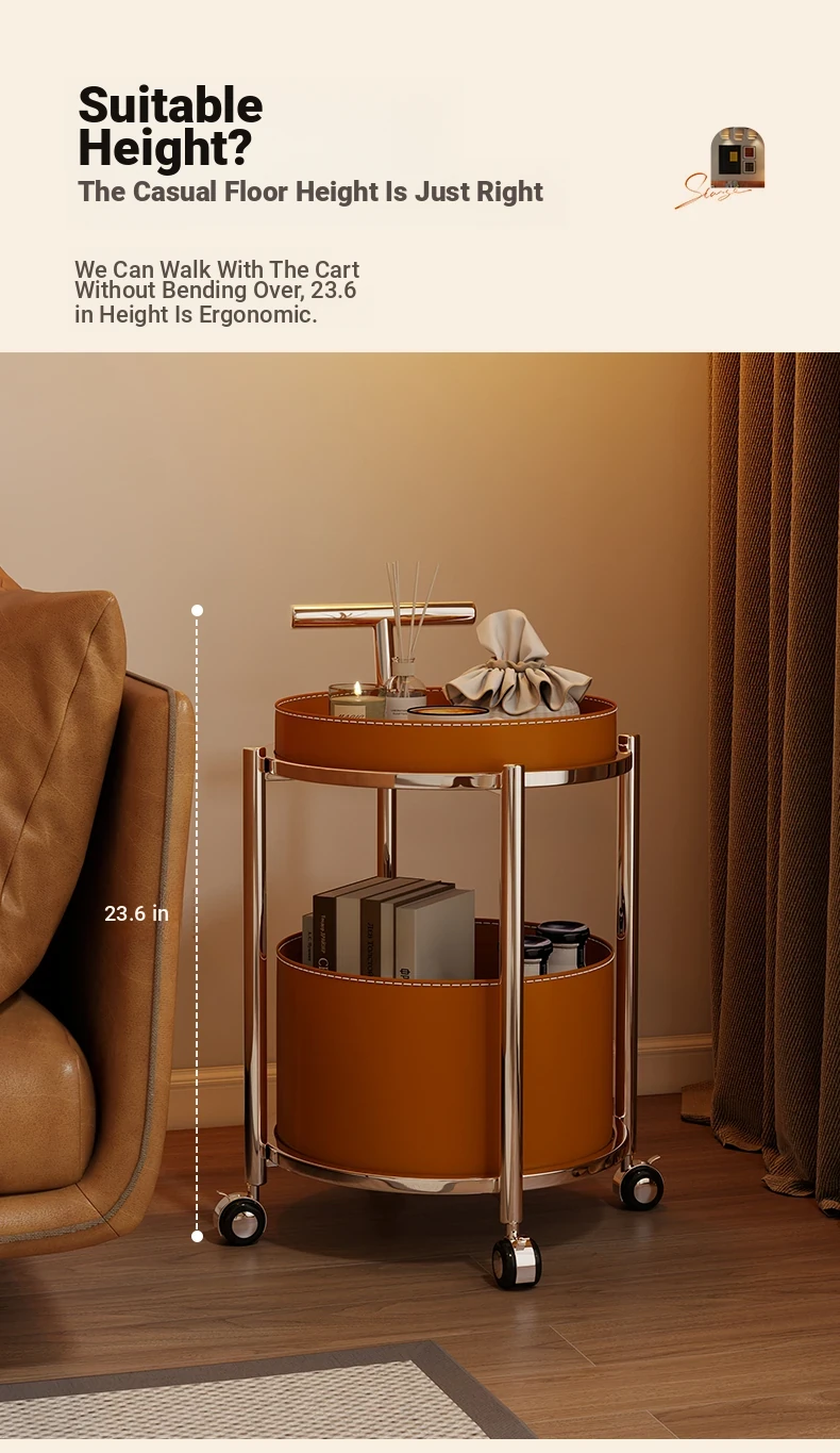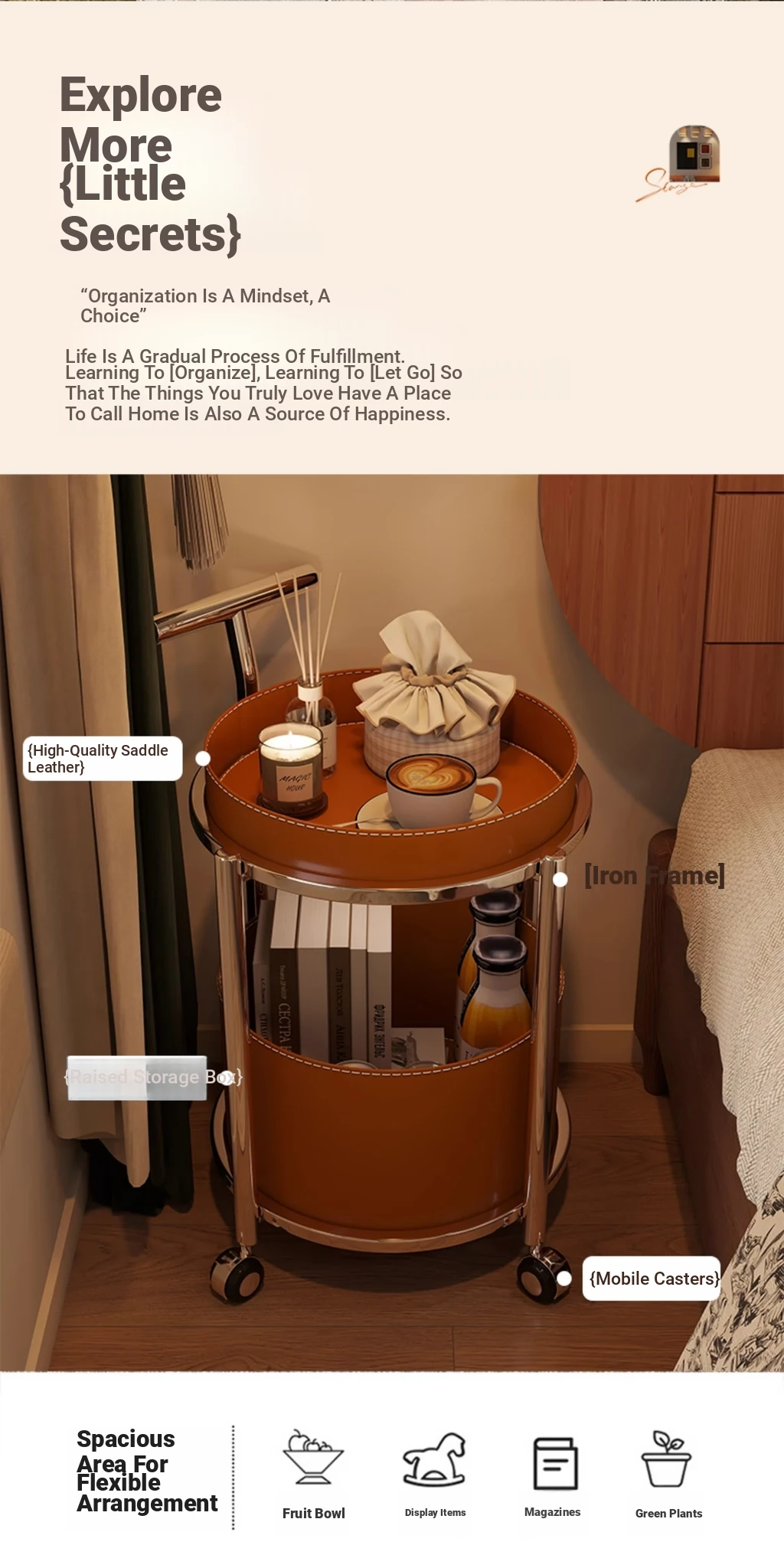 Mobile Side Table with Wheels - Versatile Round Coffee Table for Living Room, Bedside Storage Rack - Trendy and Functional Design for Home Use