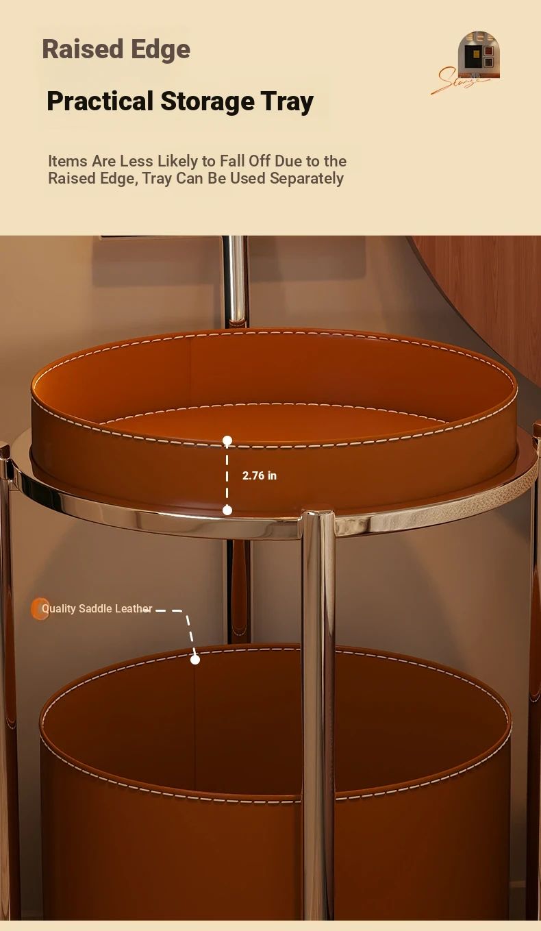 [Stainless Steel Frame] Brown Double-Layer Leather Basket (Like New for Ten Years)