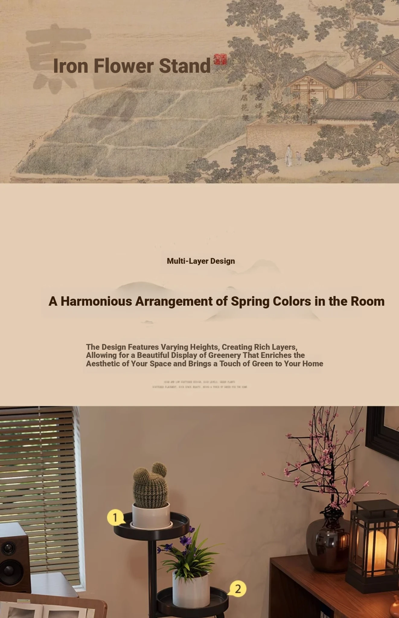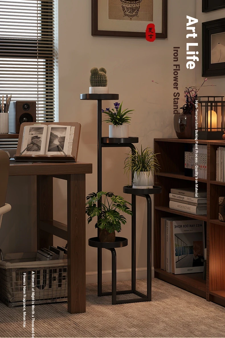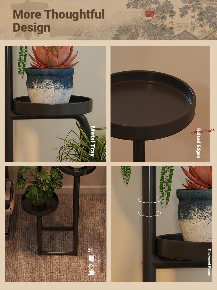 Modern Chinese Style Iron Flower Stand - Multi-Layer Floor Storage Rack for Living Room, Balcony, Bedroom, and Next to TV - Perfect for Succulent Plants and Home Decor