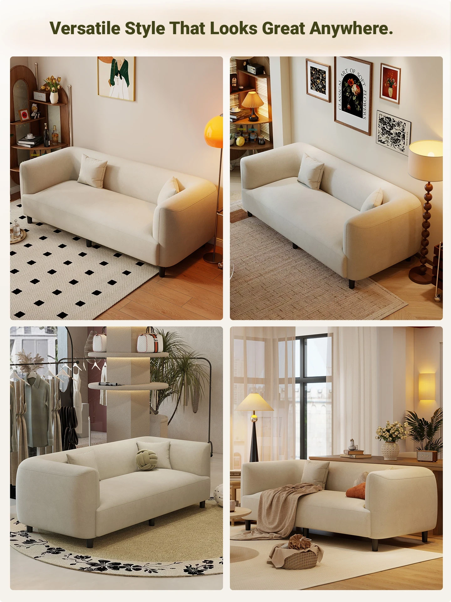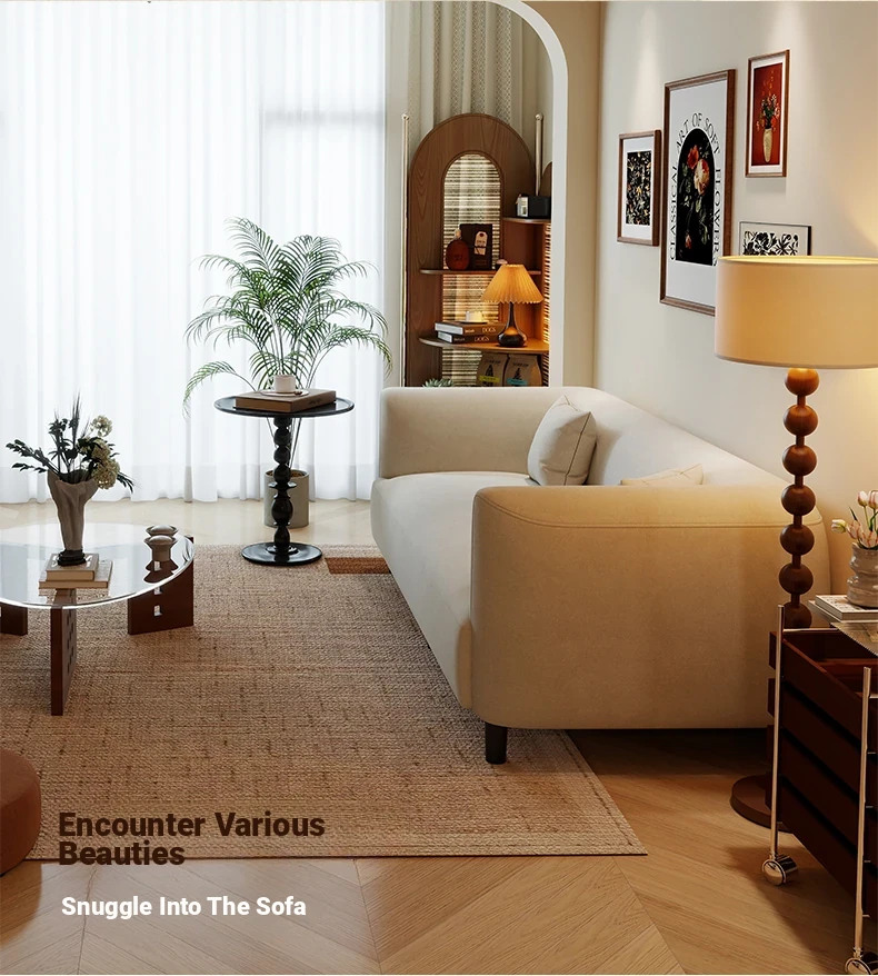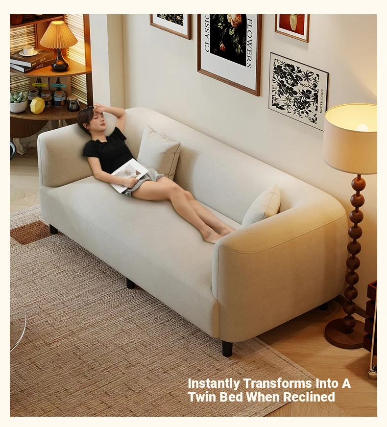 Modern French Cream Fabric Sofa for Small Apartments - Stylish Minimalist Design for Living Rooms and Clothing Stores - New Arrival 2025