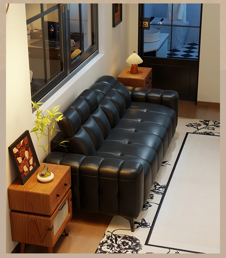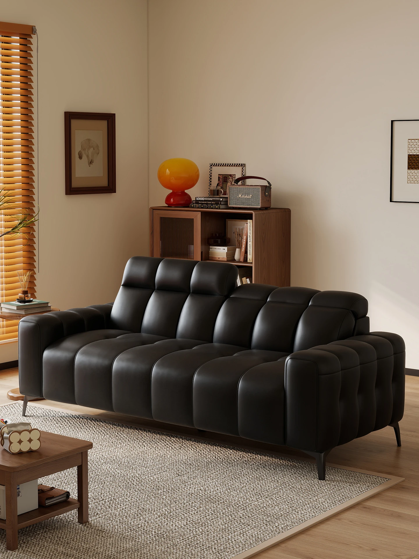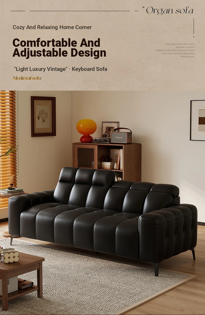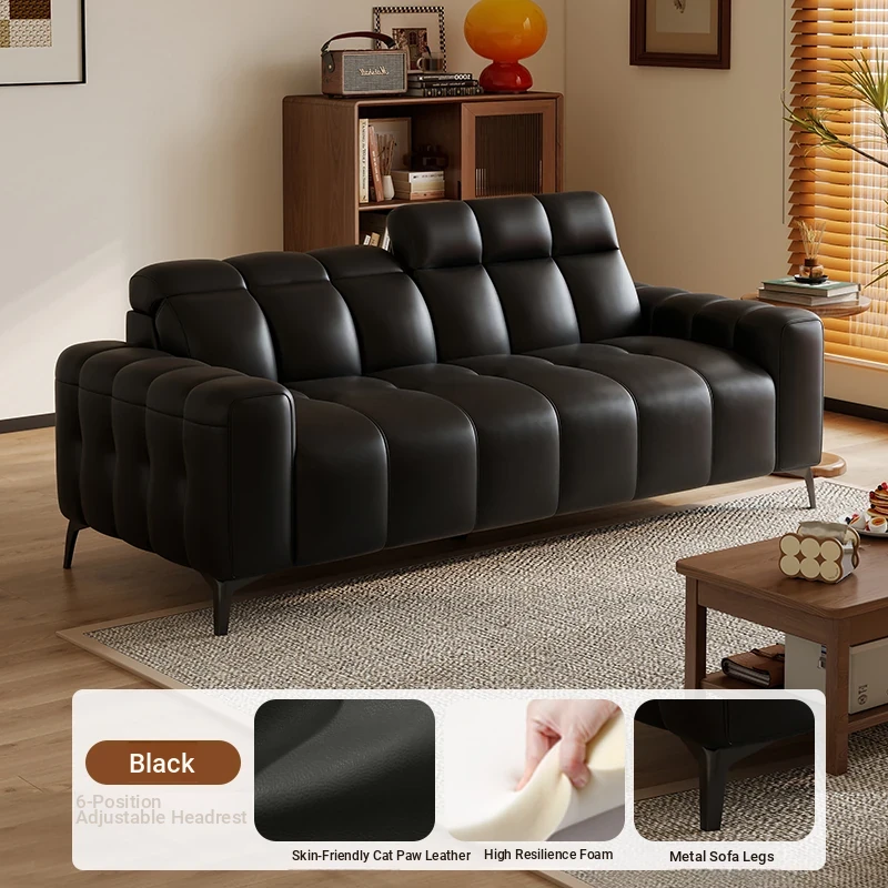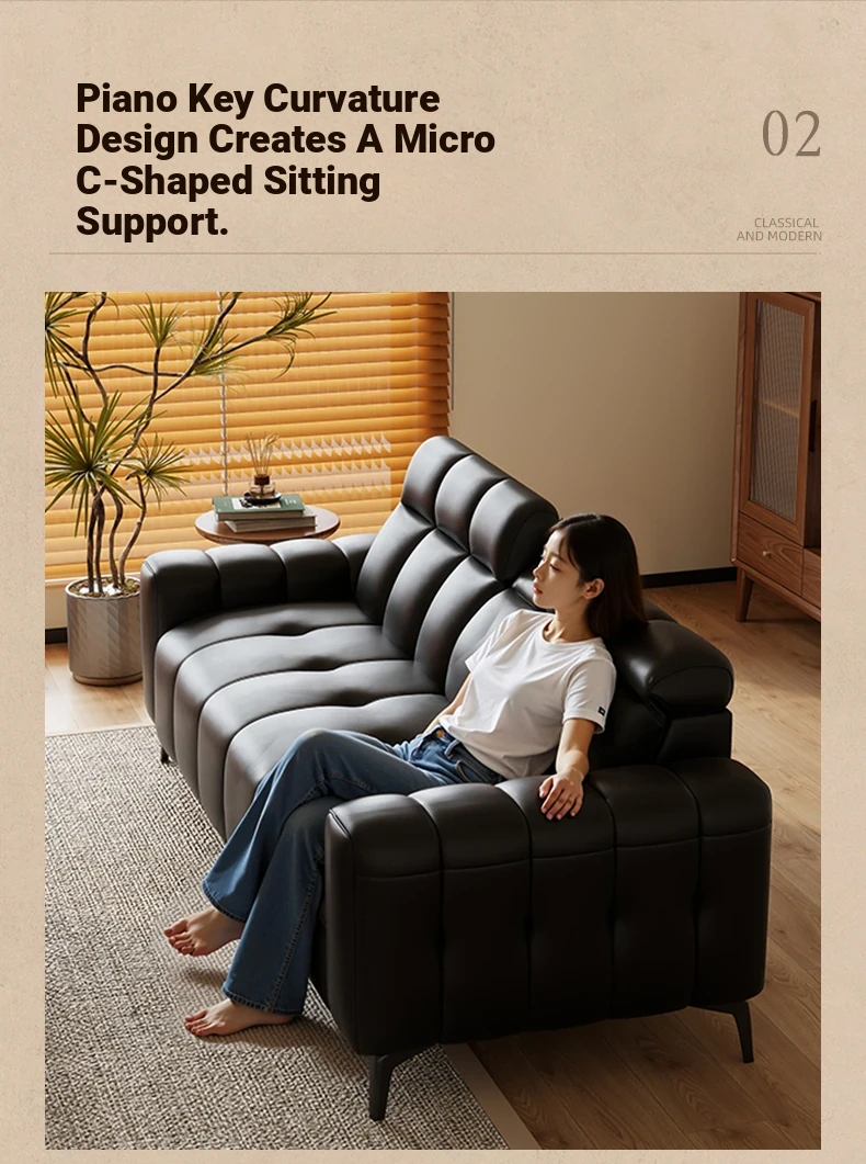 Modern Luxurious Black Piano Key Sofa - Cat Paw Leather, Perfect for Small Apartments & Living Rooms, 3-Seater Design, 2025 Trendy Style