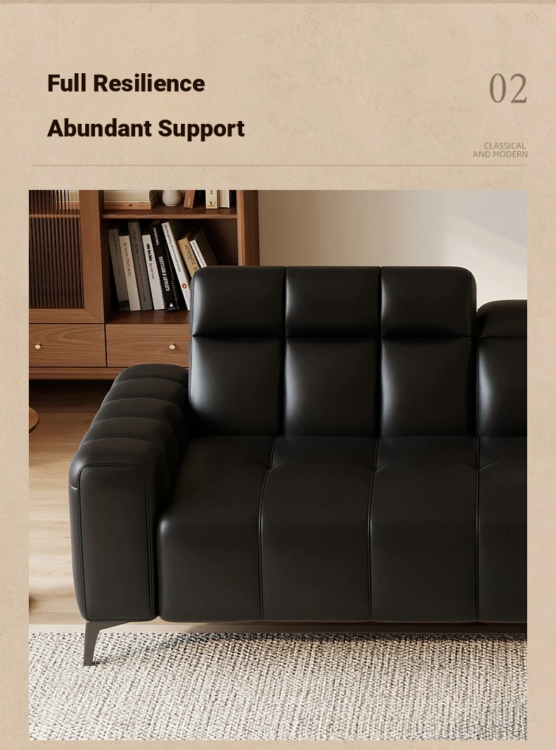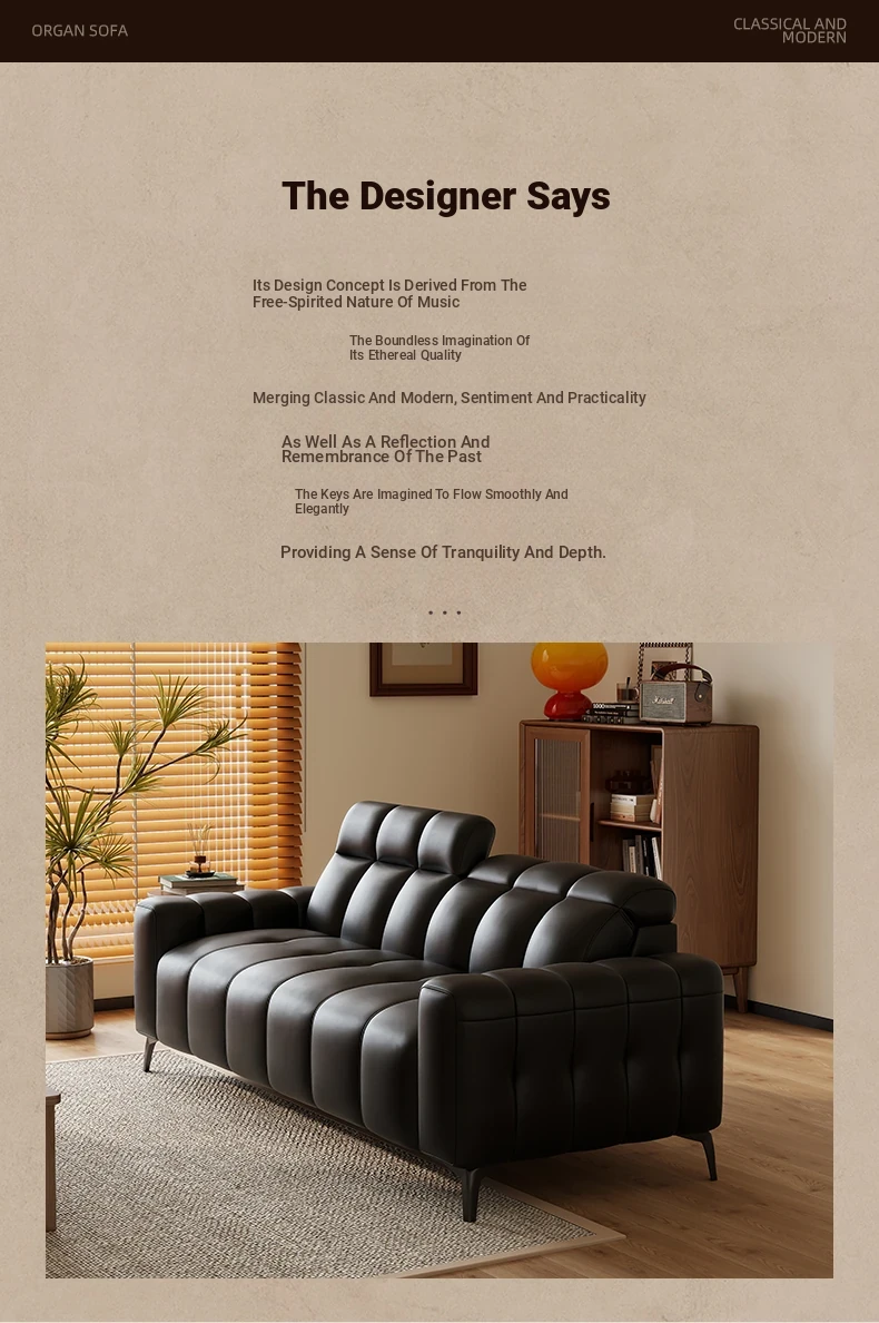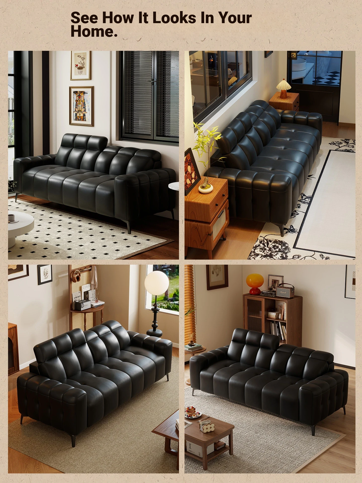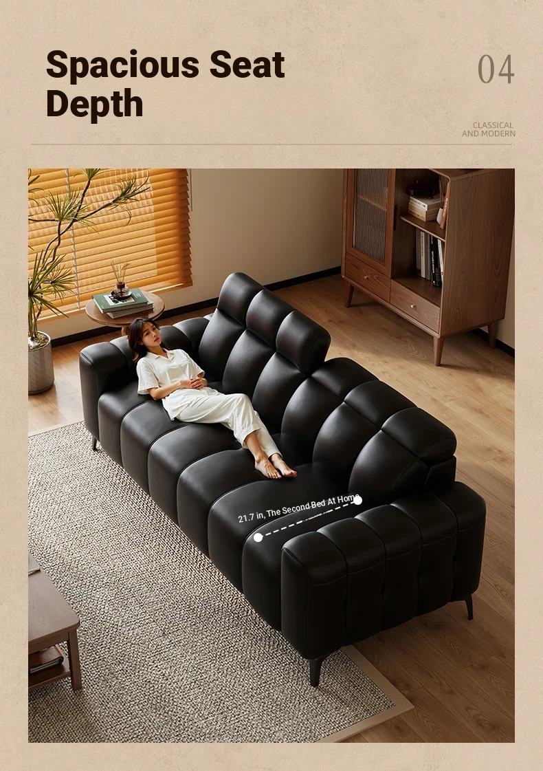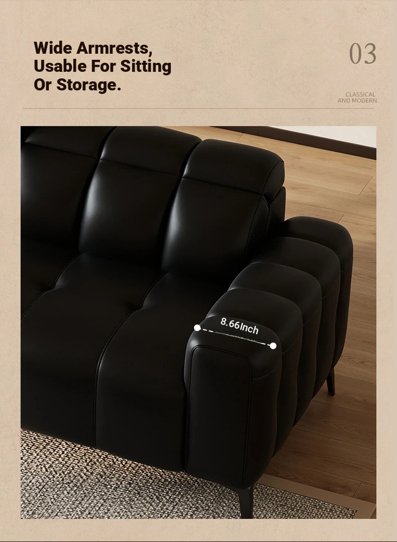 Modern Luxurious Black Piano Key Sofa - Cat Paw Leather, Perfect for Small Apartments & Living Rooms, 3-Seater Design, 2025 Trendy Style