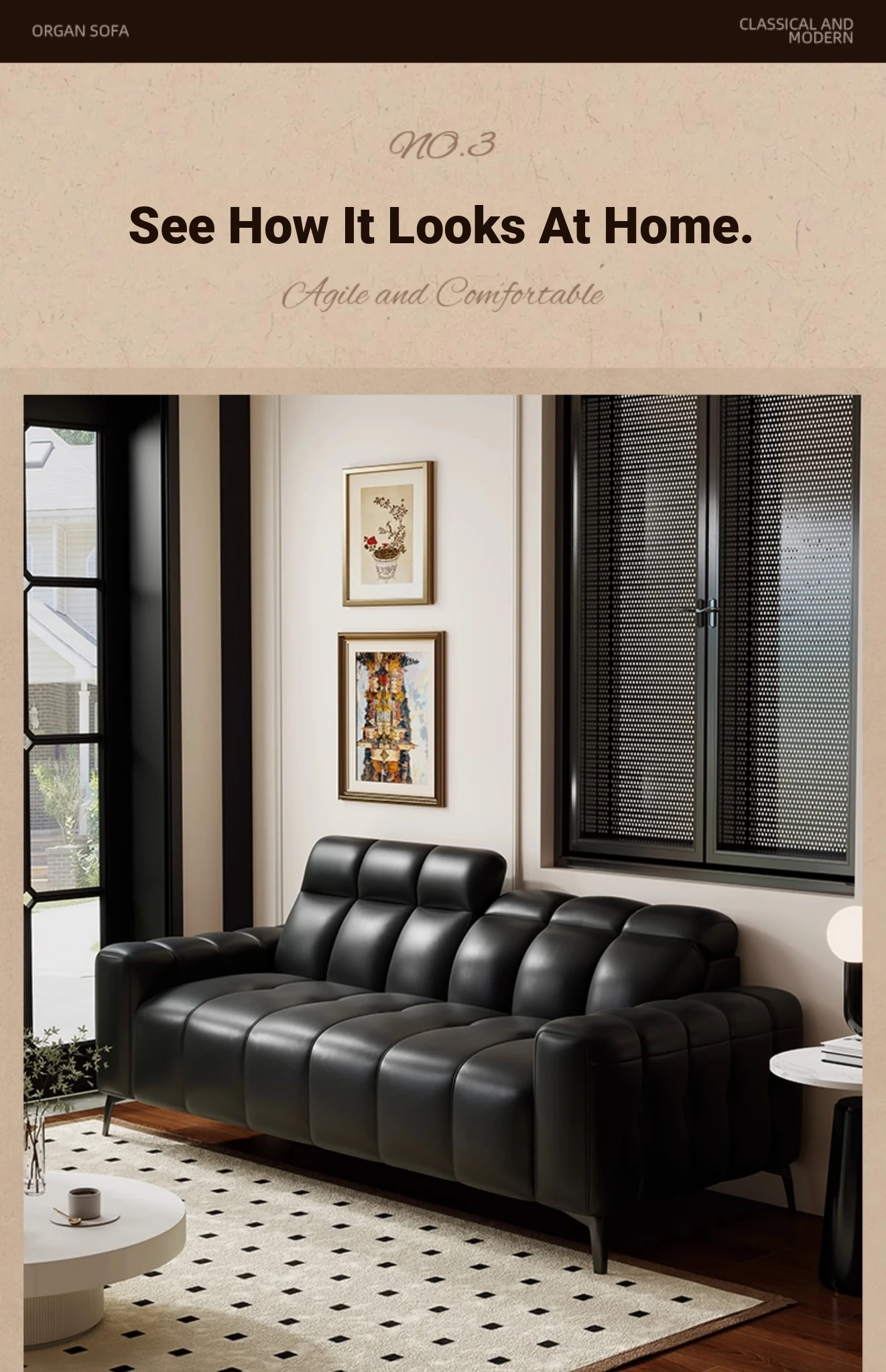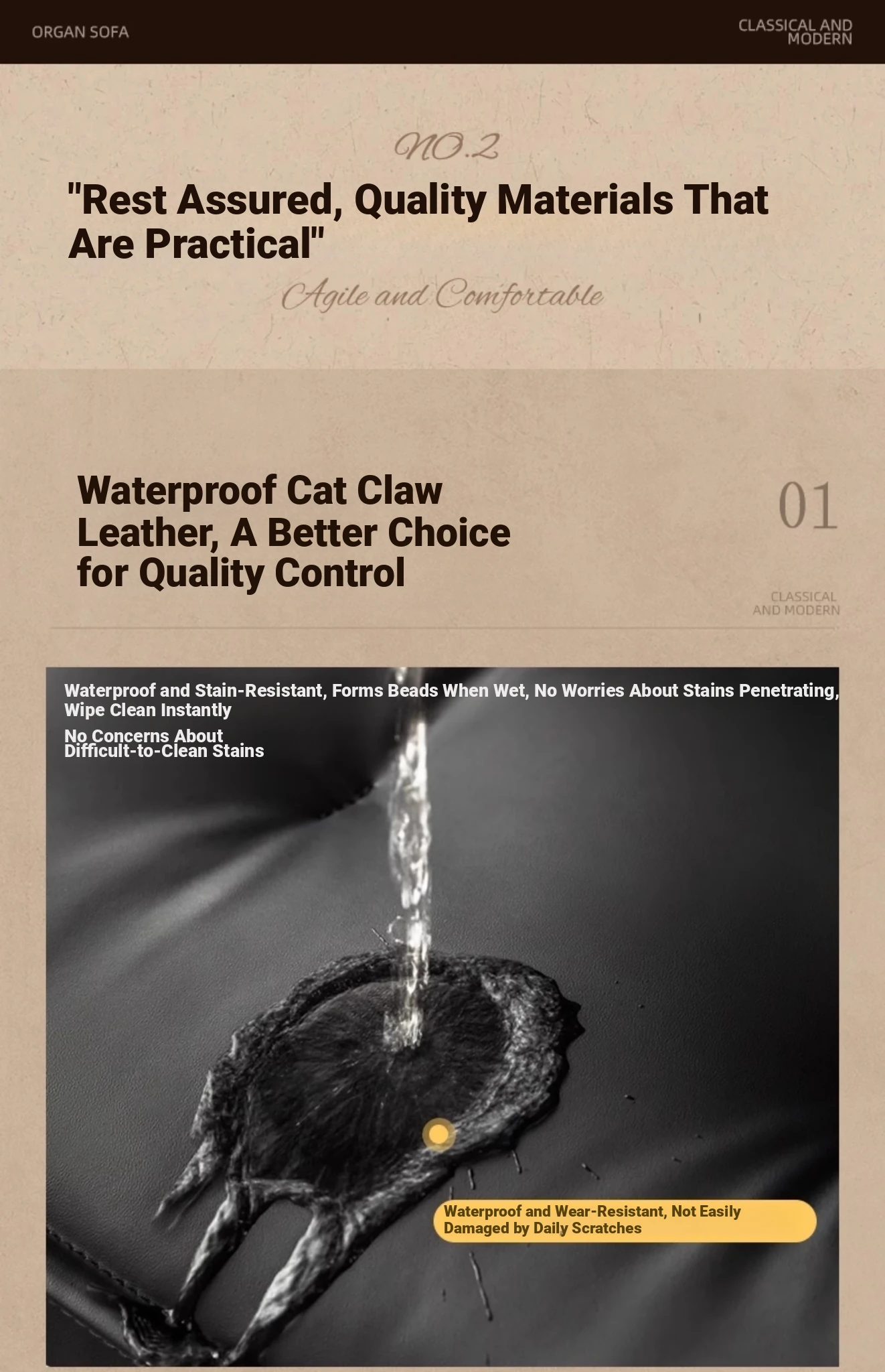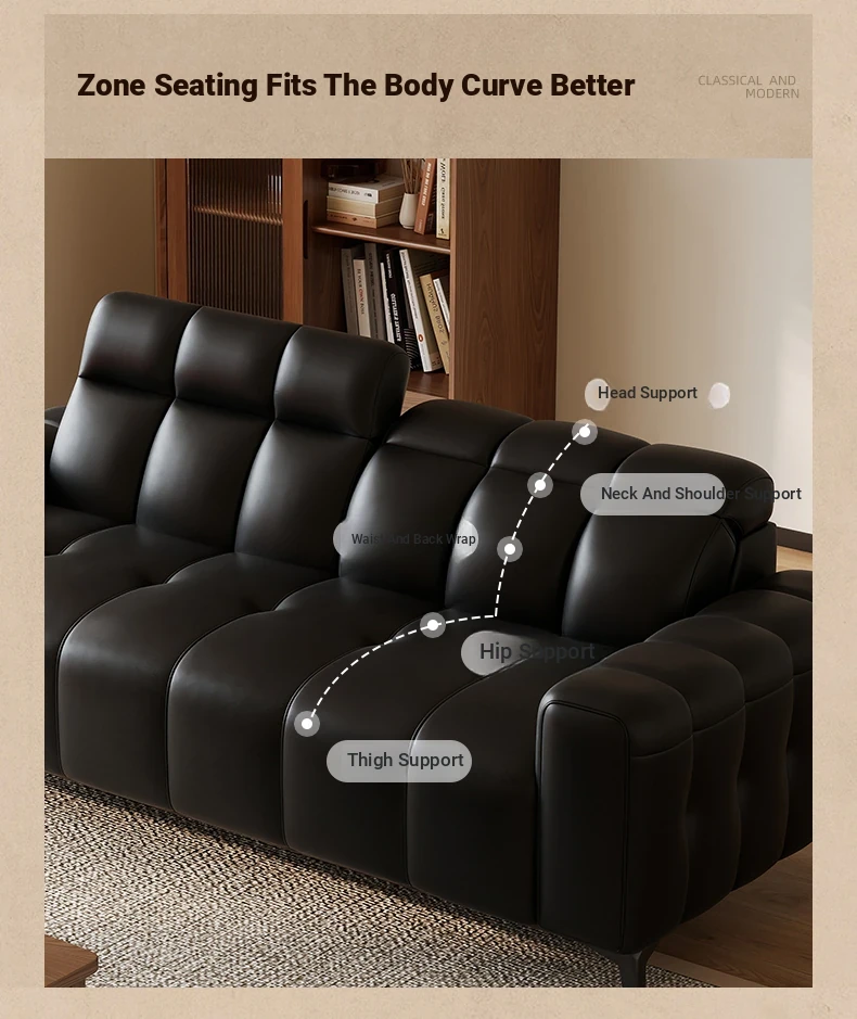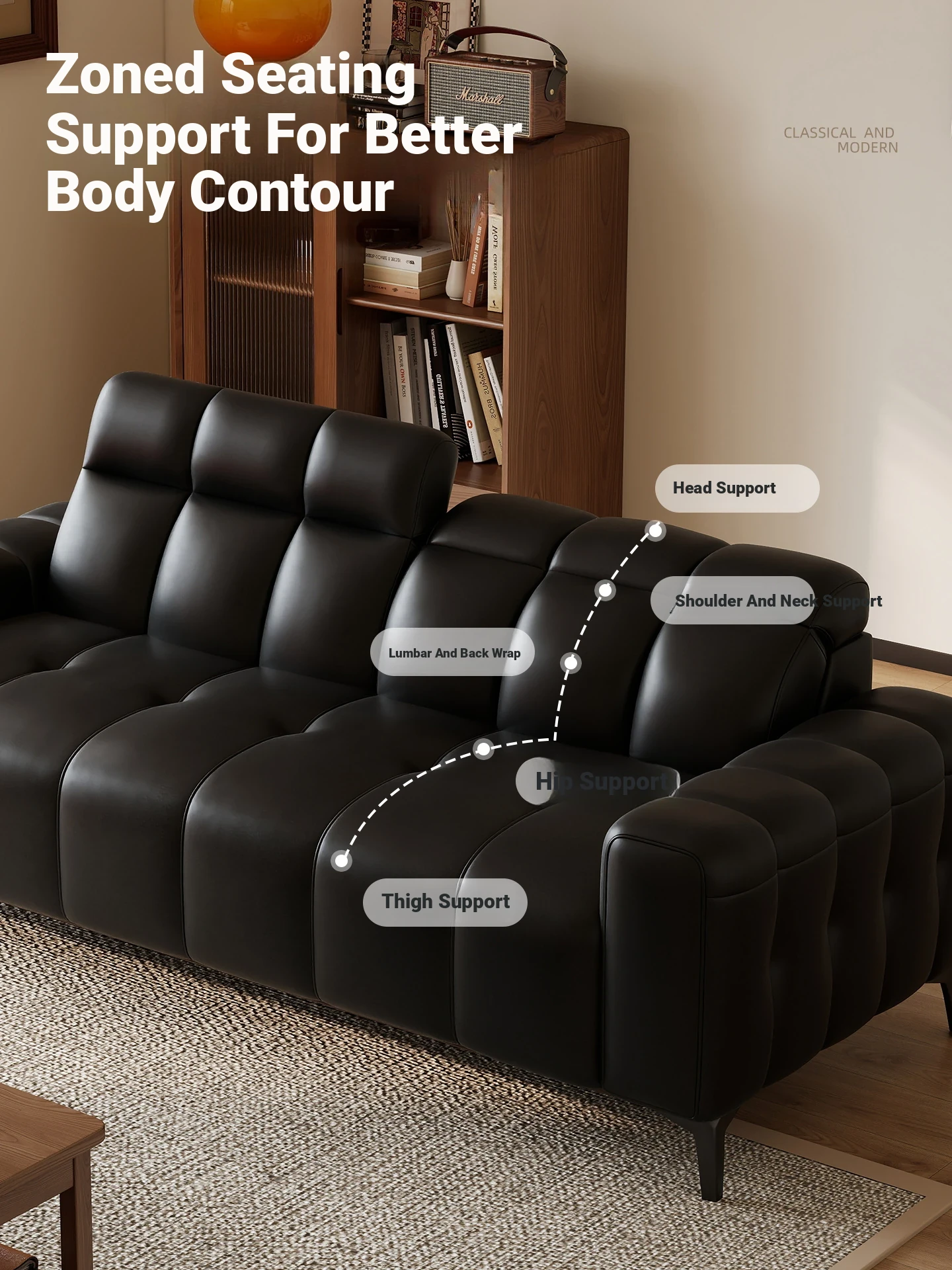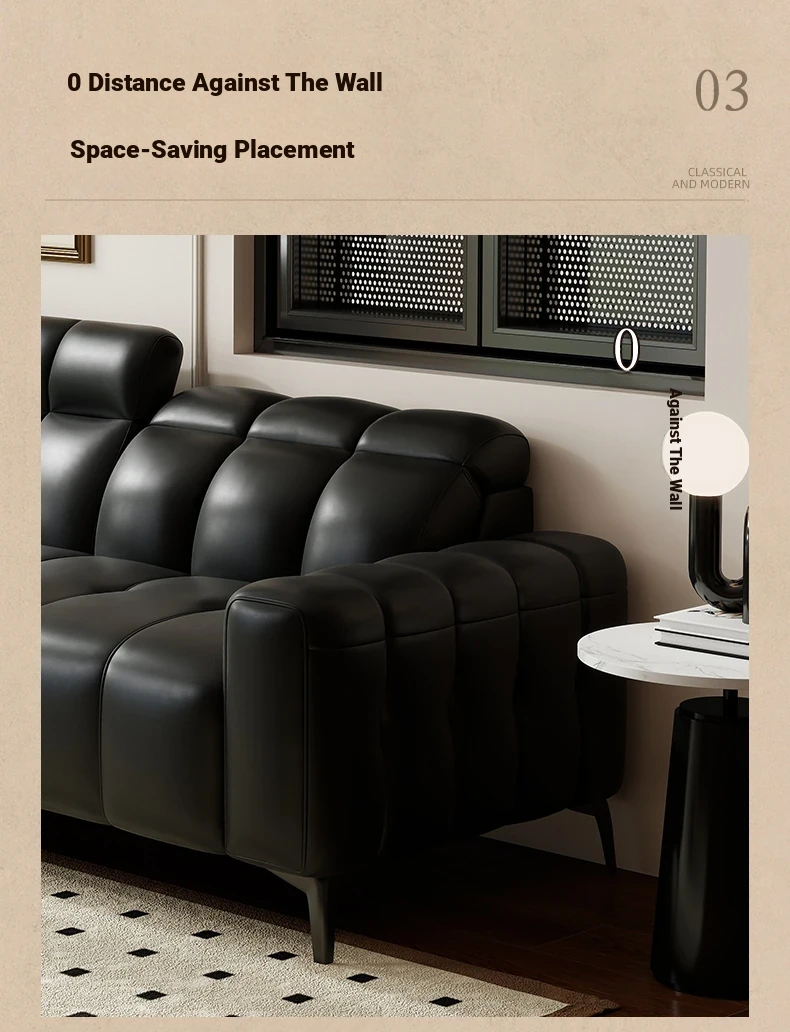 Modern Luxurious Black Piano Key Sofa - Cat Paw Leather, Perfect for Small Apartments & Living Rooms, 3-Seater Design, 2025 Trendy Style