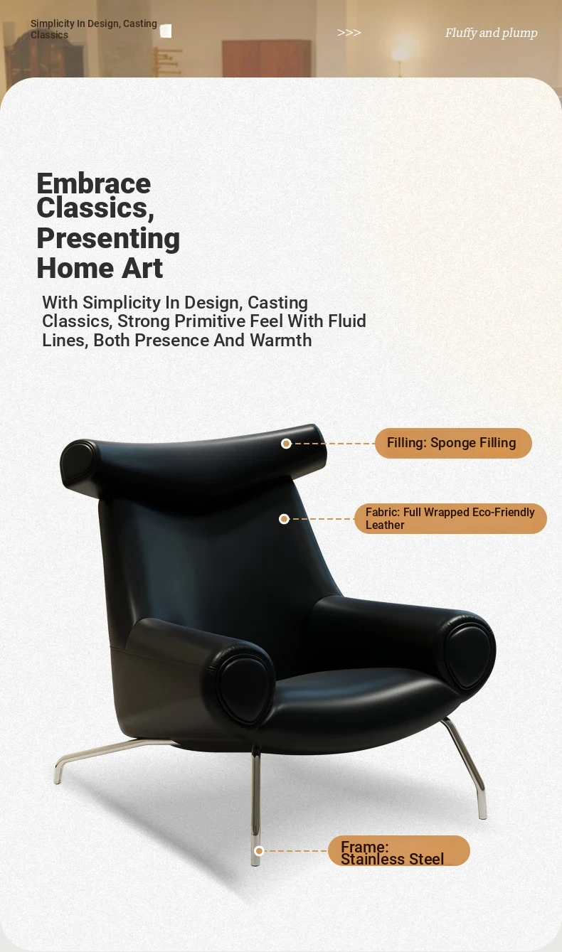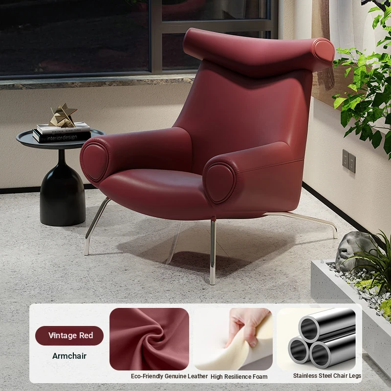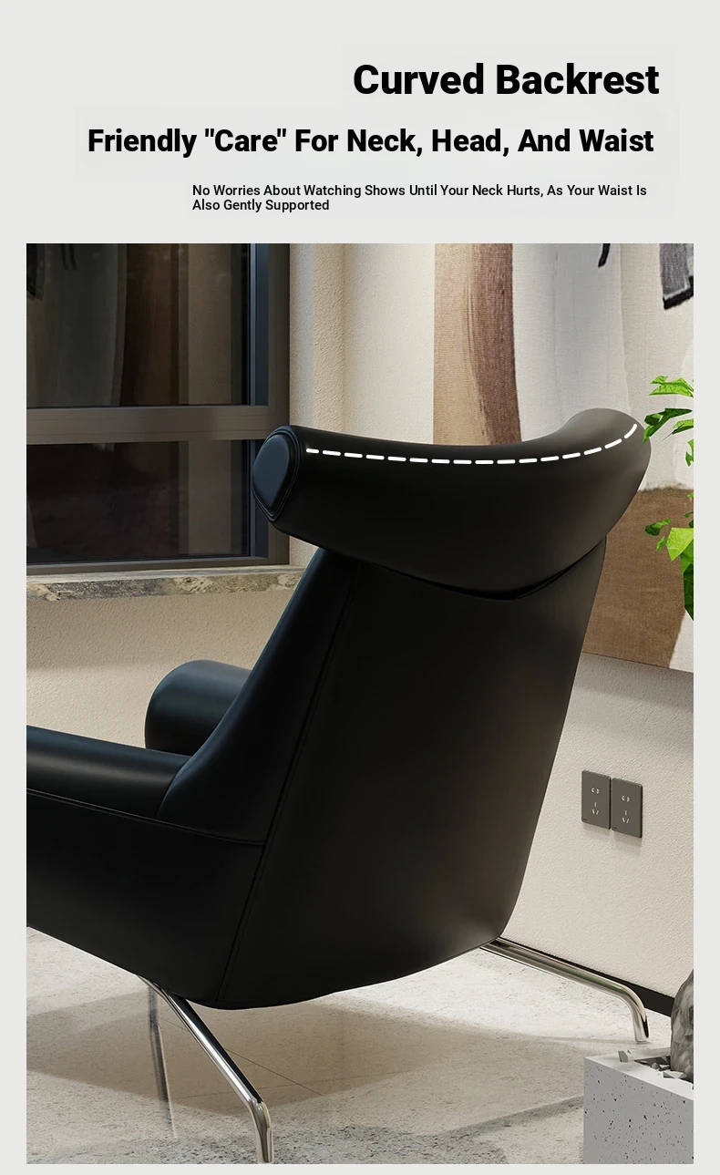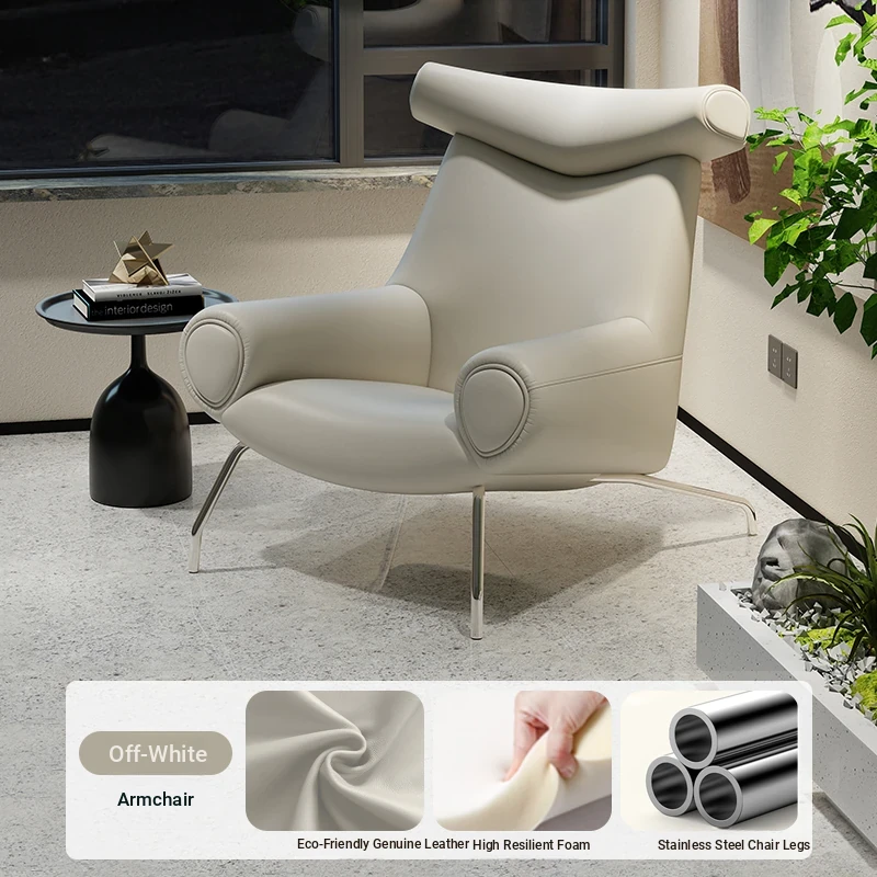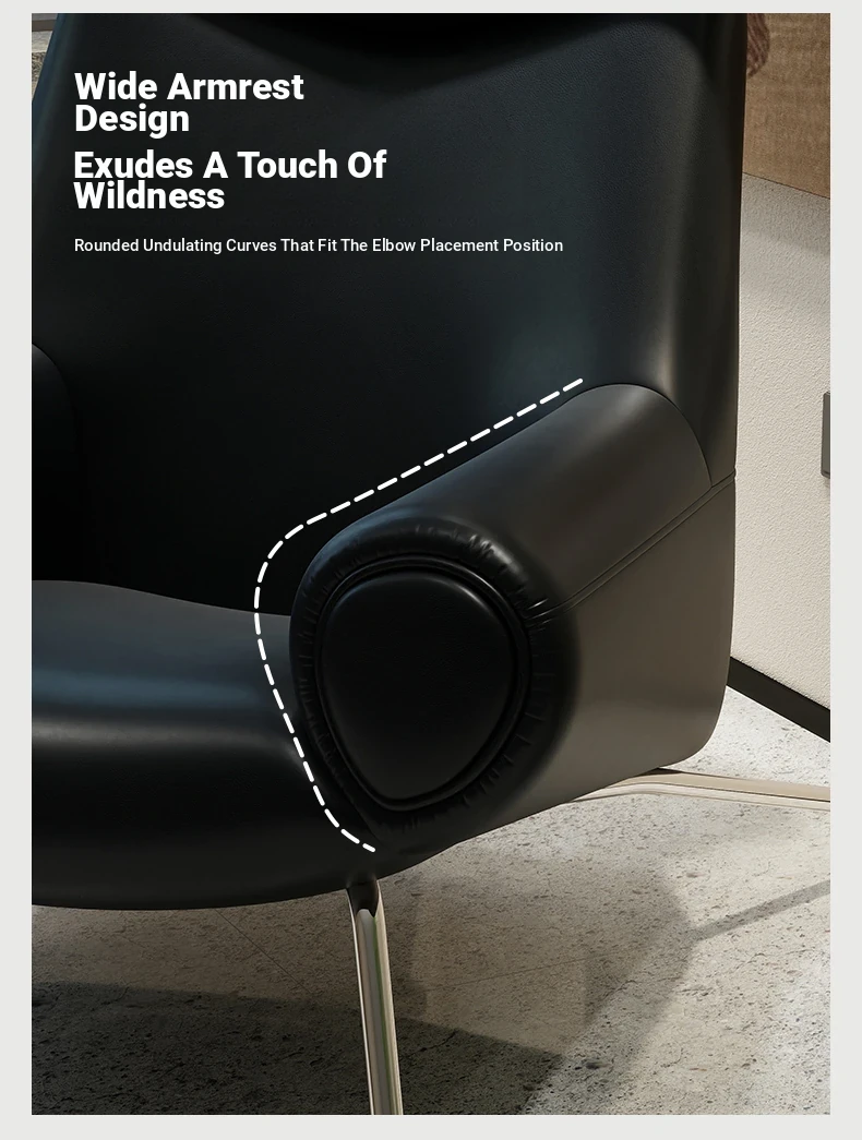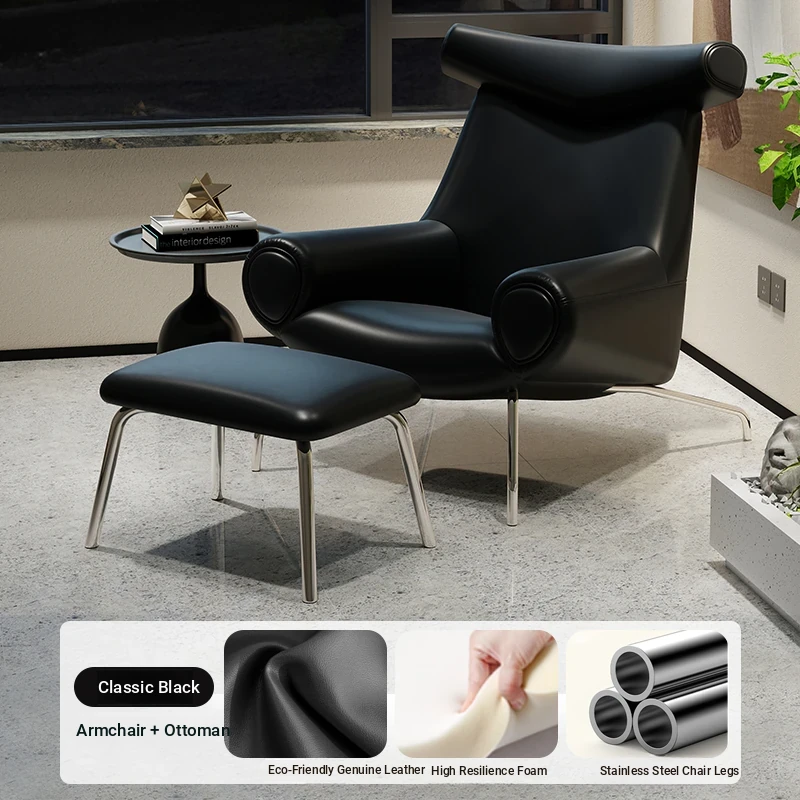 Modern Minimalist Black Genuine Leather Armchair - Italian Style Simple Hotel Living Room Lounge Chair, Bull Chair for Chic Comfort