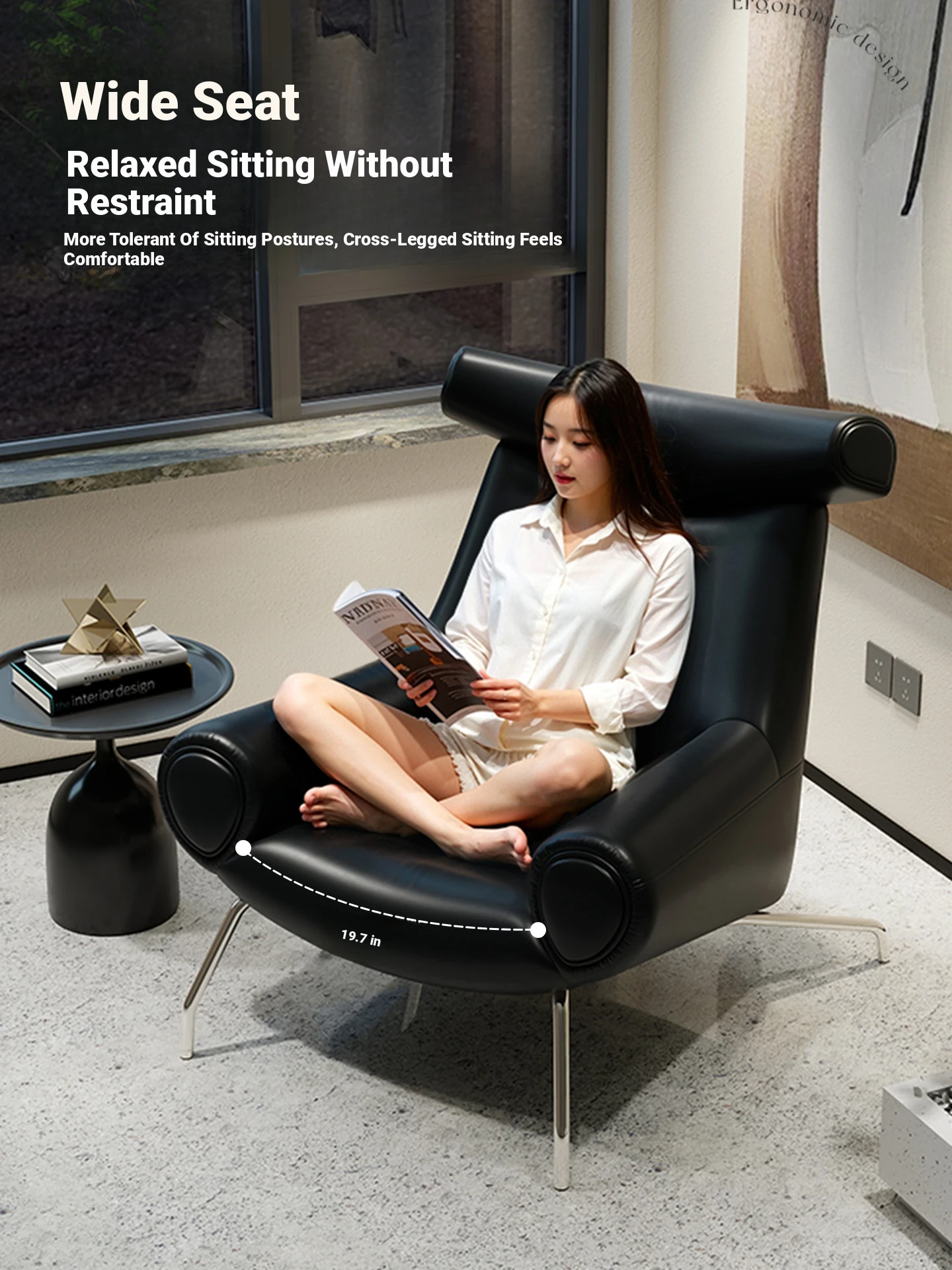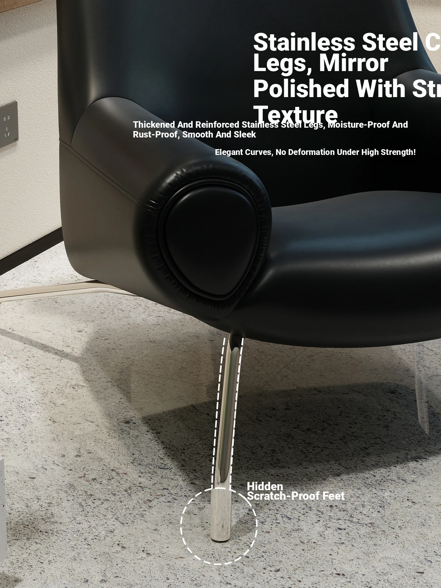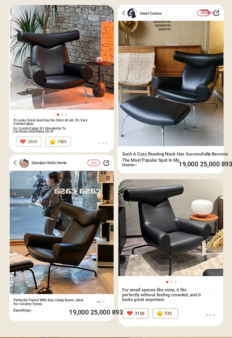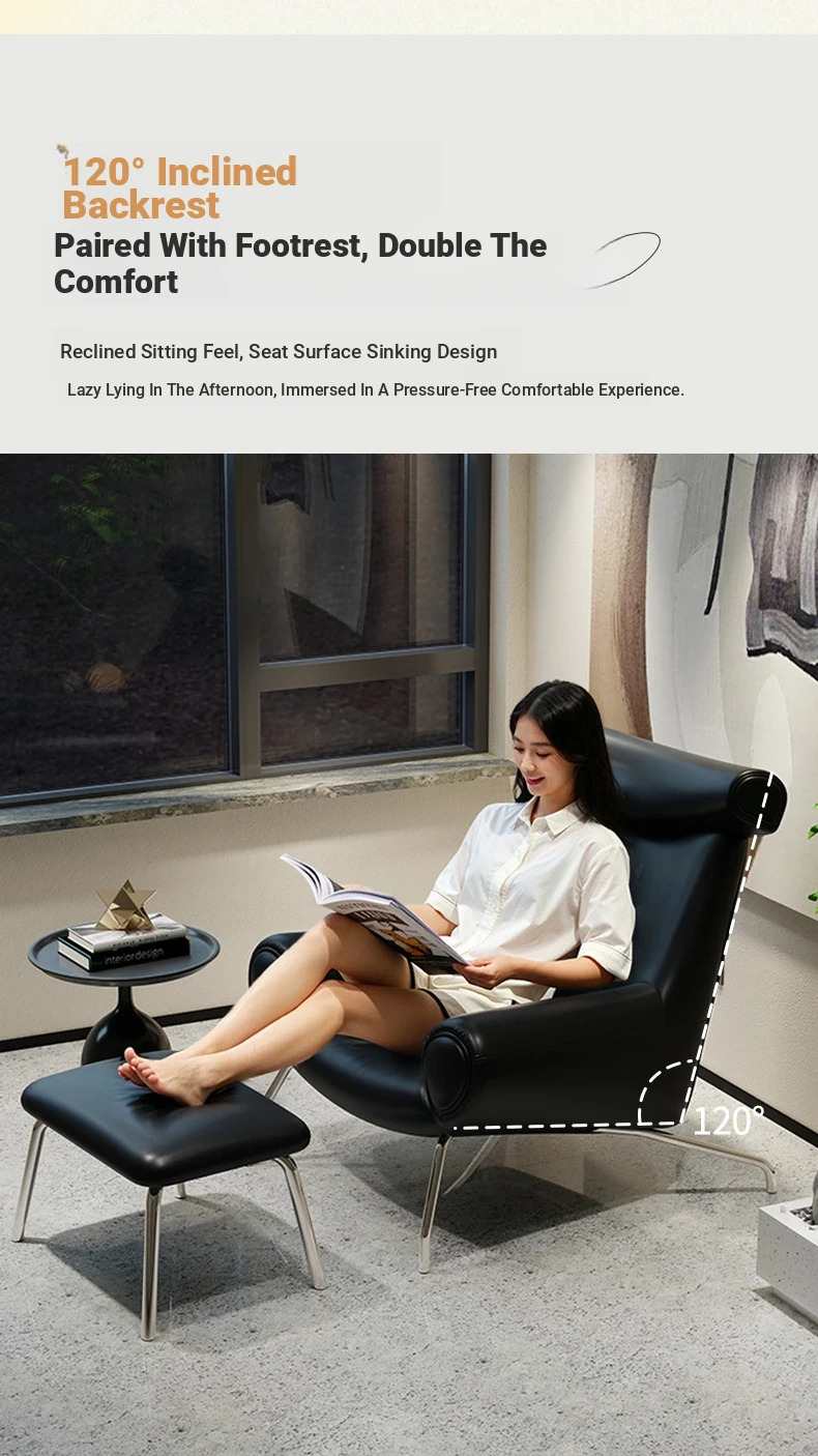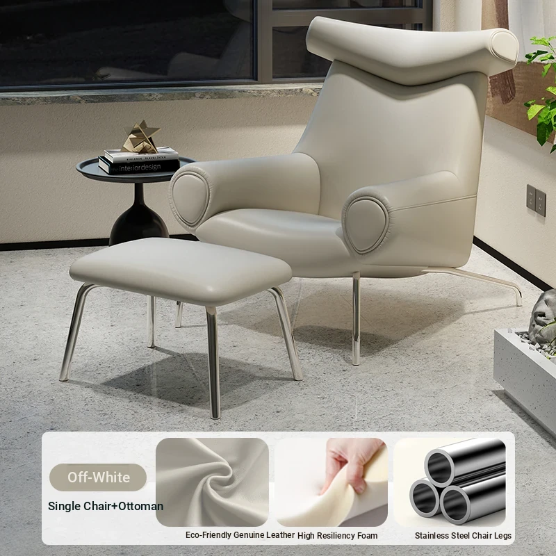 Modern Minimalist Black Genuine Leather Armchair - Italian Style Simple Hotel Living Room Lounge Chair, Bull Chair for Chic Comfort
