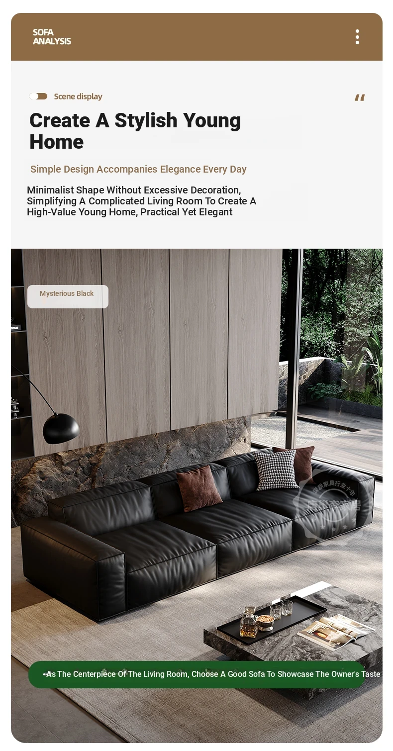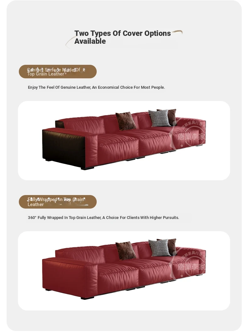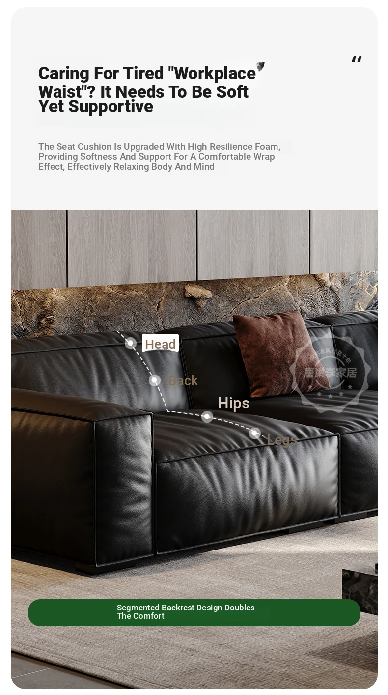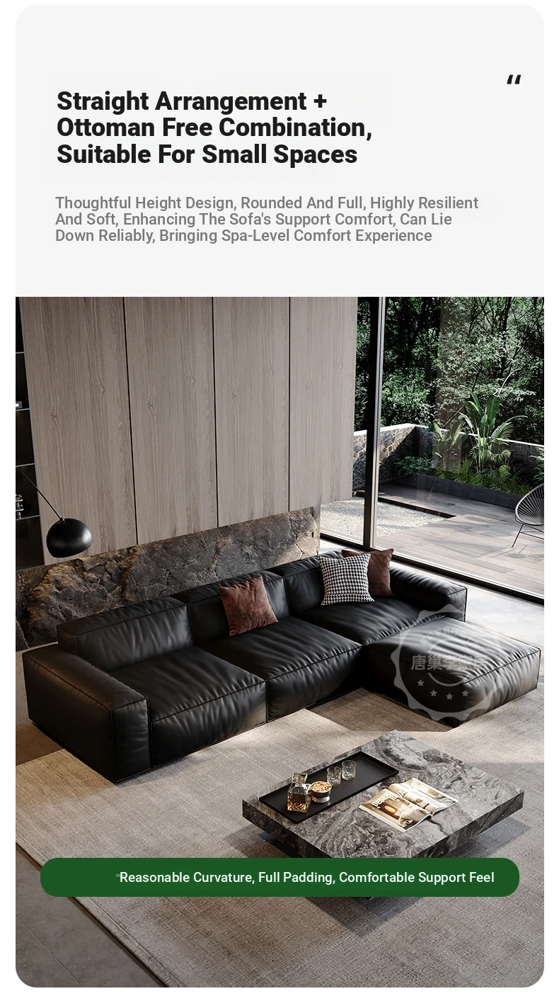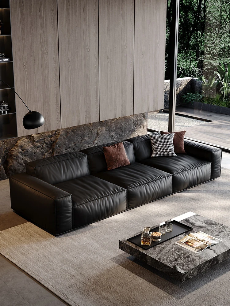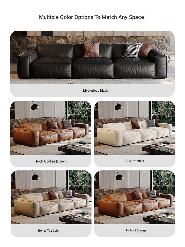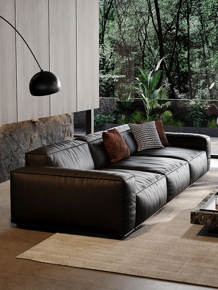 Modern Minimalist Italian Luxury Genuine Leather Sofa for Small Living Rooms - Stylish Block Design, Made with Premium Top-Grain Cowhide, Perfect for Compact Spaces.