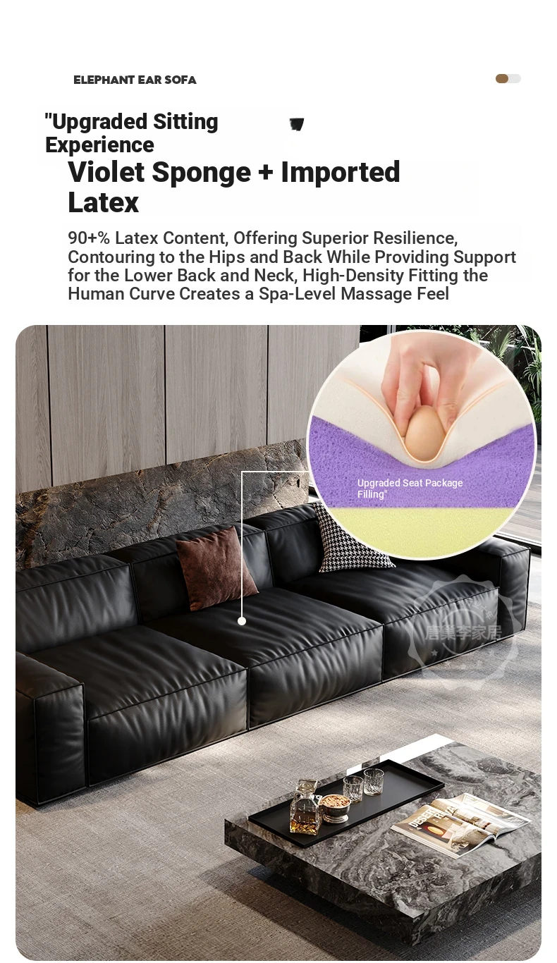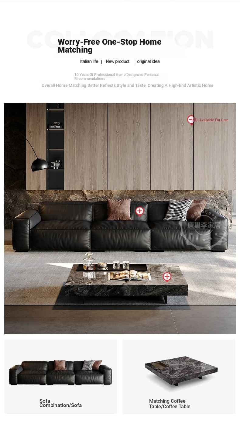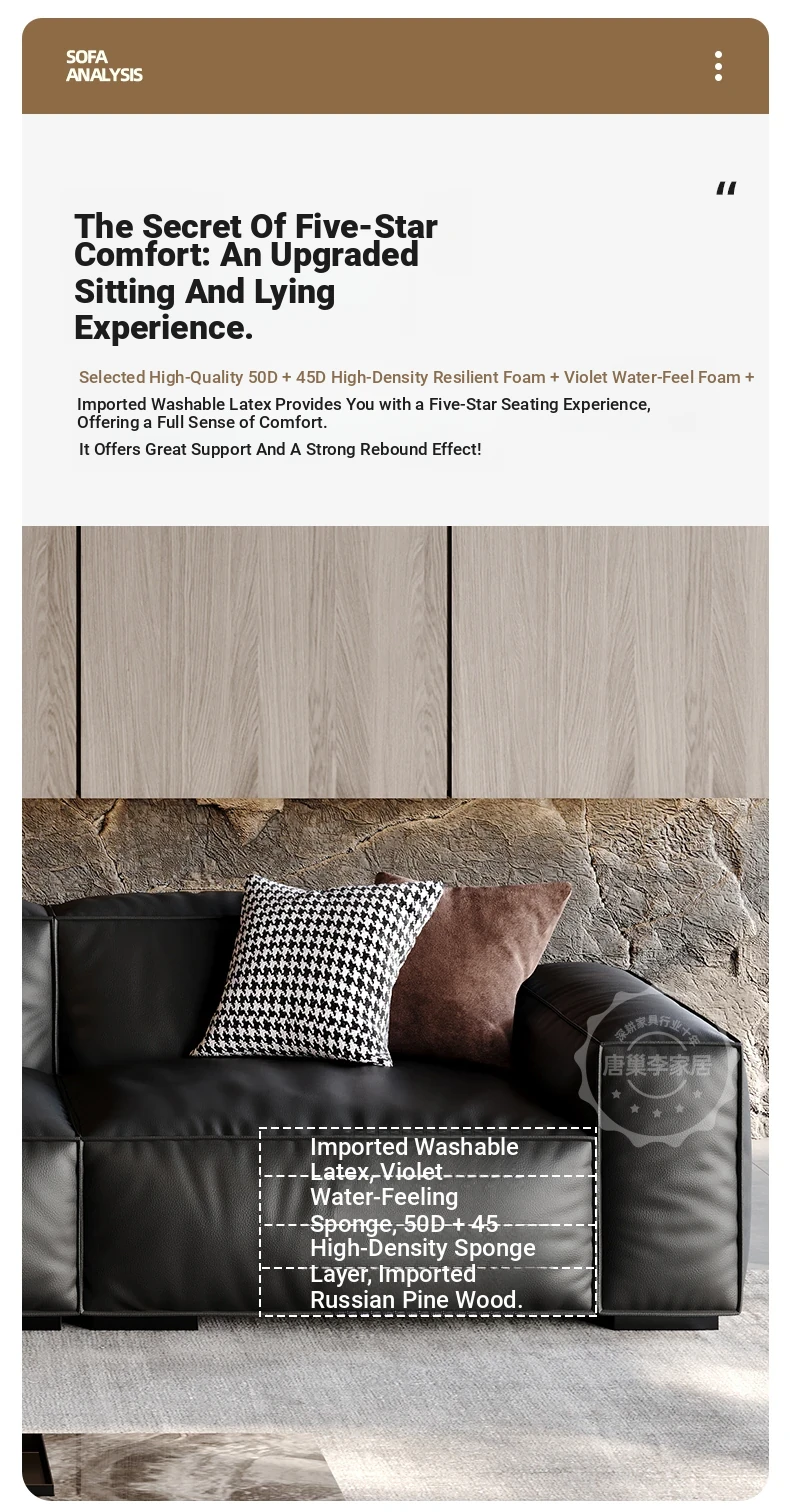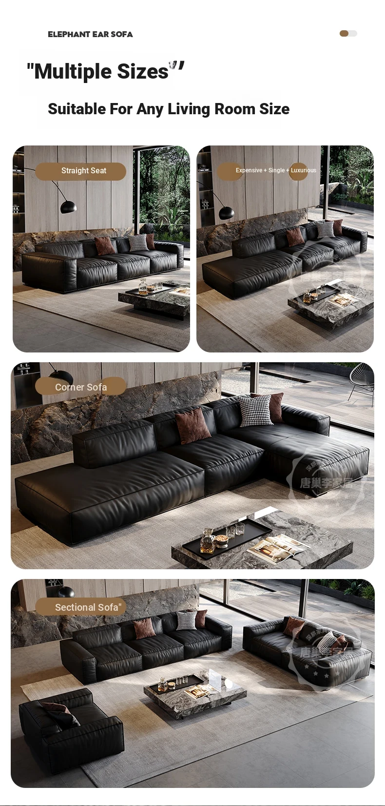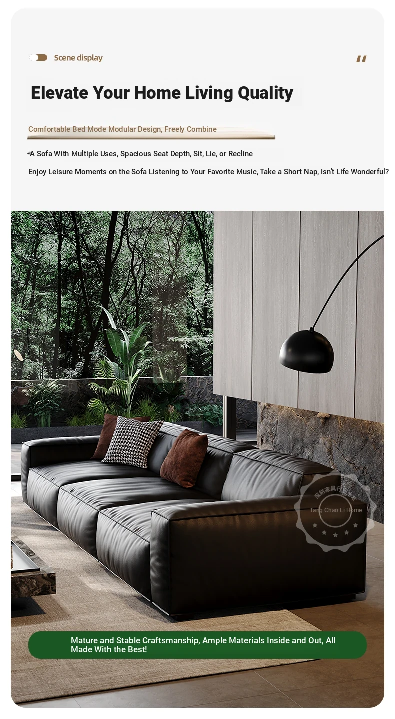 Modern Minimalist Italian Luxury Genuine Leather Sofa for Small Living Rooms - Stylish Block Design, Made with Premium Top-Grain Cowhide, Perfect for Compact Spaces.