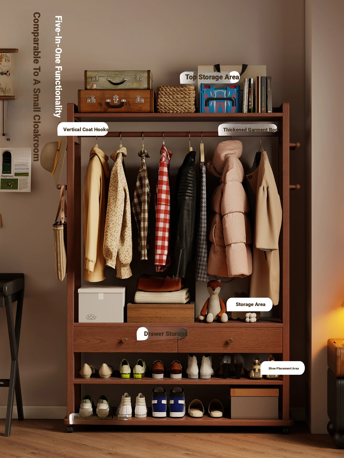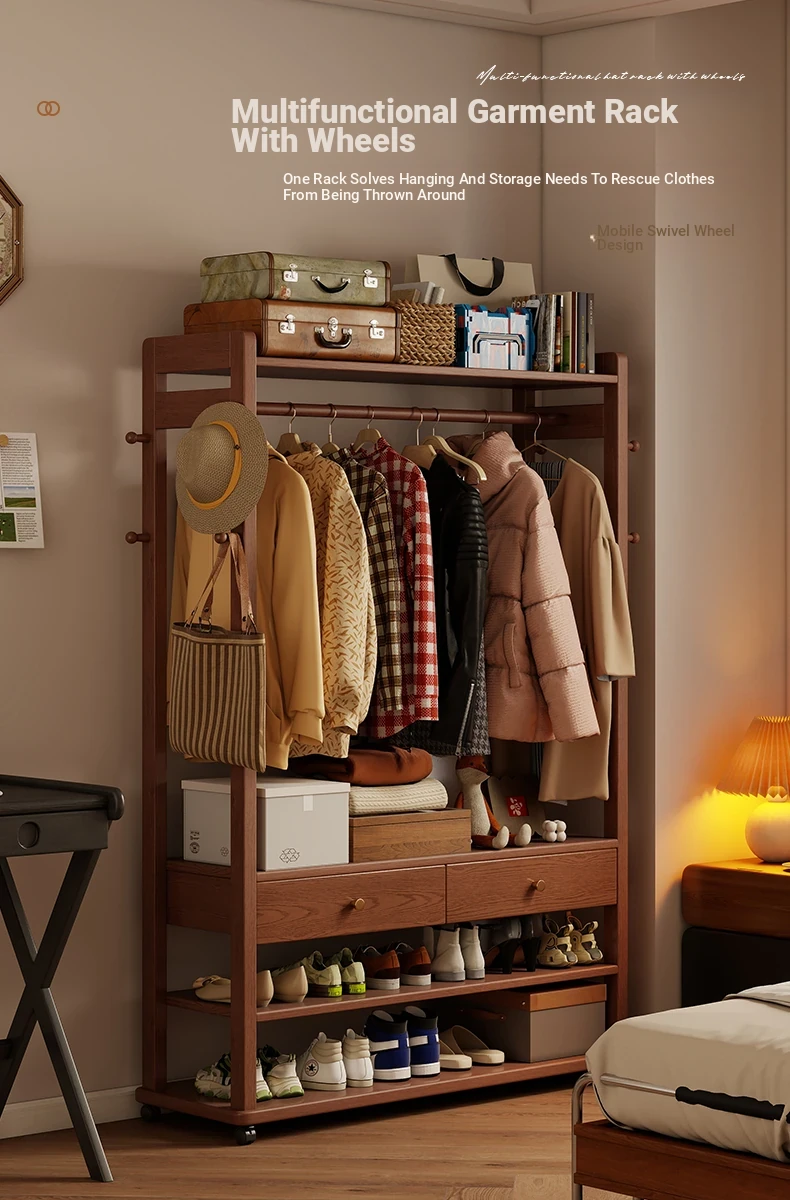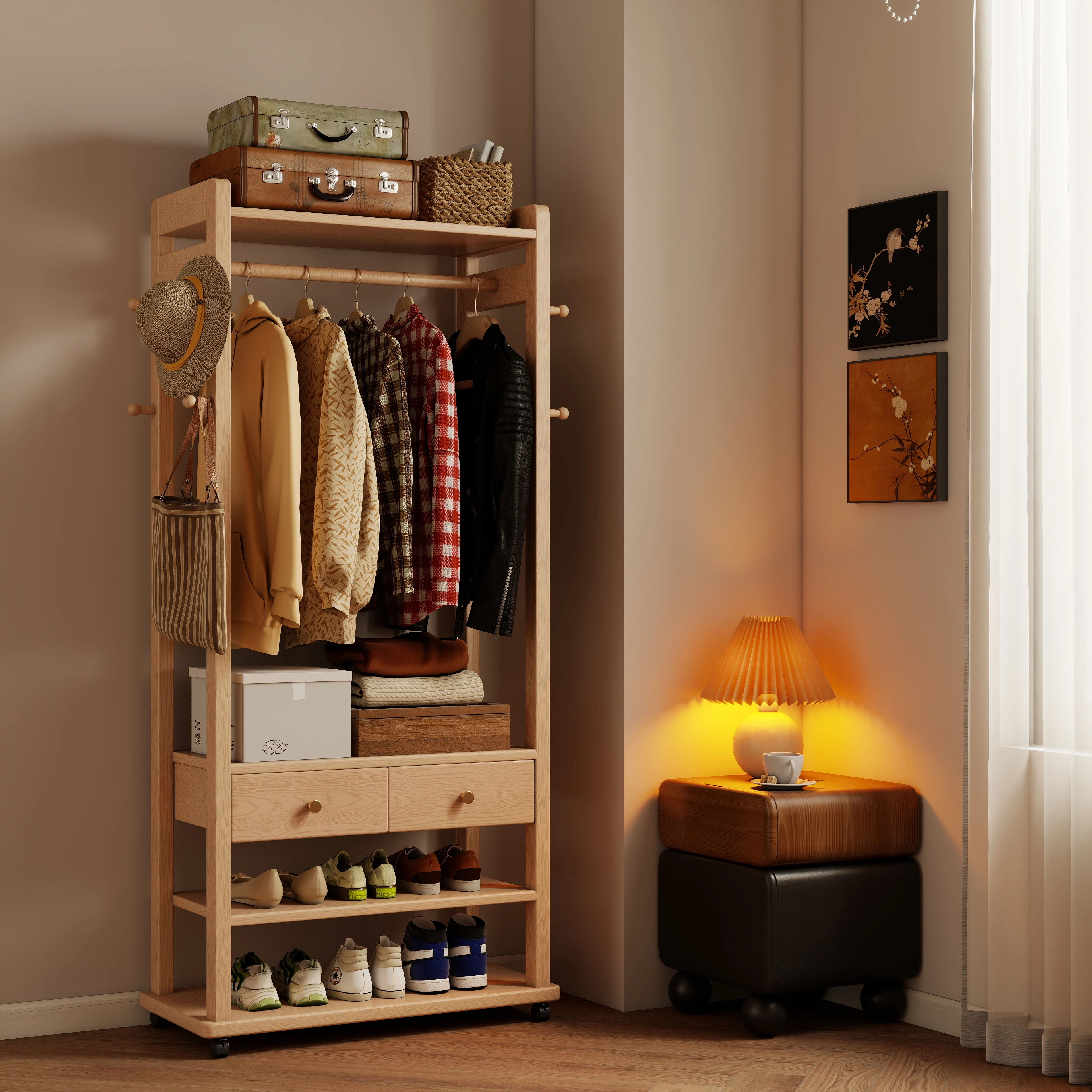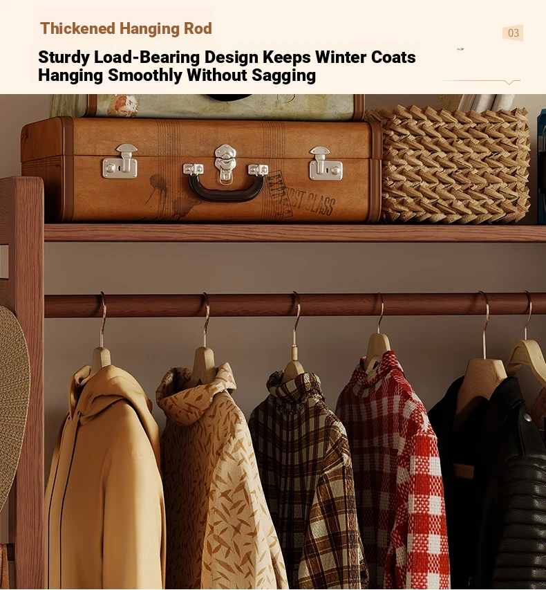 Modern Minimalist Solid Wood Clothes Rack - Portable Floor-standing Hanger for Bedroom, Entryway, and Hallway with Multi-layer Storage Solution