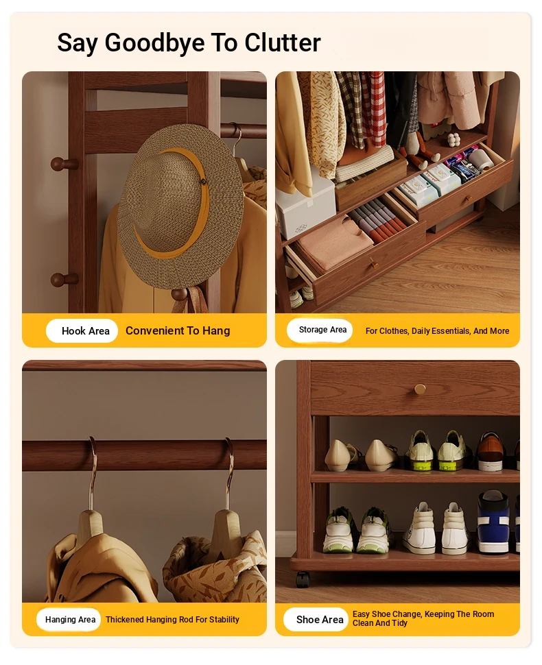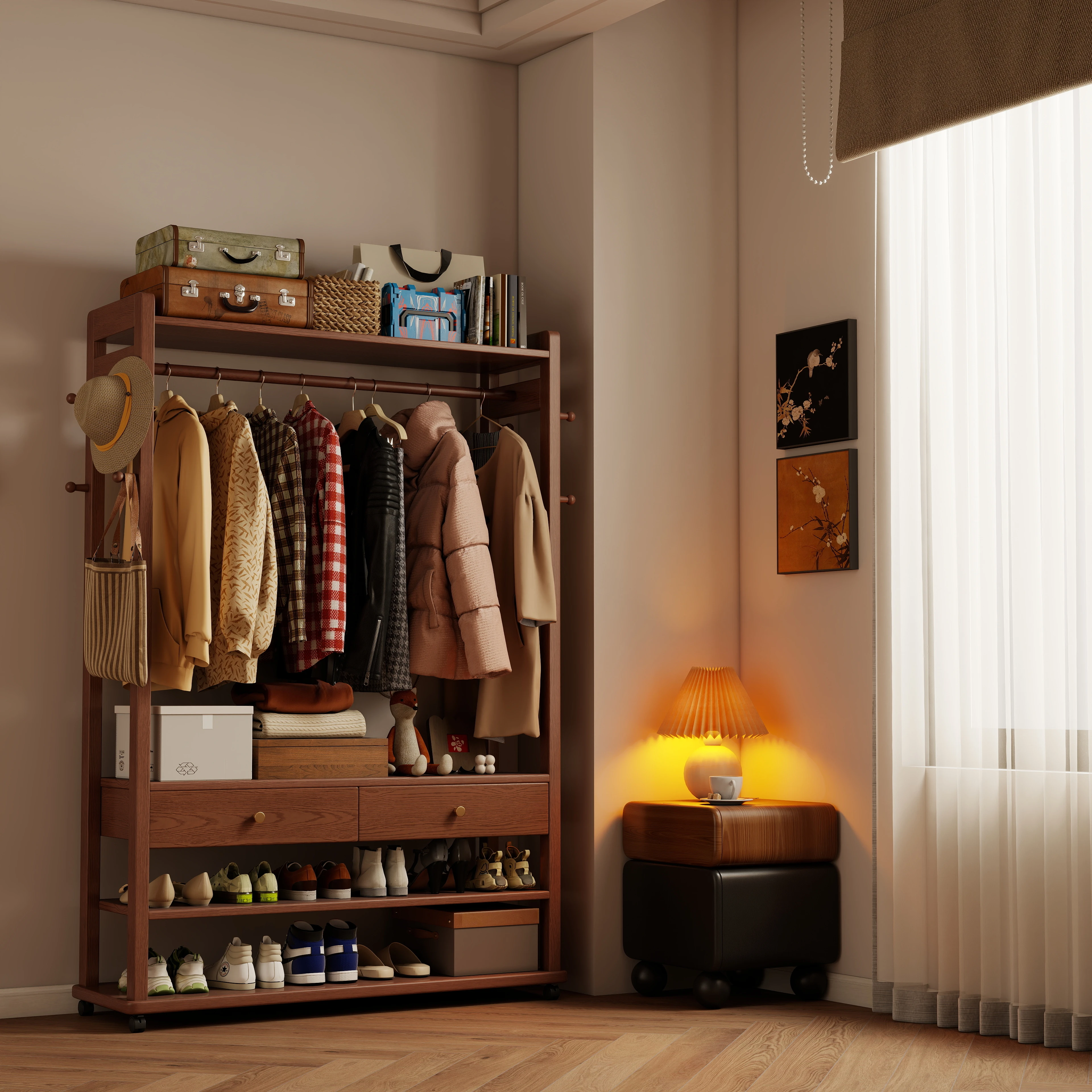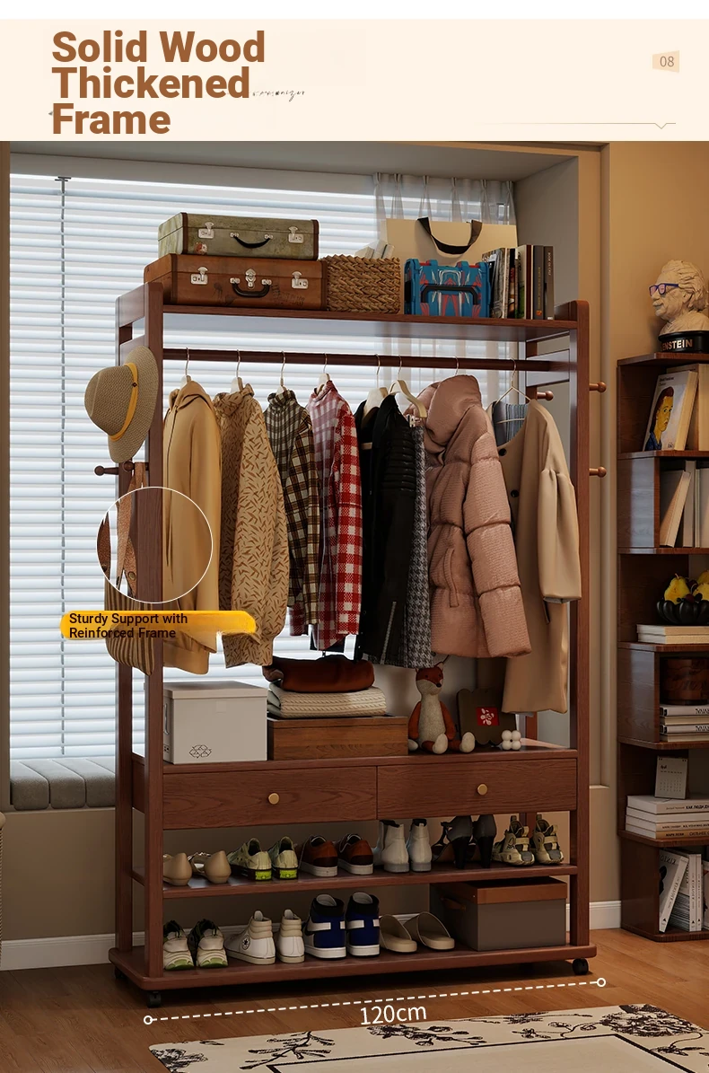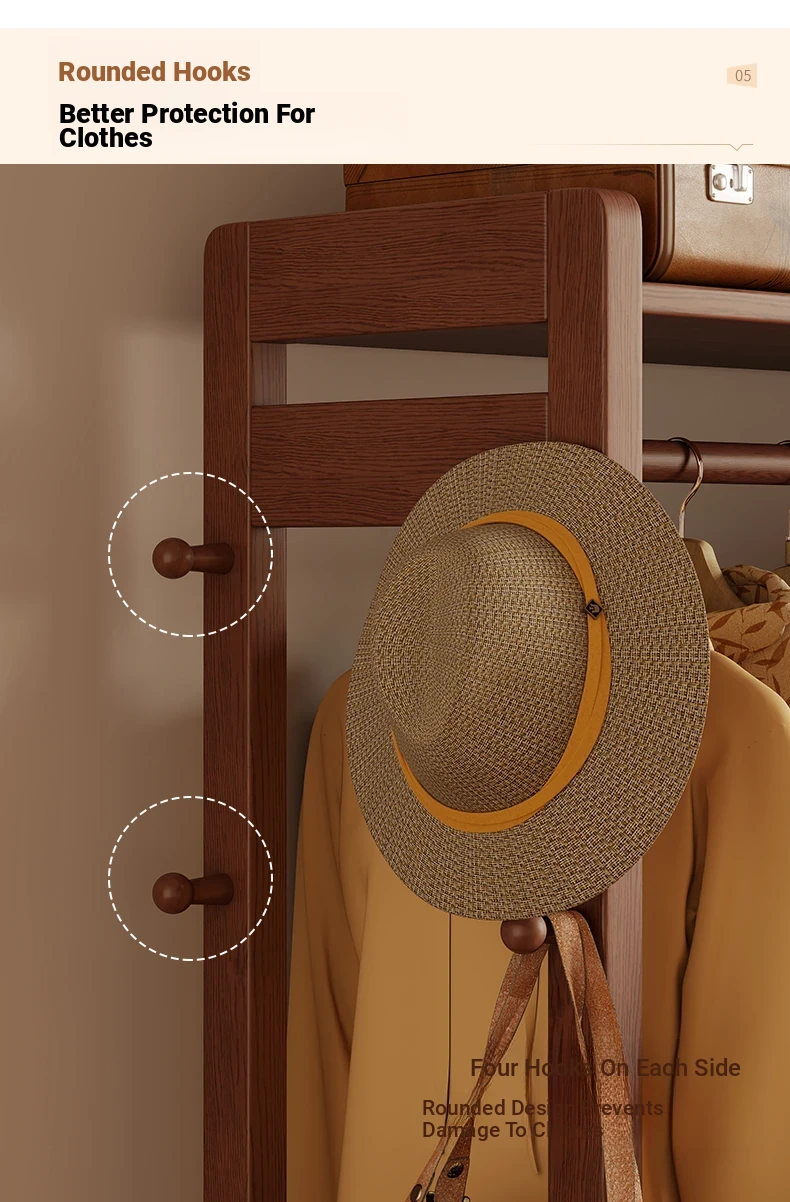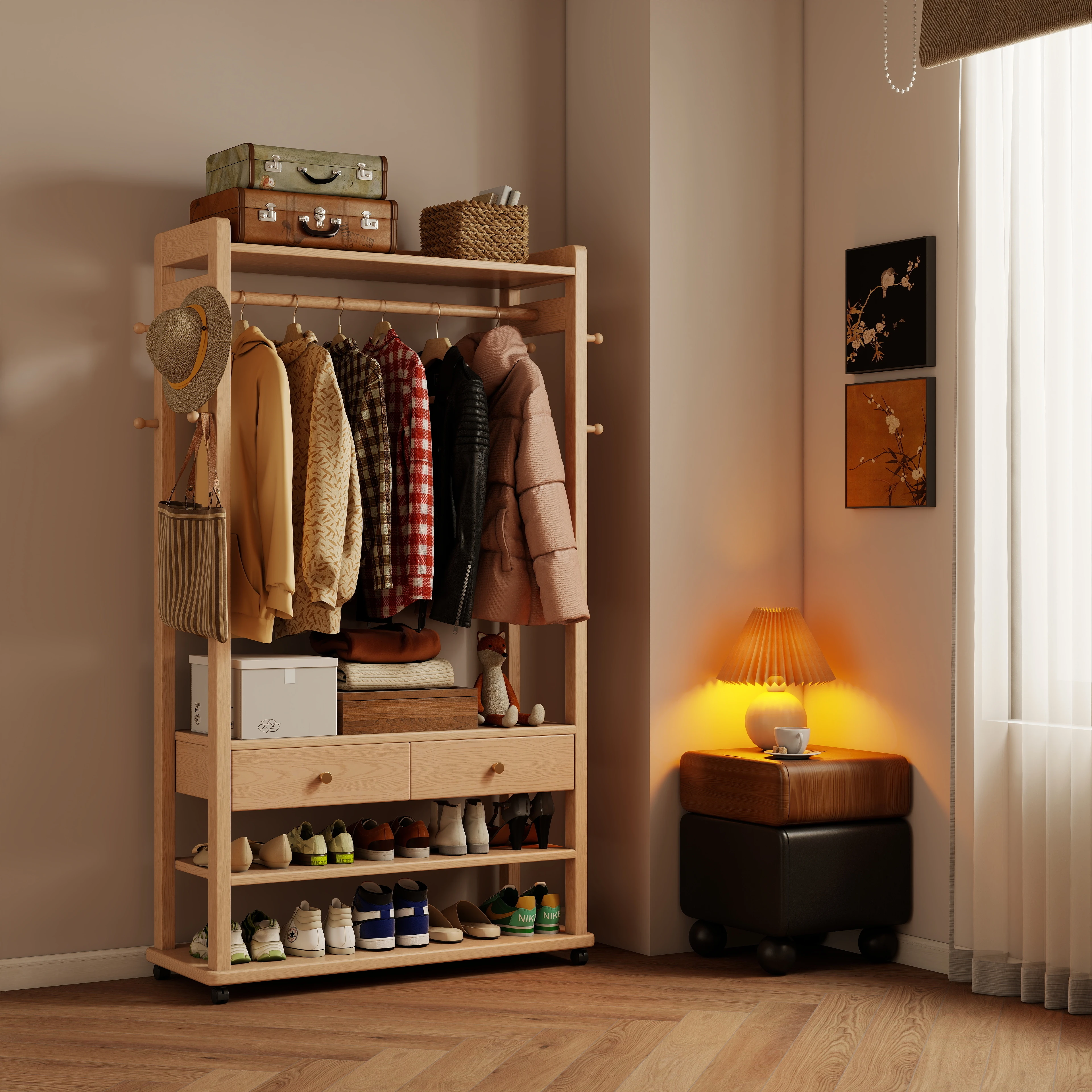 Modern Minimalist Solid Wood Clothes Rack - Portable Floor-standing Hanger for Bedroom, Entryway, and Hallway with Multi-layer Storage Solution