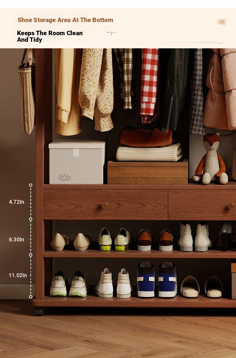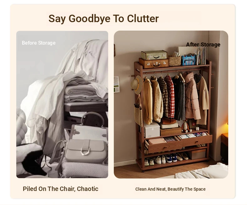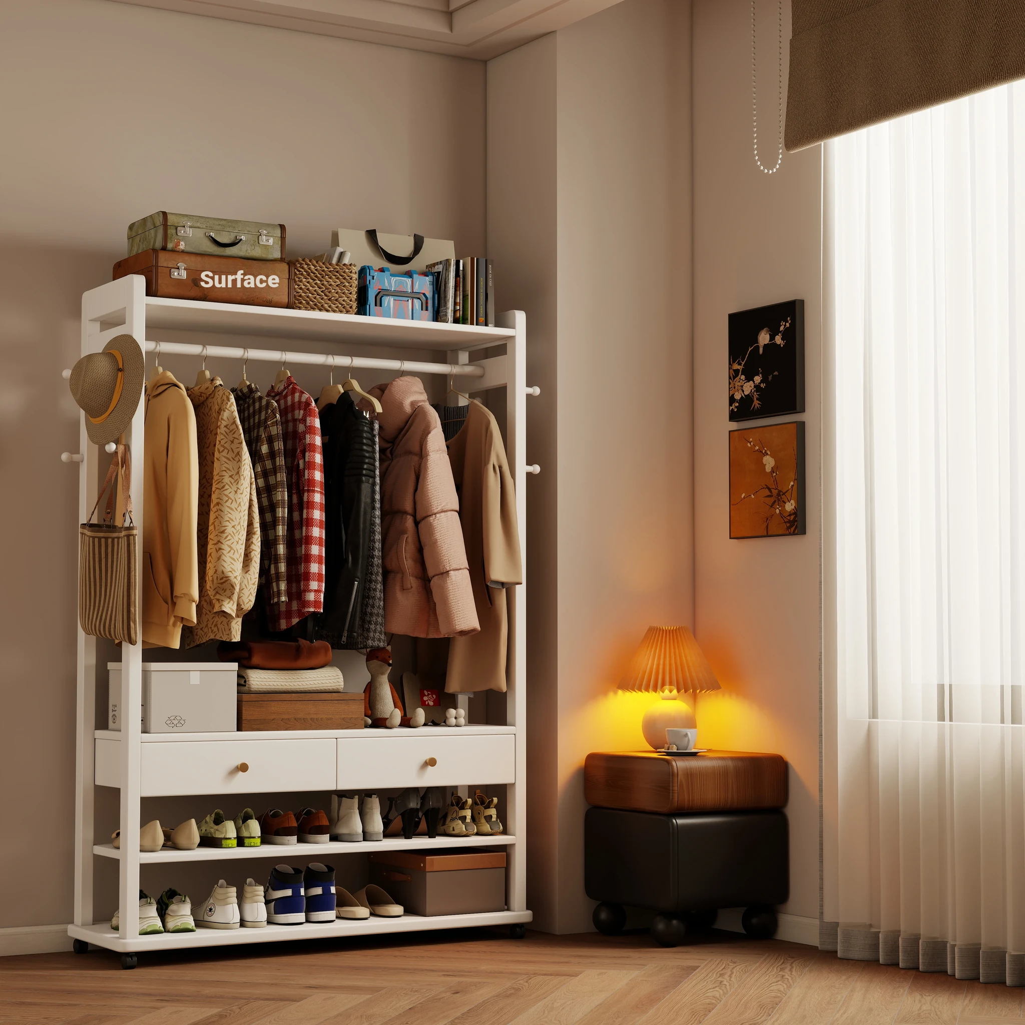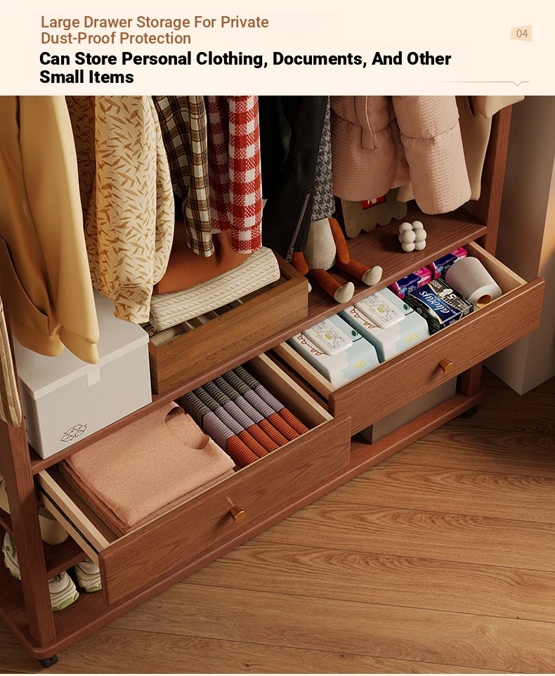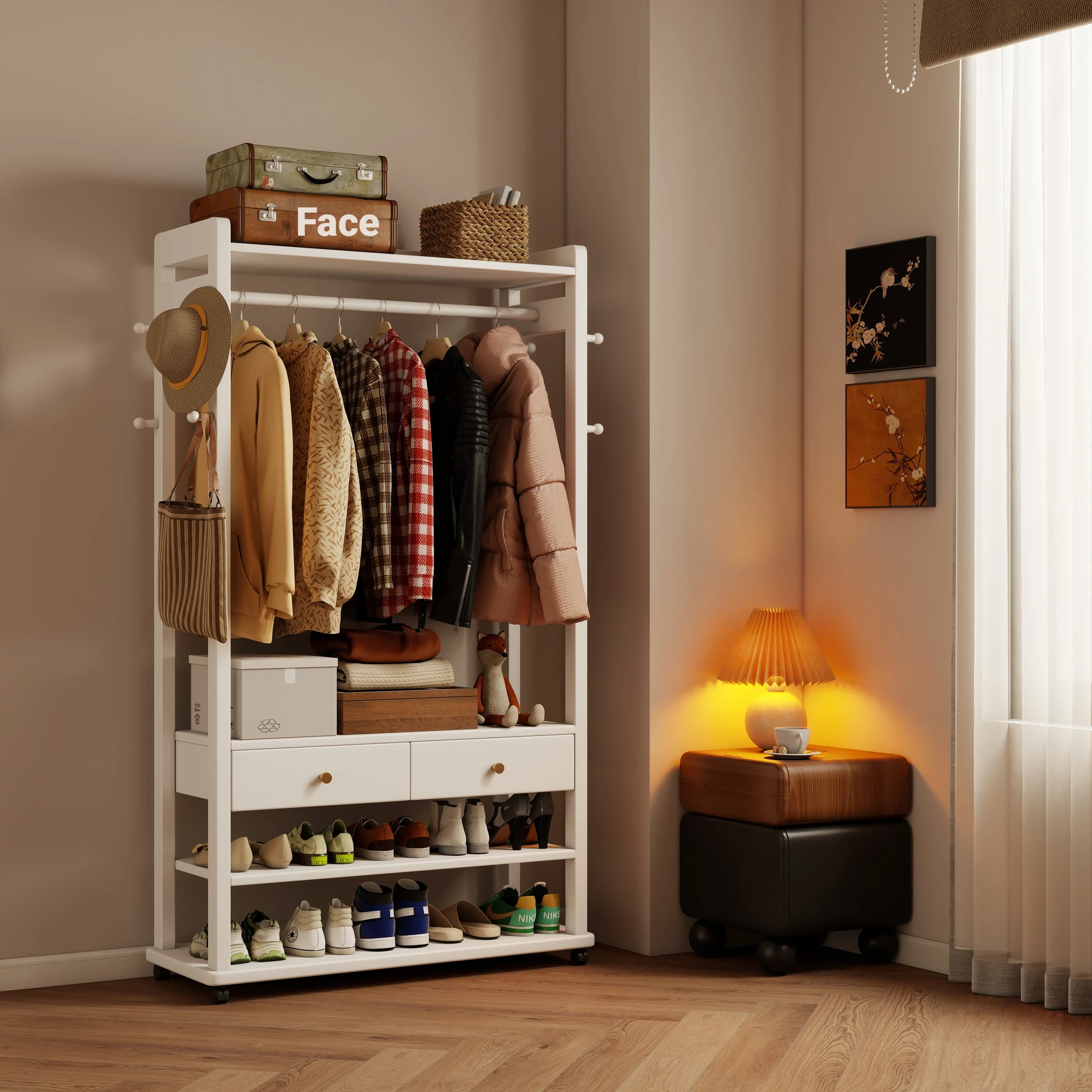 Modern Minimalist Solid Wood Clothes Rack - Portable Floor-standing Hanger for Bedroom, Entryway, and Hallway with Multi-layer Storage Solution