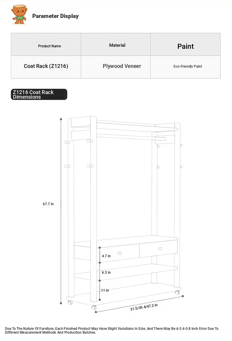 Solid Wood Coat Rack [31.50in*67.72in] - Wood Color, Selected Eucalyptus Wood - Upgraded and Thickened