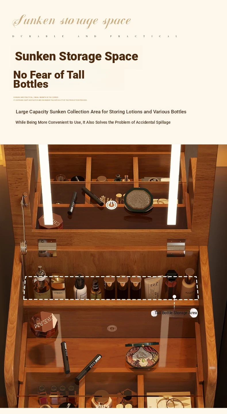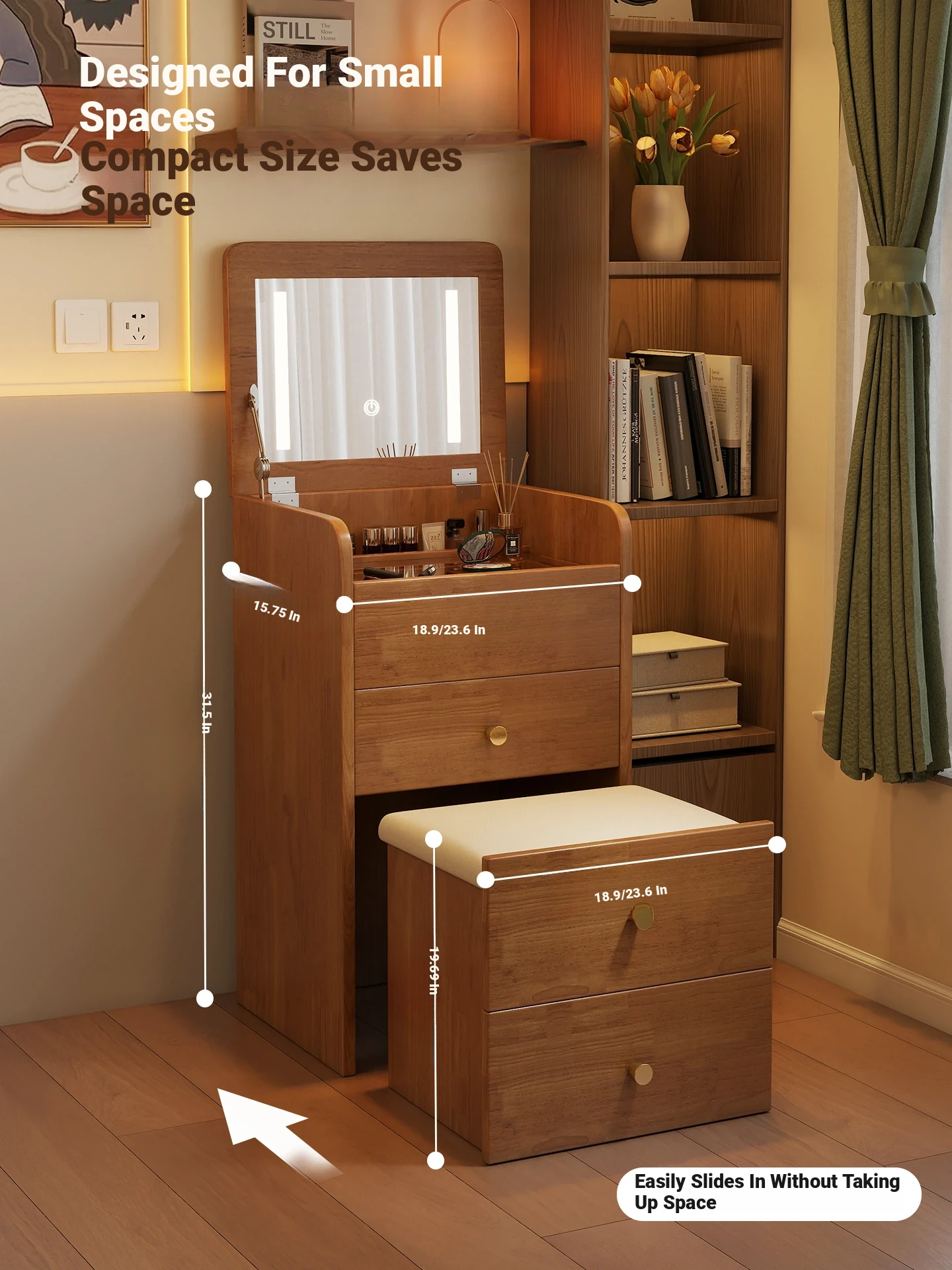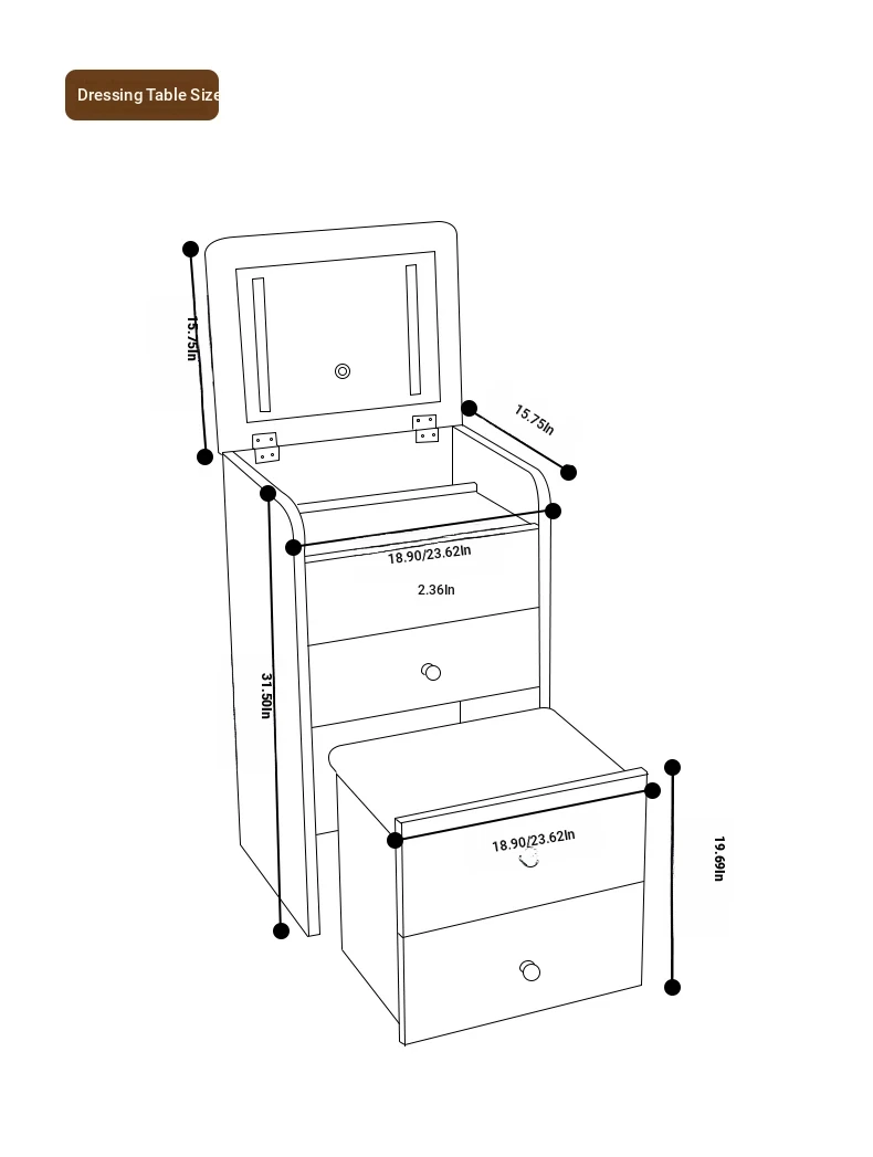 18.90in [Log Color] Flip-Top Dressing Table