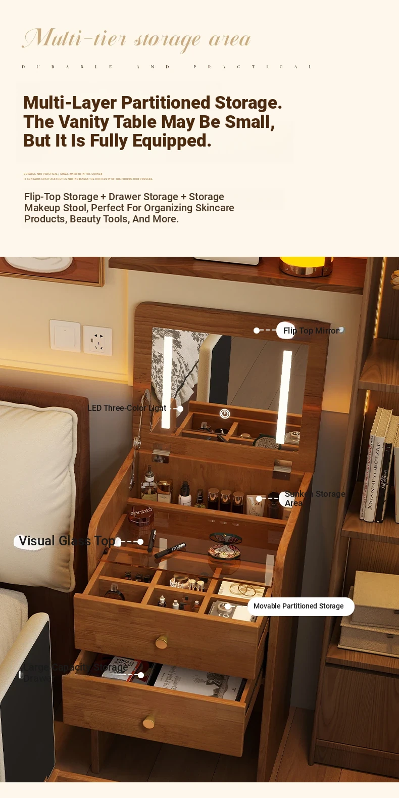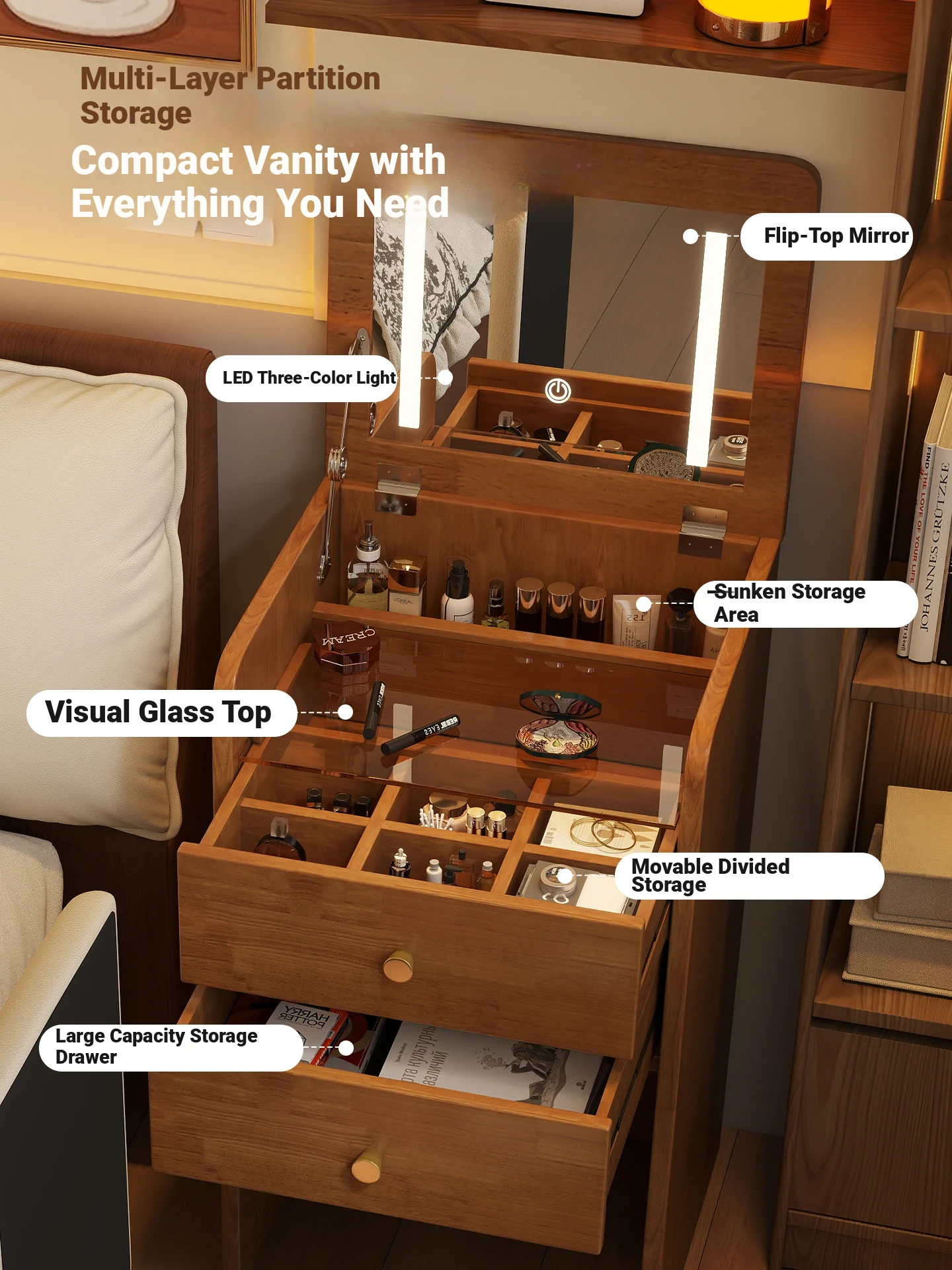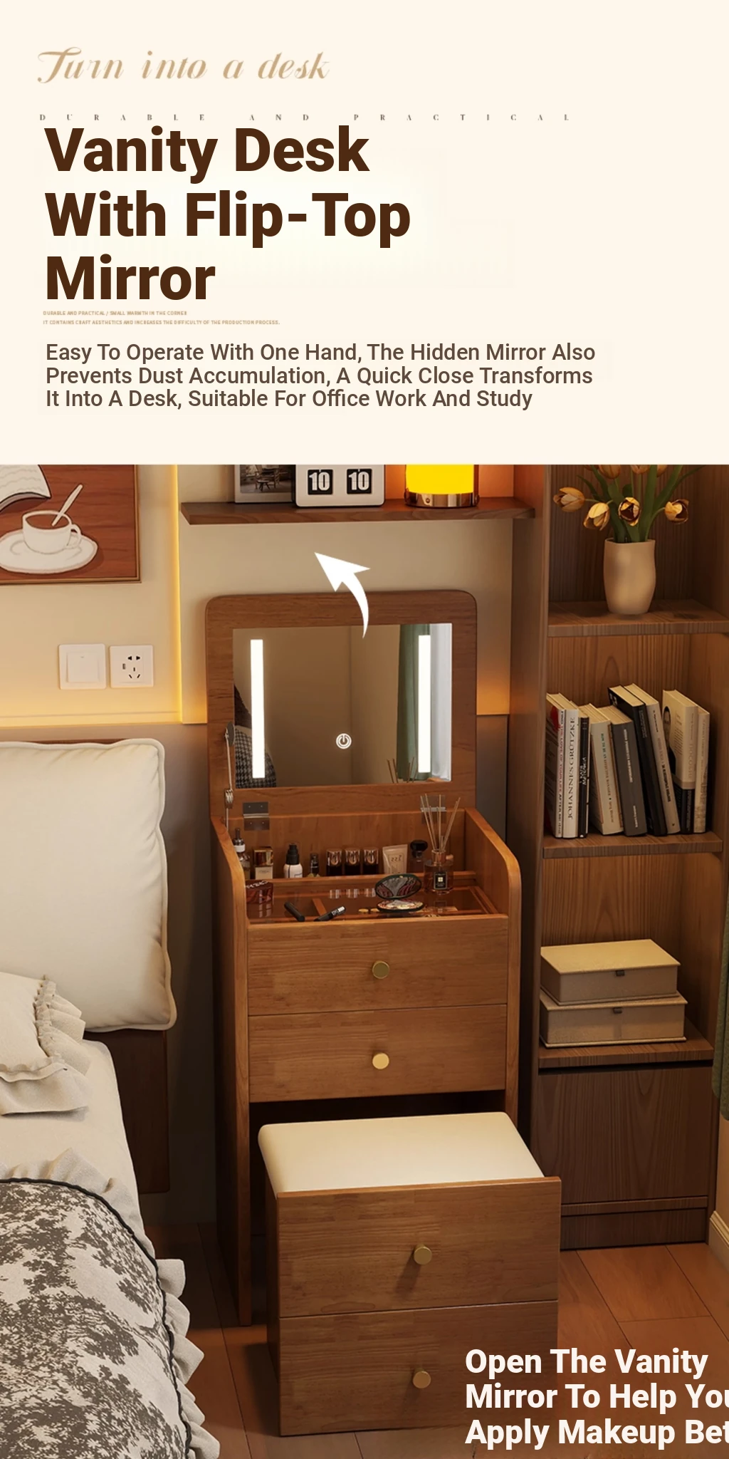 18.90in [Log Color] Flip-Top Dressing Table