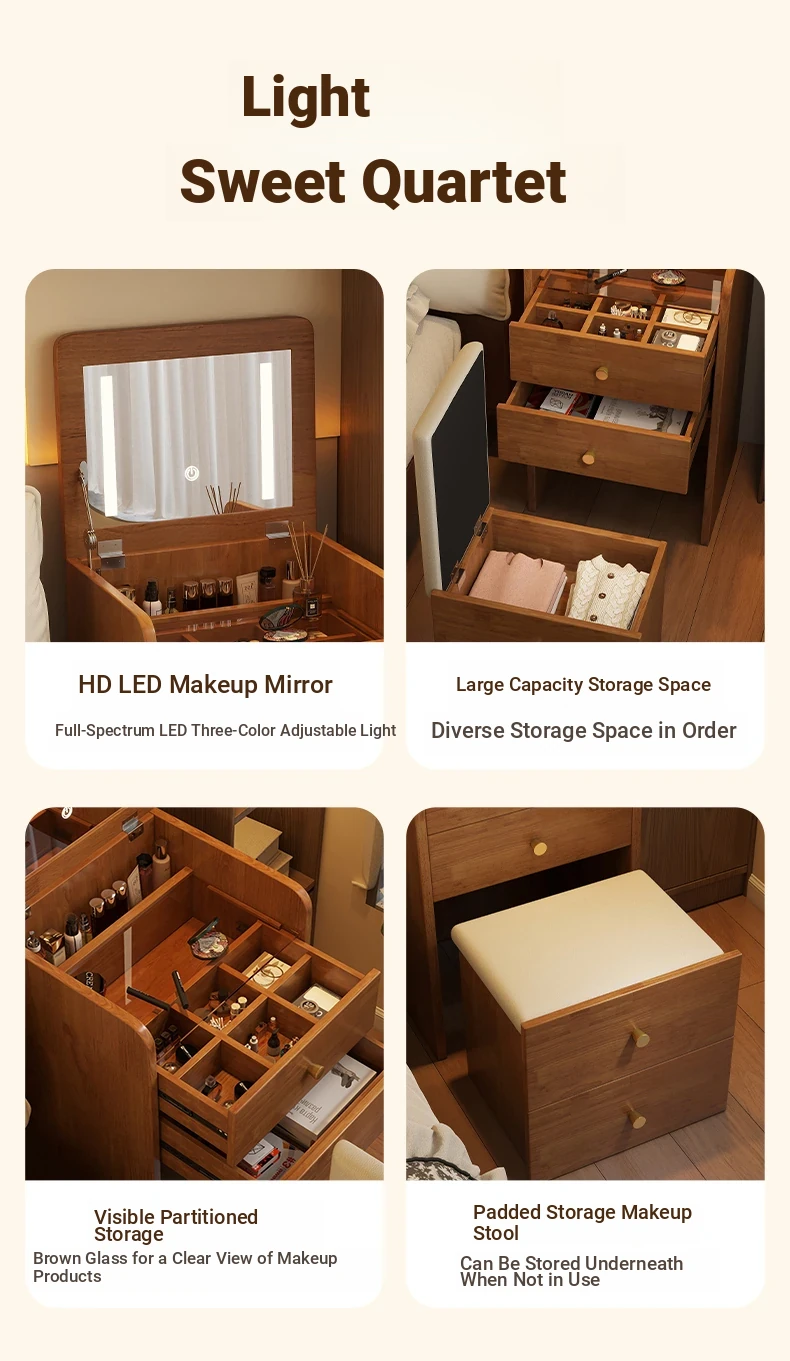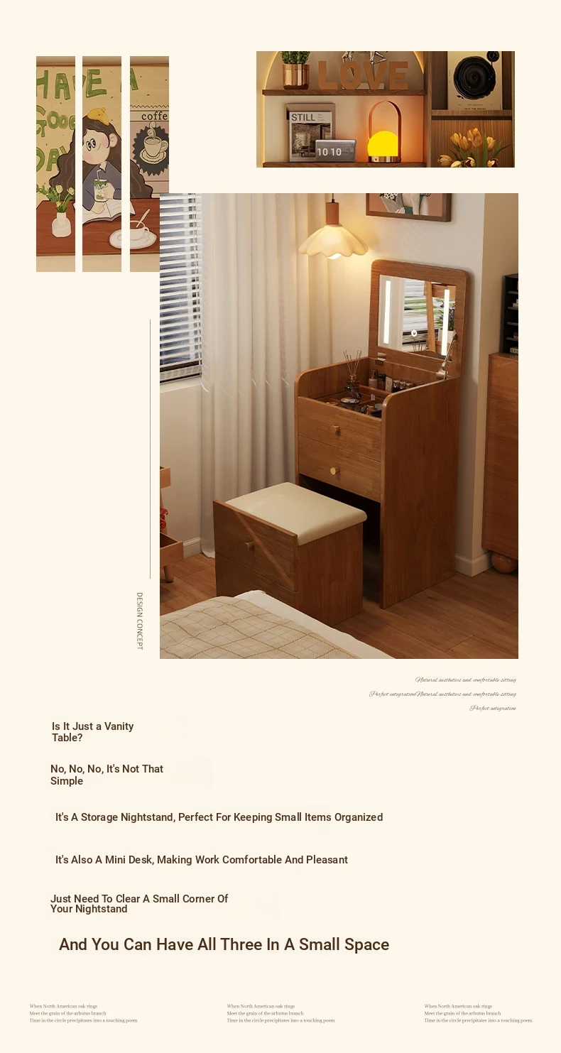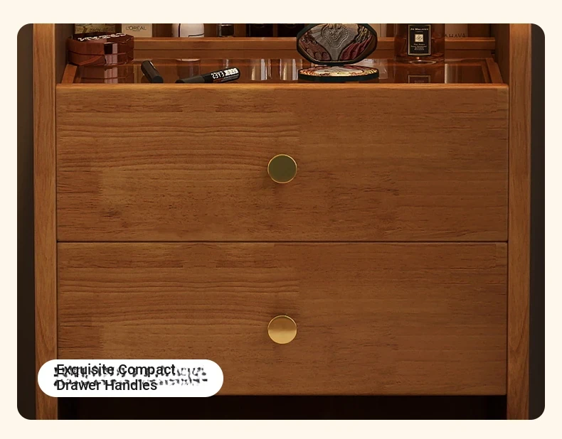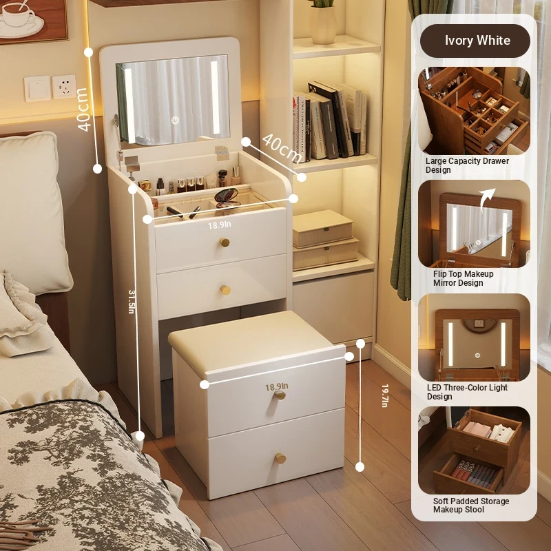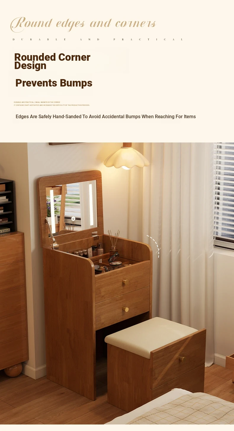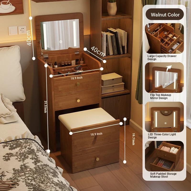 Modern Minimalist Solid Wood Flip-Top Vanity Table for Small Bedrooms - Multifunctional Makeup Desk with Storage Cabinet and Stool Combined