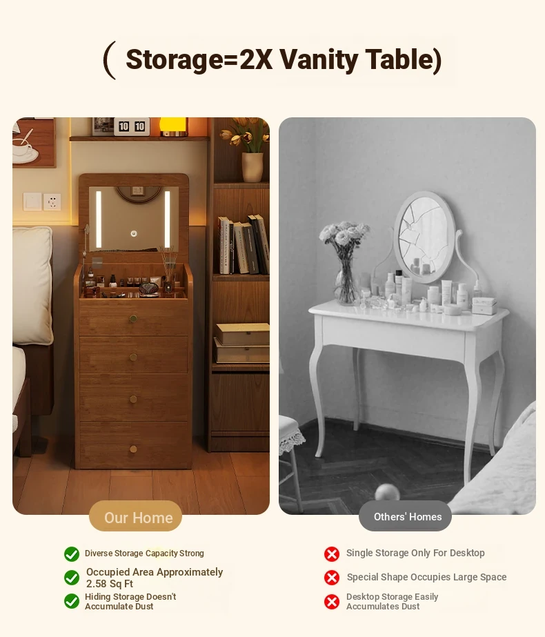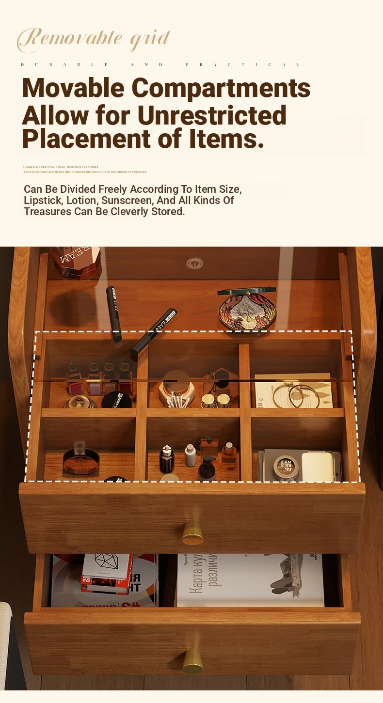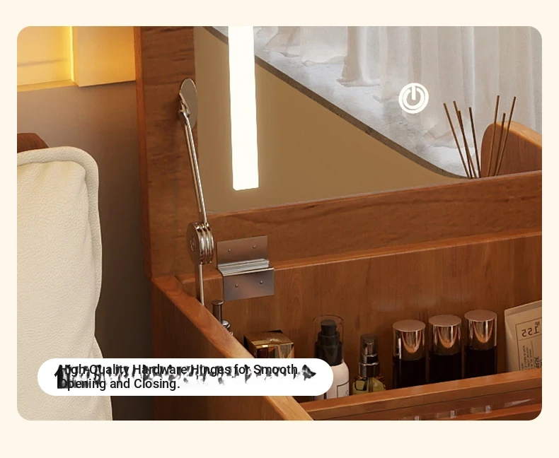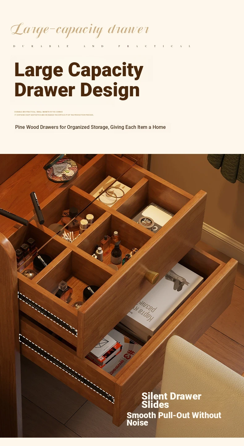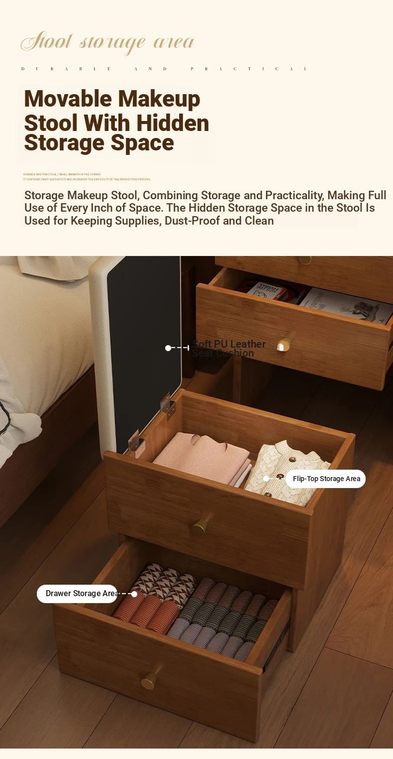Modern Minimalist Solid Wood Flip-Top Vanity Table for Small Bedrooms - Multifunctional Makeup Desk with Storage Cabinet and Stool Combined