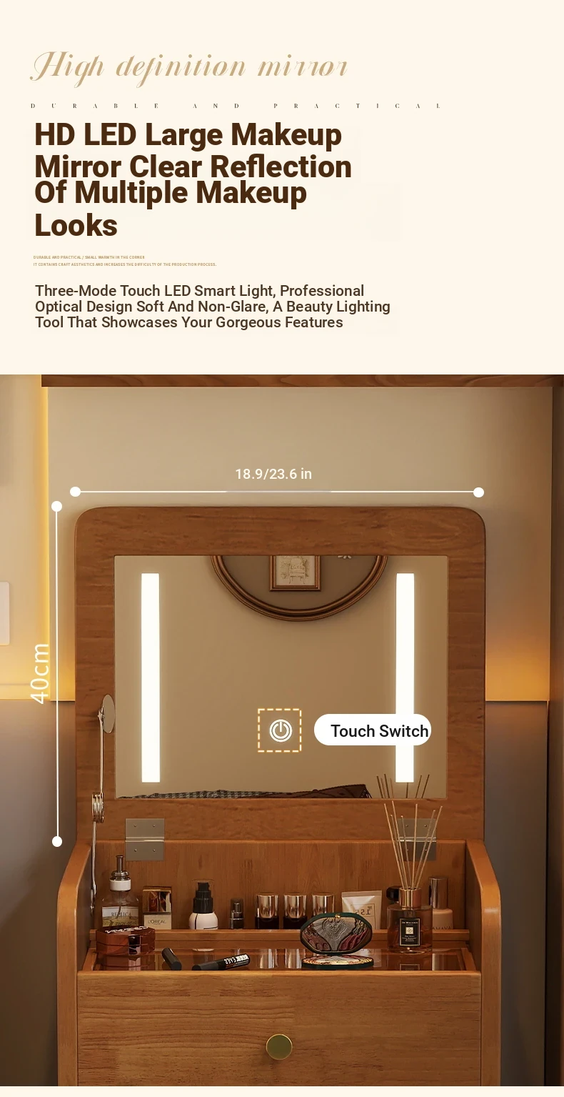 23.62in [Log Color] Flip-Top Dressing Table
