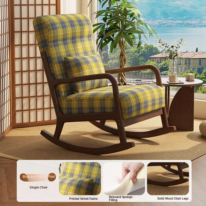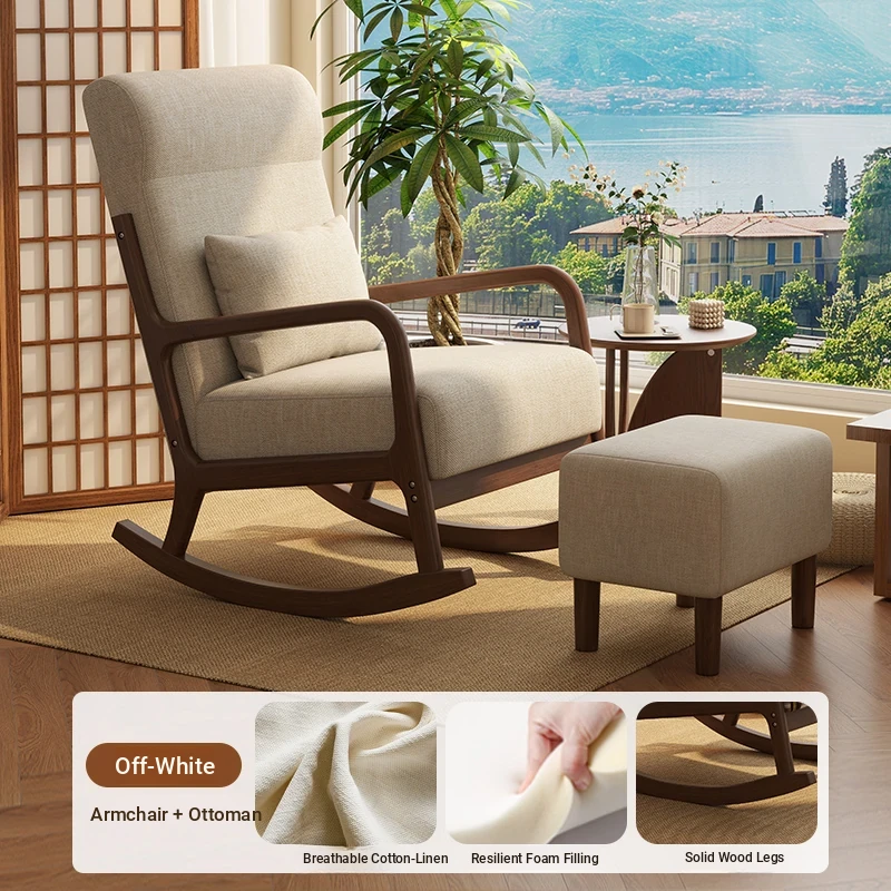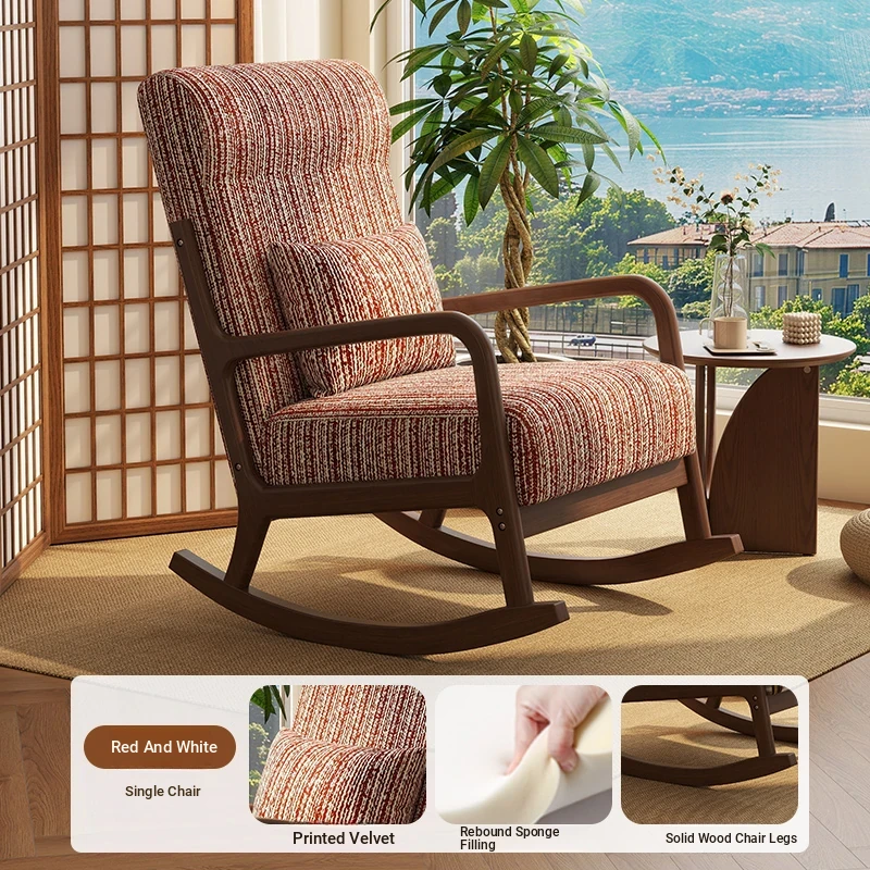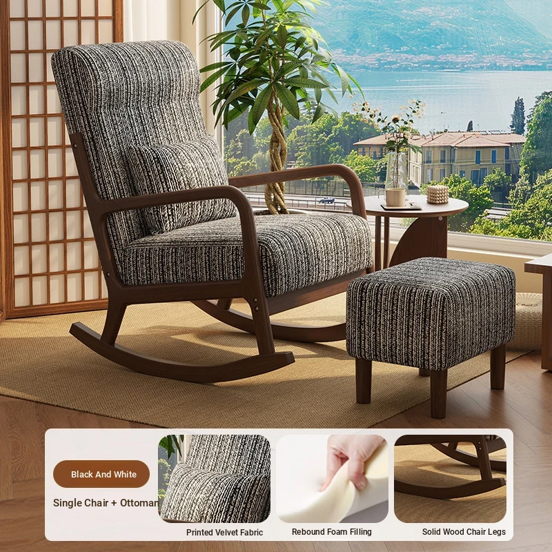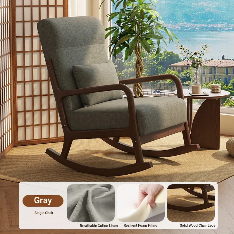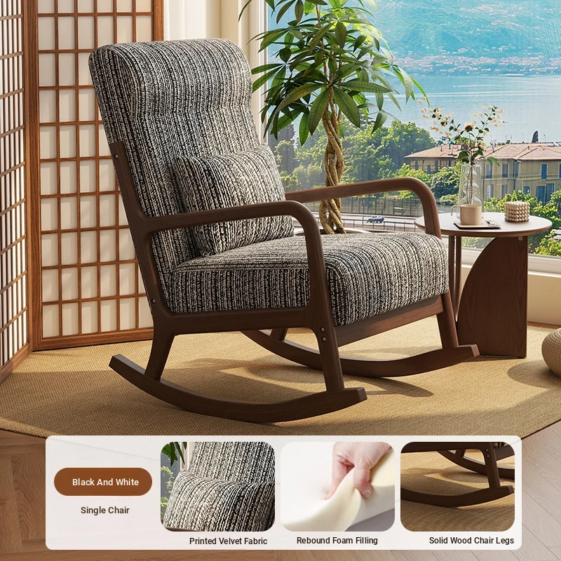 Modern Minimalist Solid Wood Rocking Chair - Comfortable Single Sofa for Living Room, Balcony, and Relaxation. Perfect for Seniors with Ergonomic Back Support.