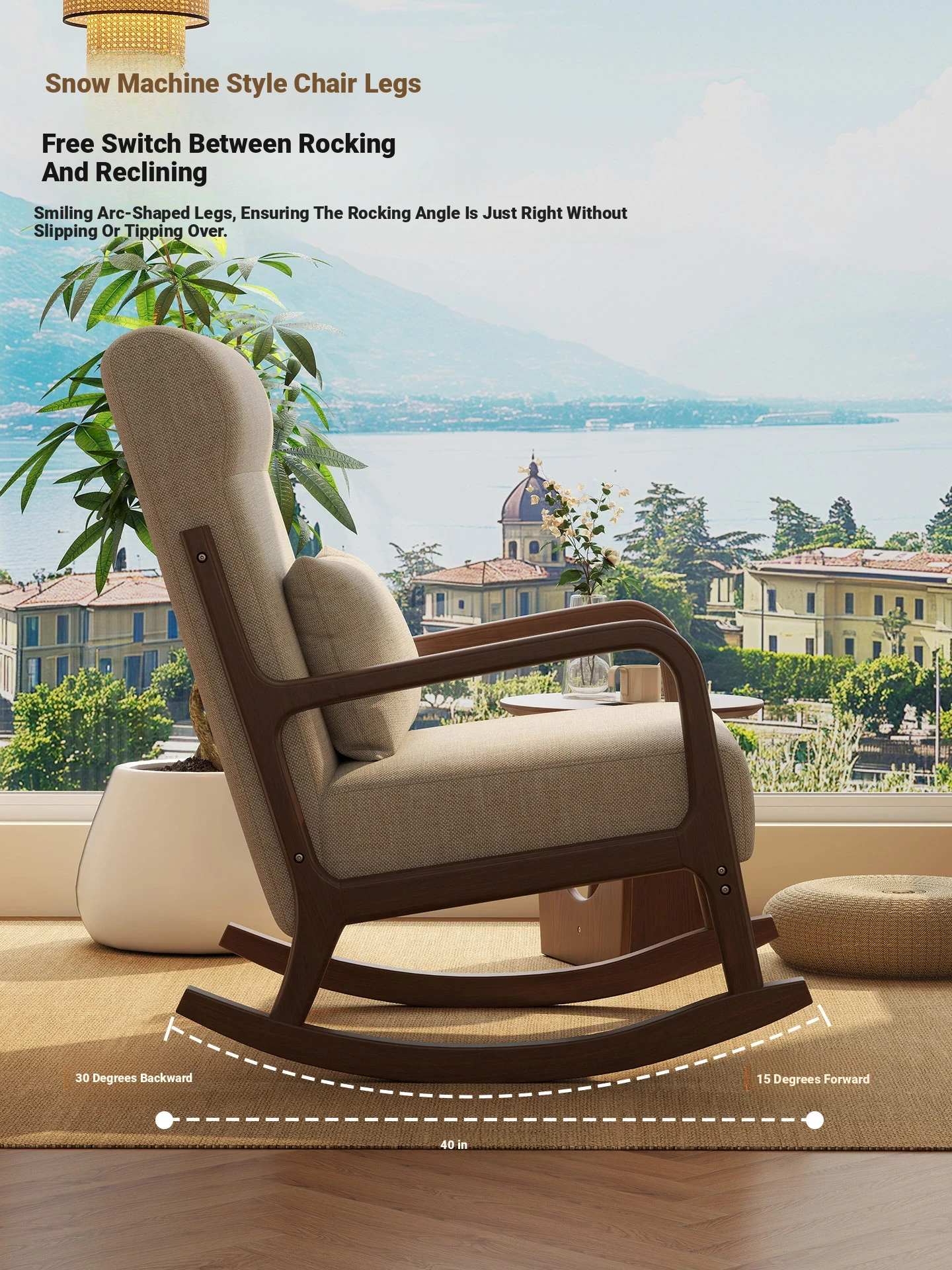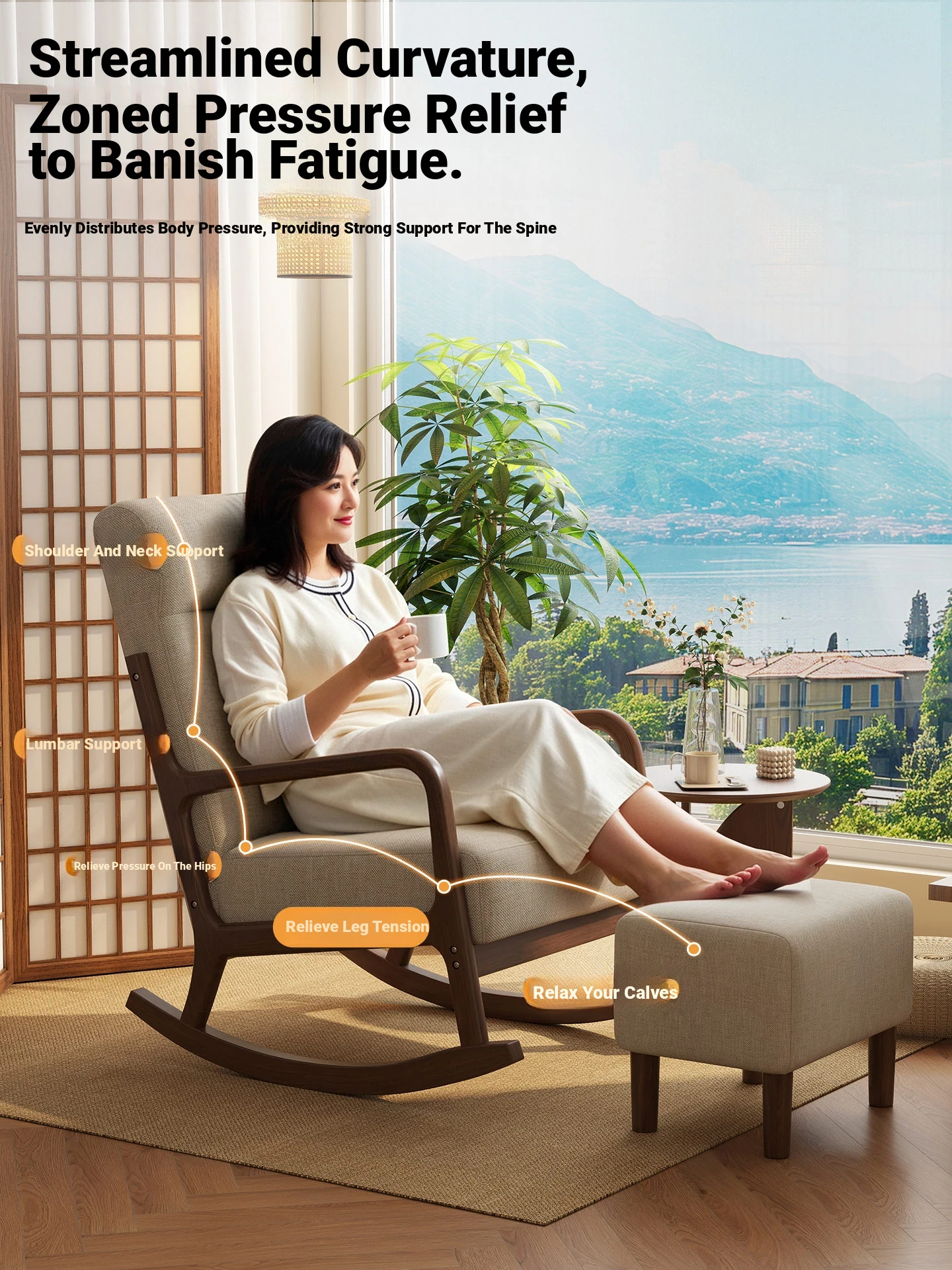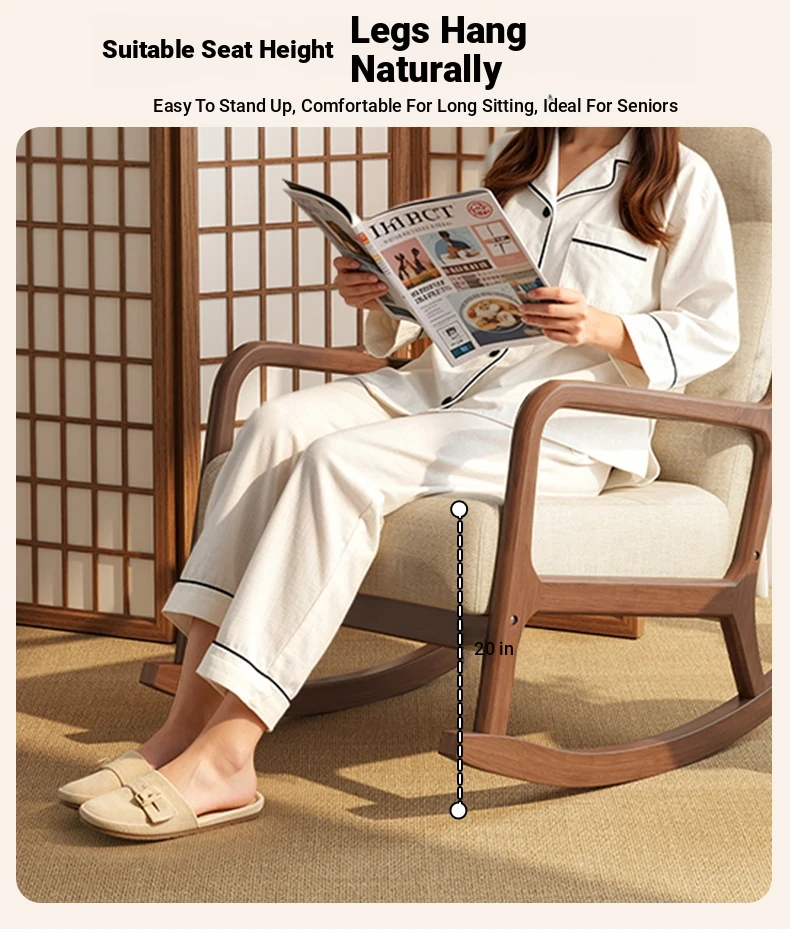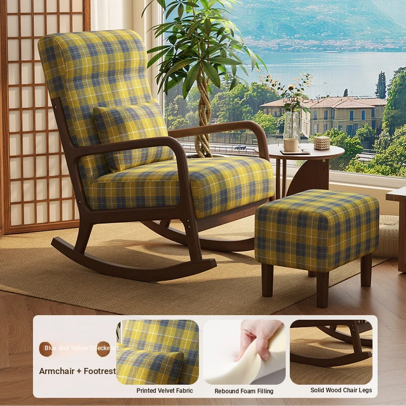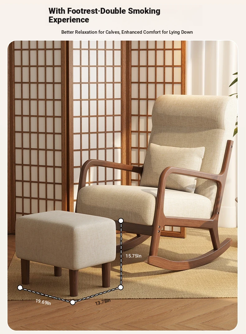 Modern Minimalist Solid Wood Rocking Chair - Comfortable Single Sofa for Living Room, Balcony, and Relaxation. Perfect for Seniors with Ergonomic Back Support.