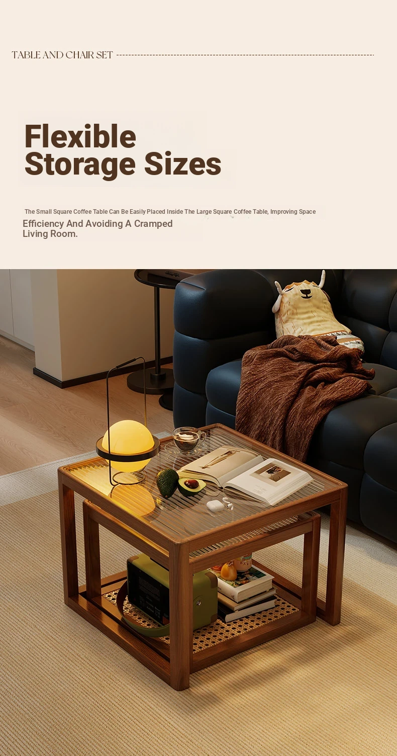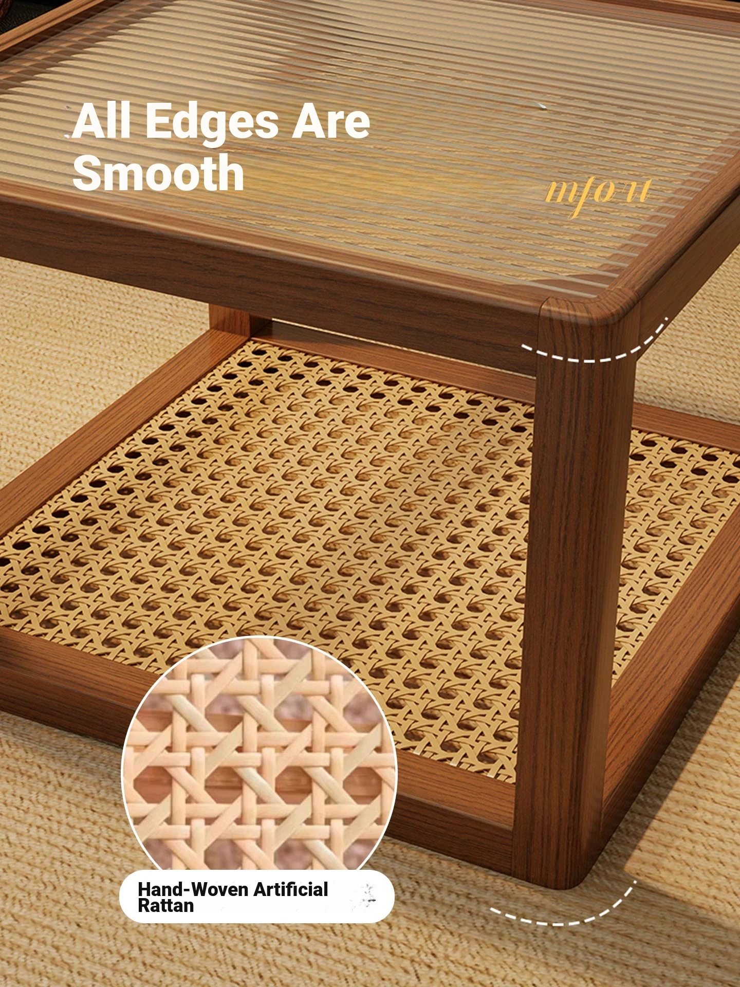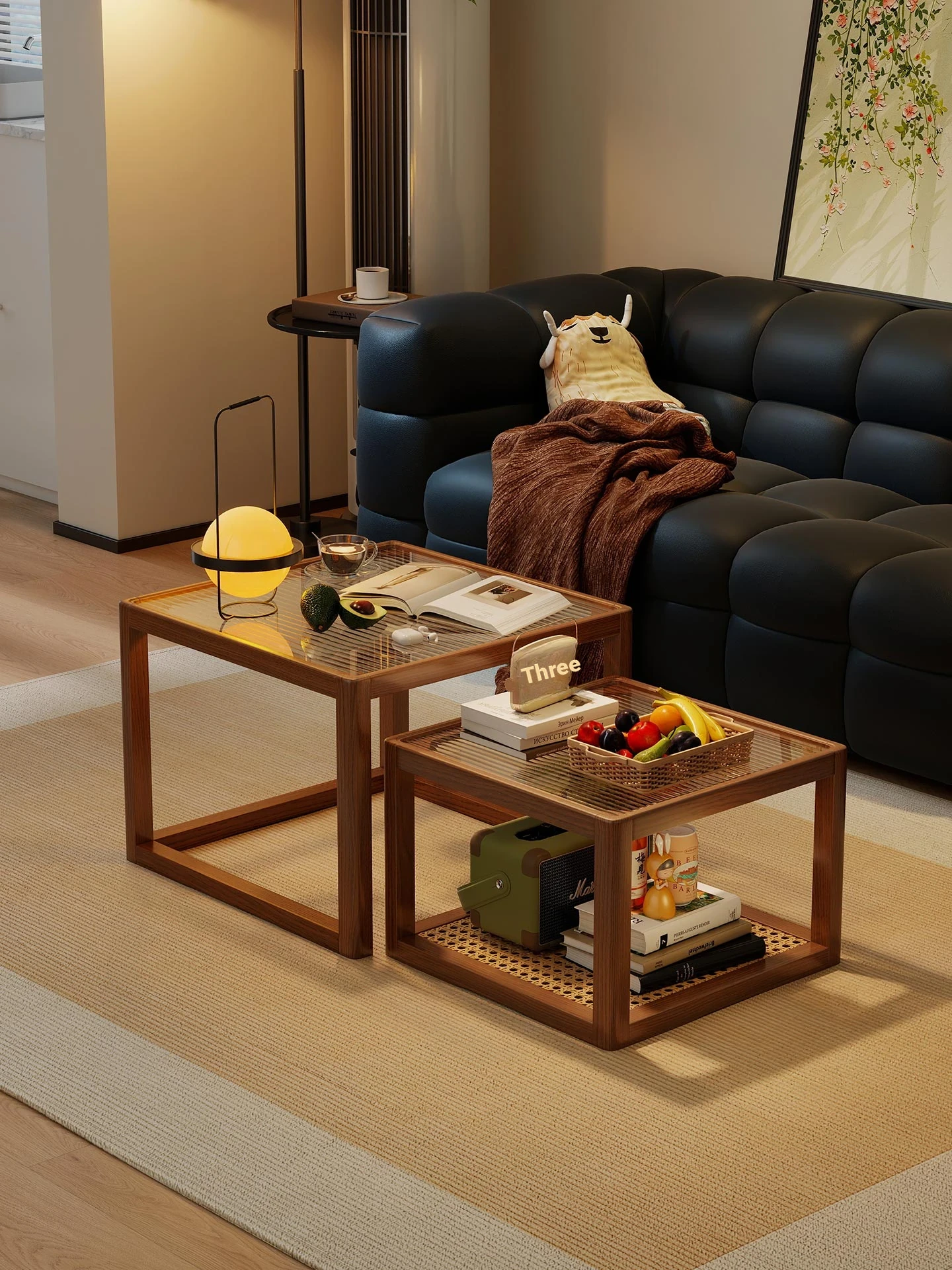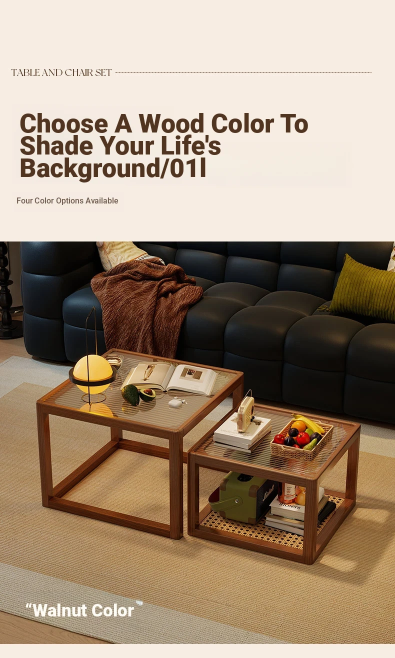 Sugar Cube Coffee Table-Walnut Color [Changhong Glass + Rattan]