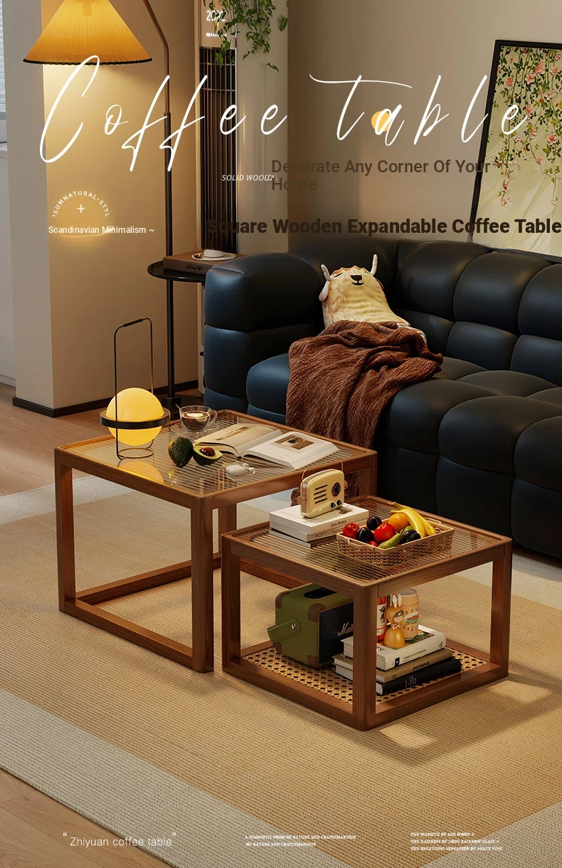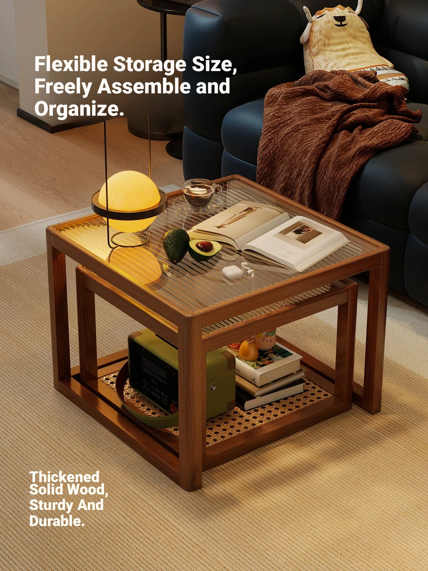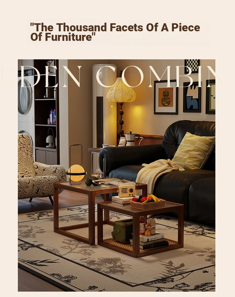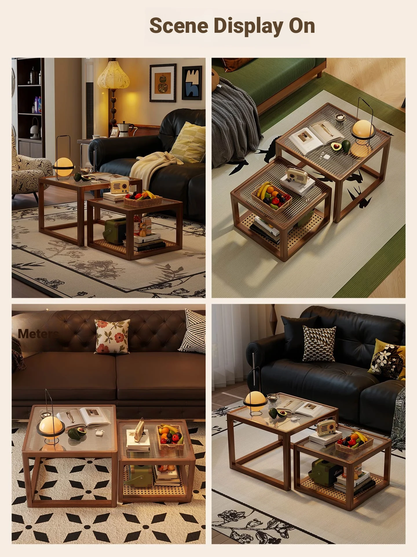 Sugar Cube Coffee Table-Walnut Color [Changhong Glass + Rattan]