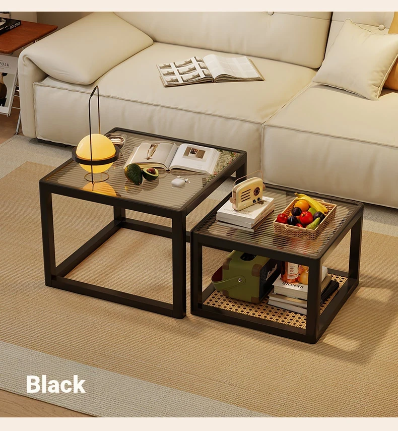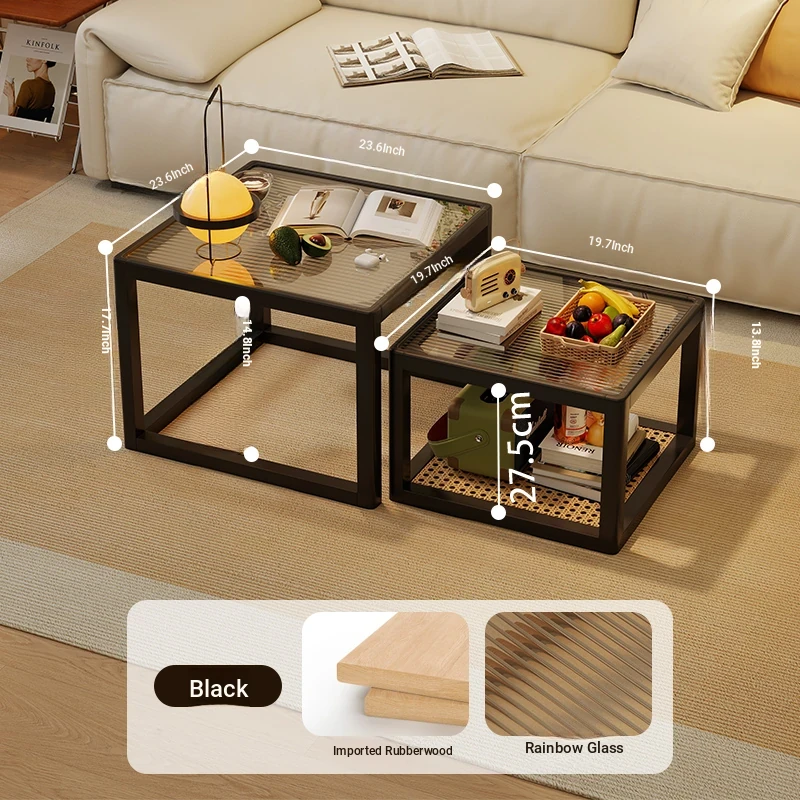 Sugar Cube Coffee Table-Black [Changhong Glass + Rattan]