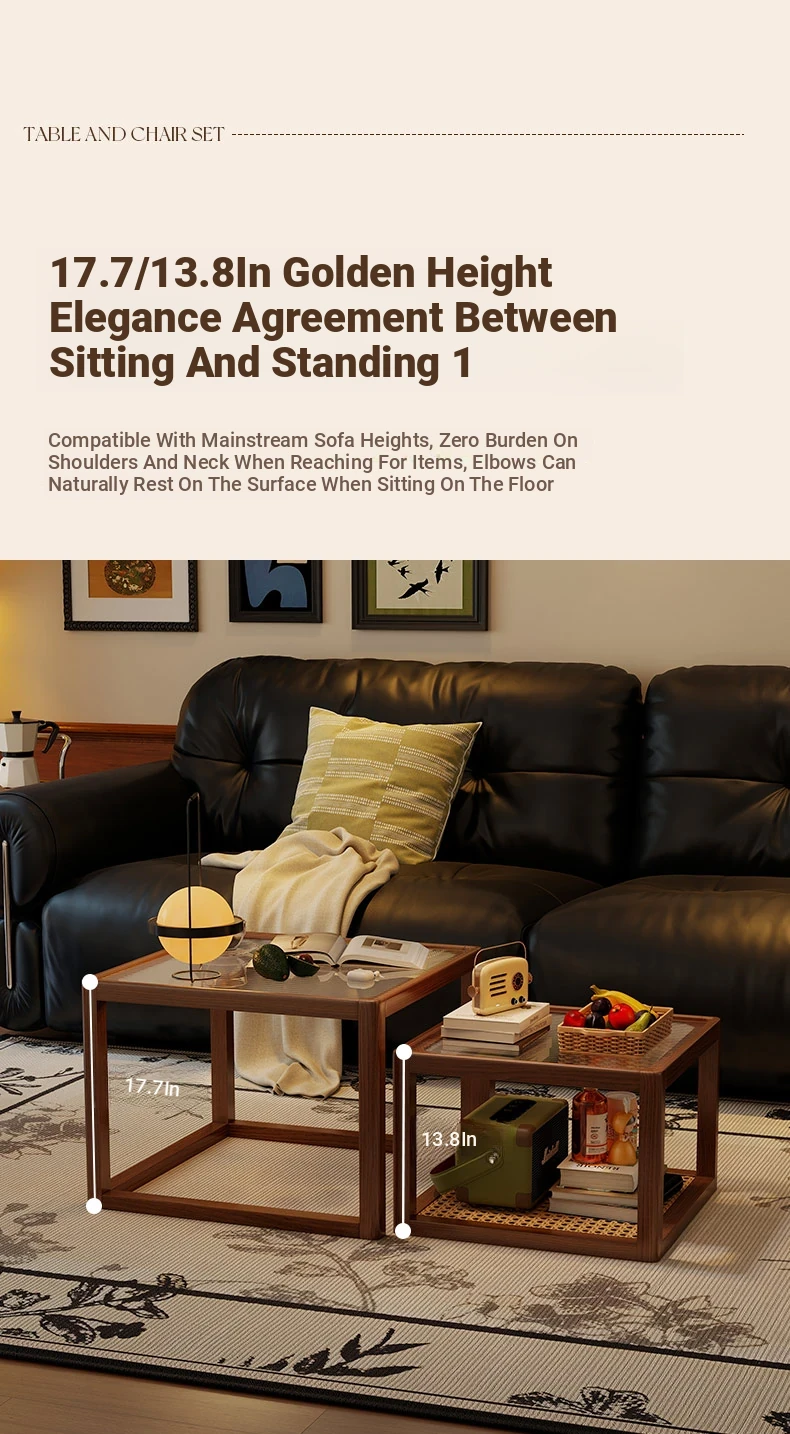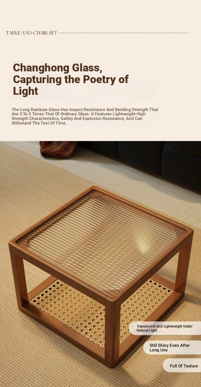 Sugar Cube Coffee Table-Cherry Wood Color [Changhong Glass + Rattan]