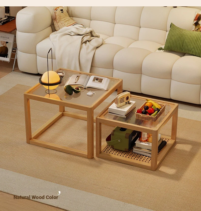 Sugar Cube Coffee Table - Wood Color [Changhong Glass + Rattan]