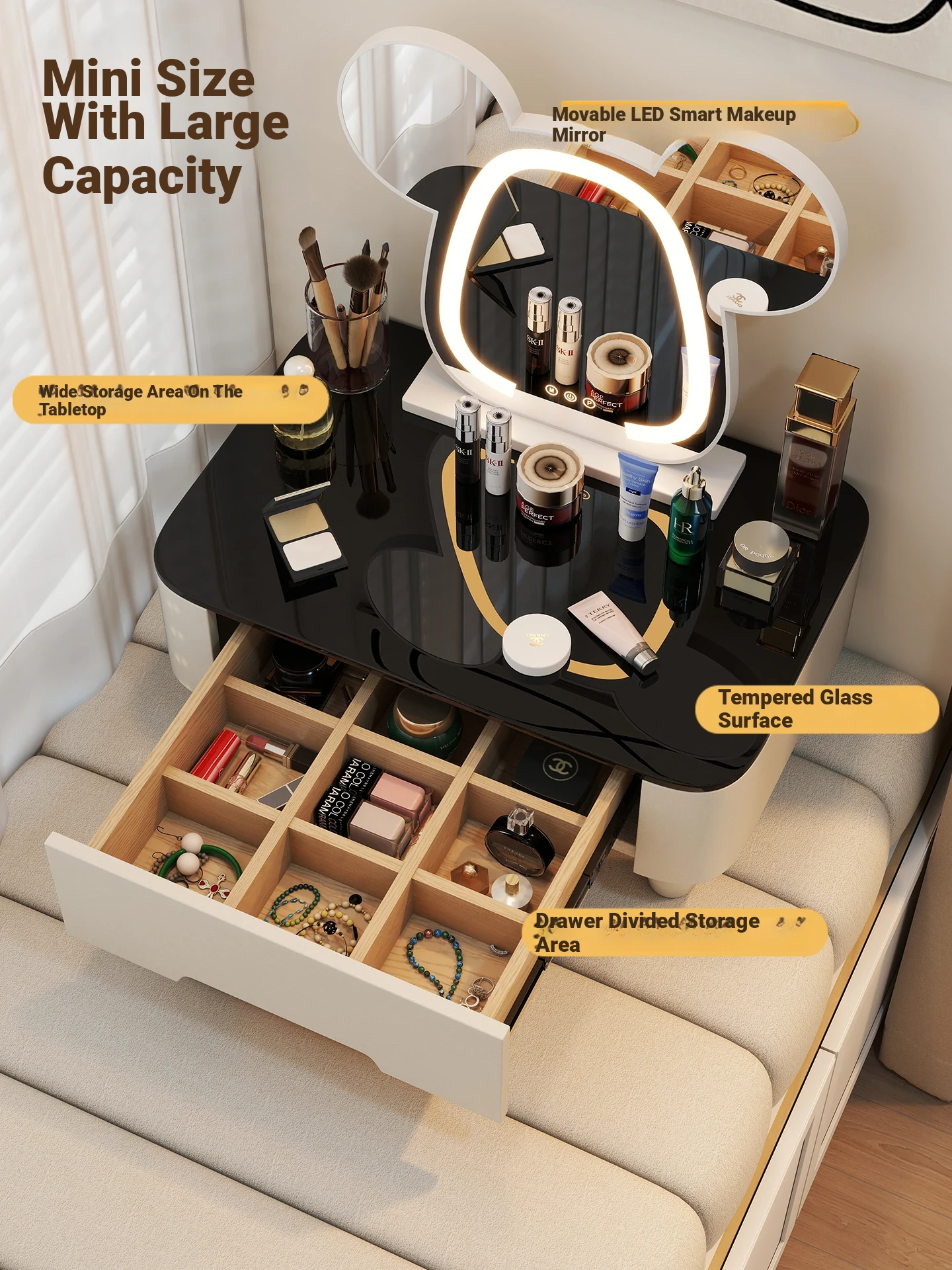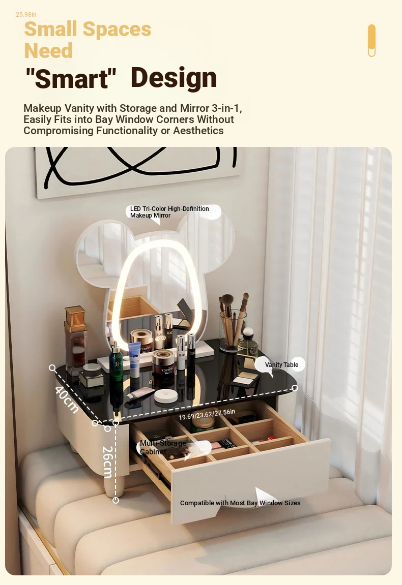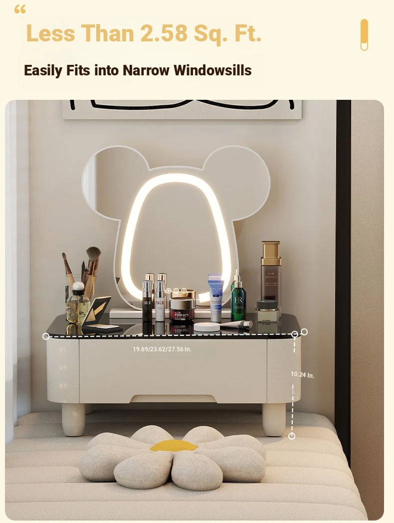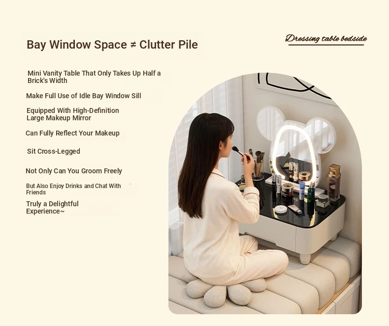 Modern Minimalist Window Sill Dressing Table Storage Cabinet - Space-Saving Multifunctional Makeup Vanity for Small Apartments and Tatami Rooms