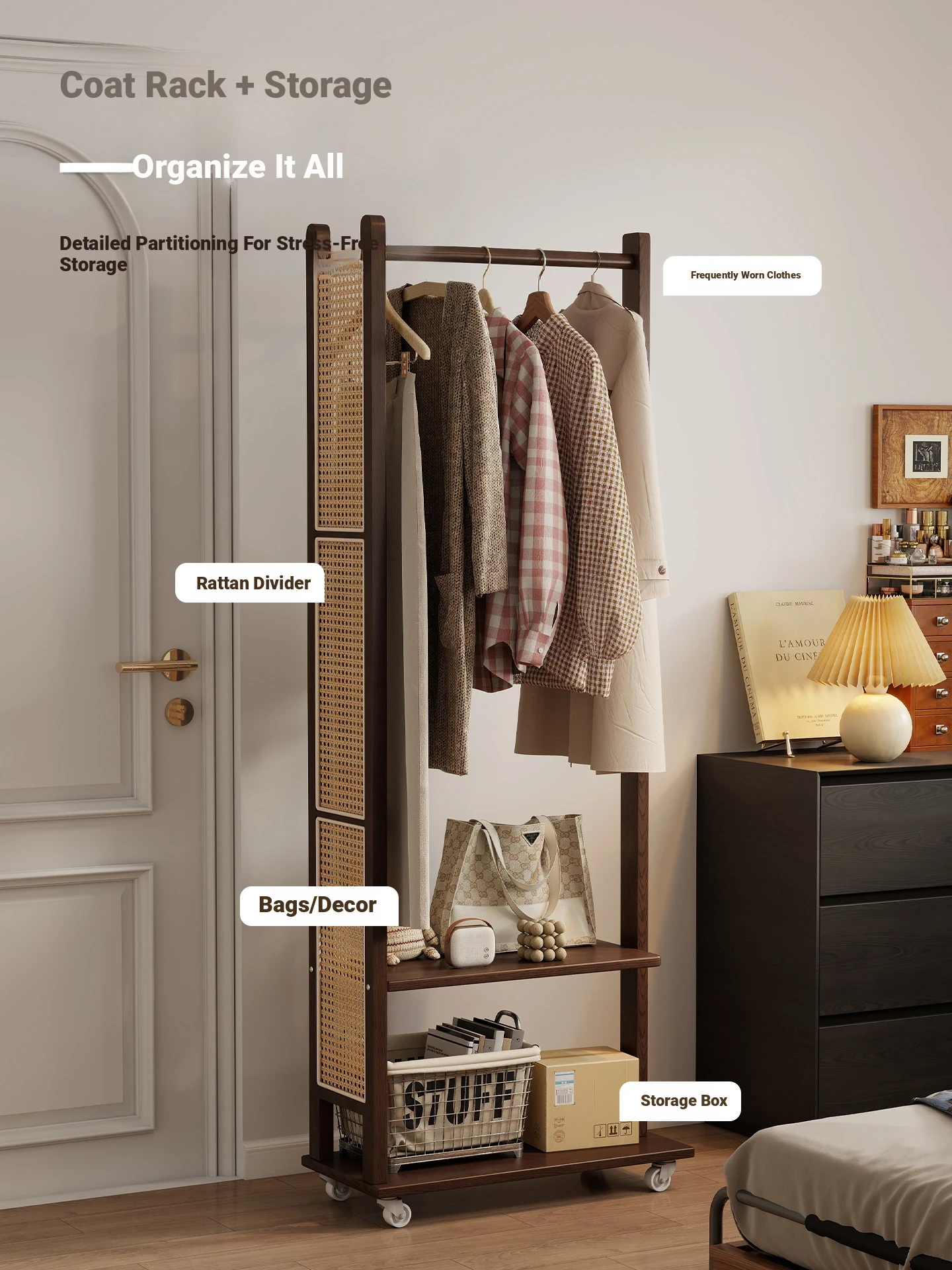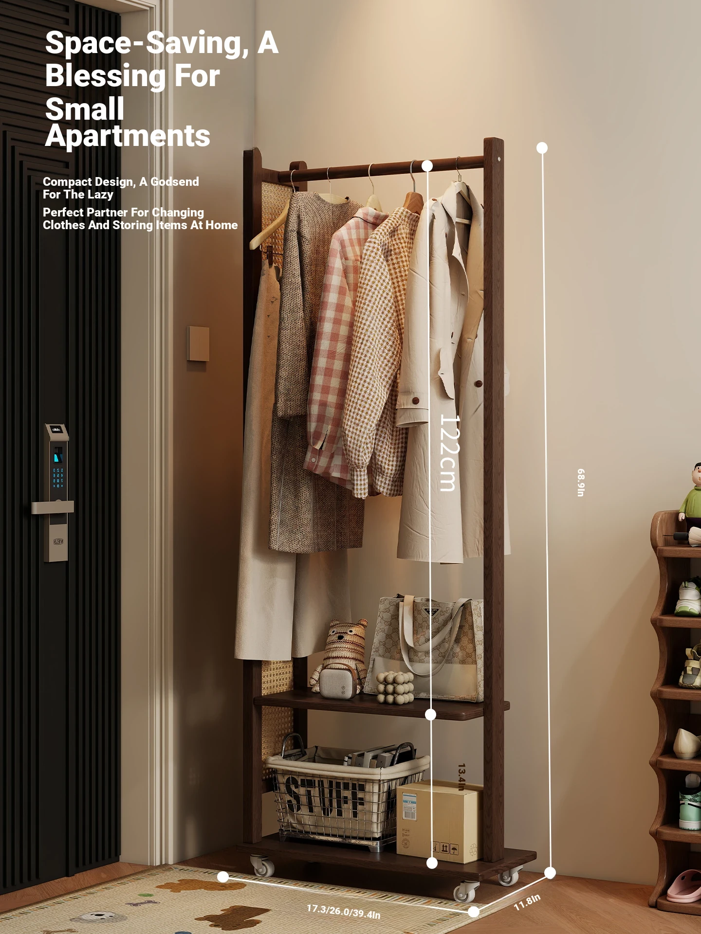 Multifunctional Freestanding Clothes Rack for Small Bedrooms - Modern Minimalist Entryway Garment Organizer, Easy to Move and Stylish Storage Solution