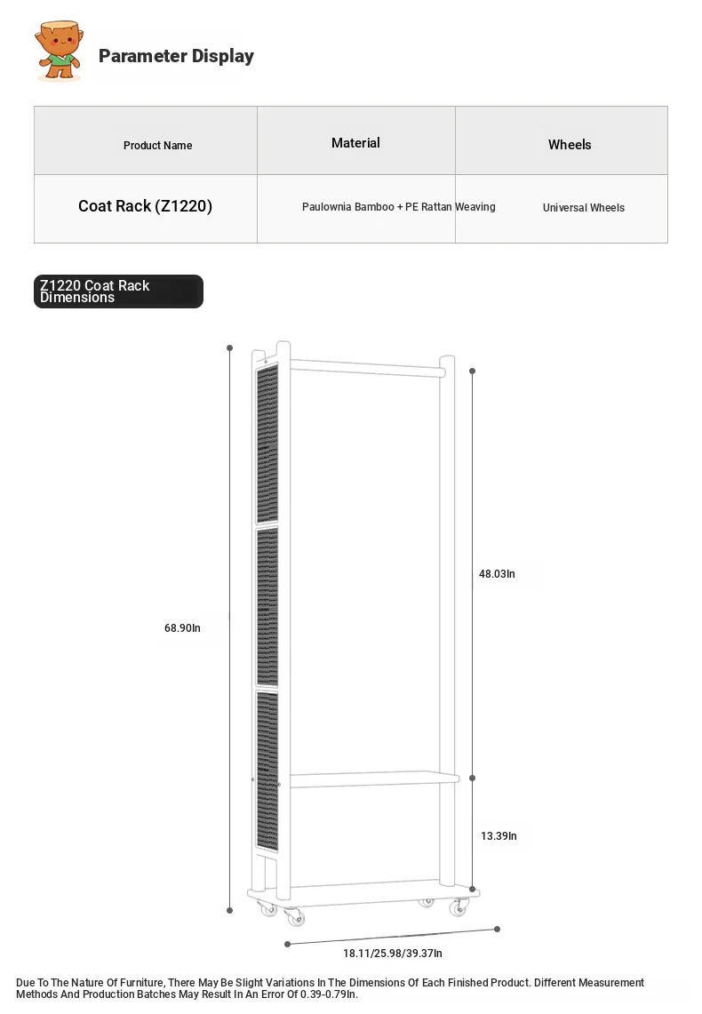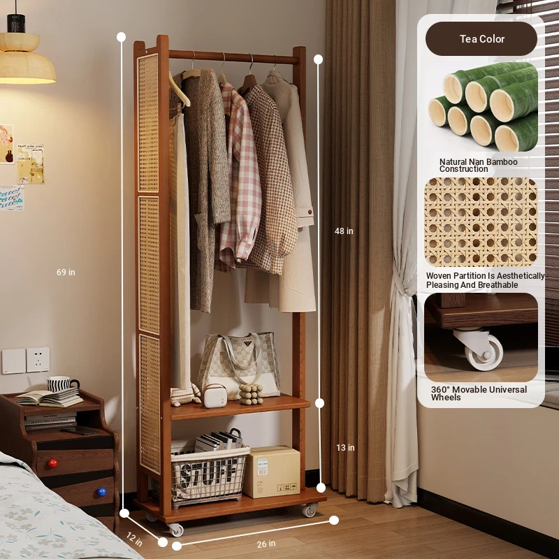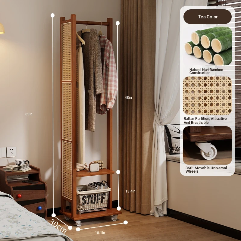 18.11in [Brown] Removable Coat Rack-Natural Bamboo
