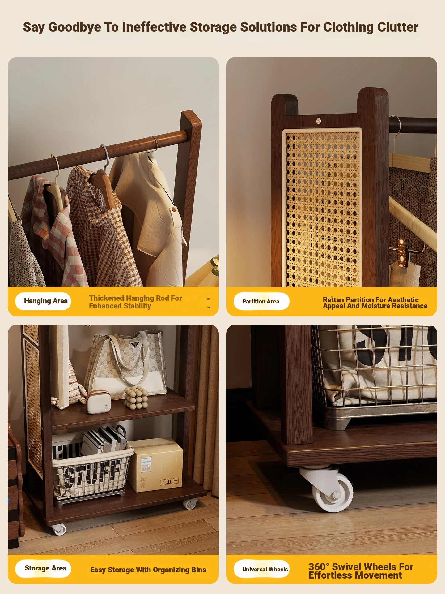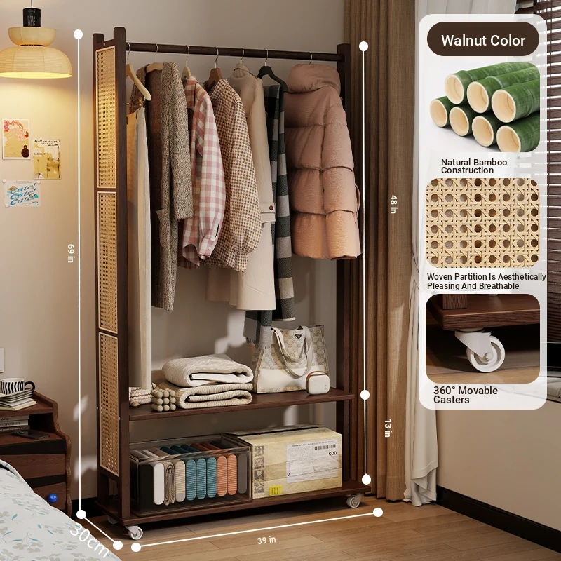 39.37in [Walnut Color] Removable Coat Rack-Natural Bamboo