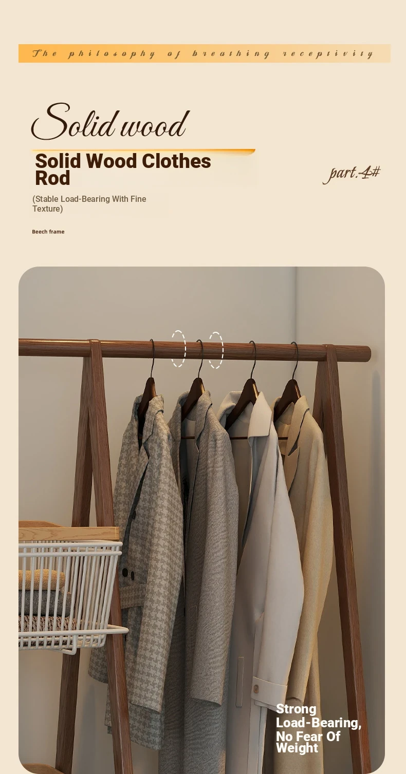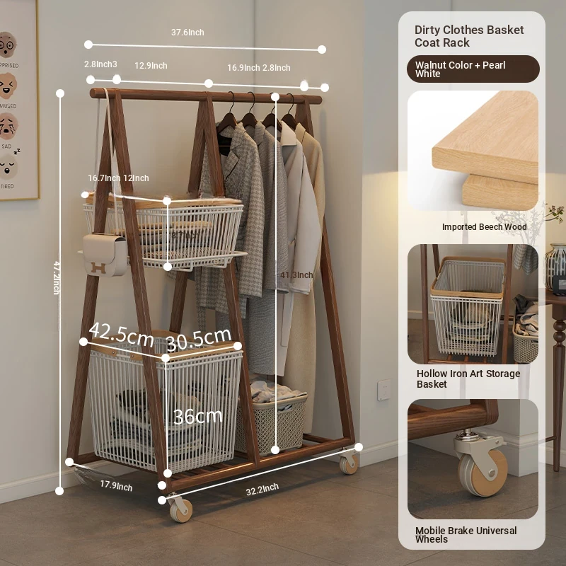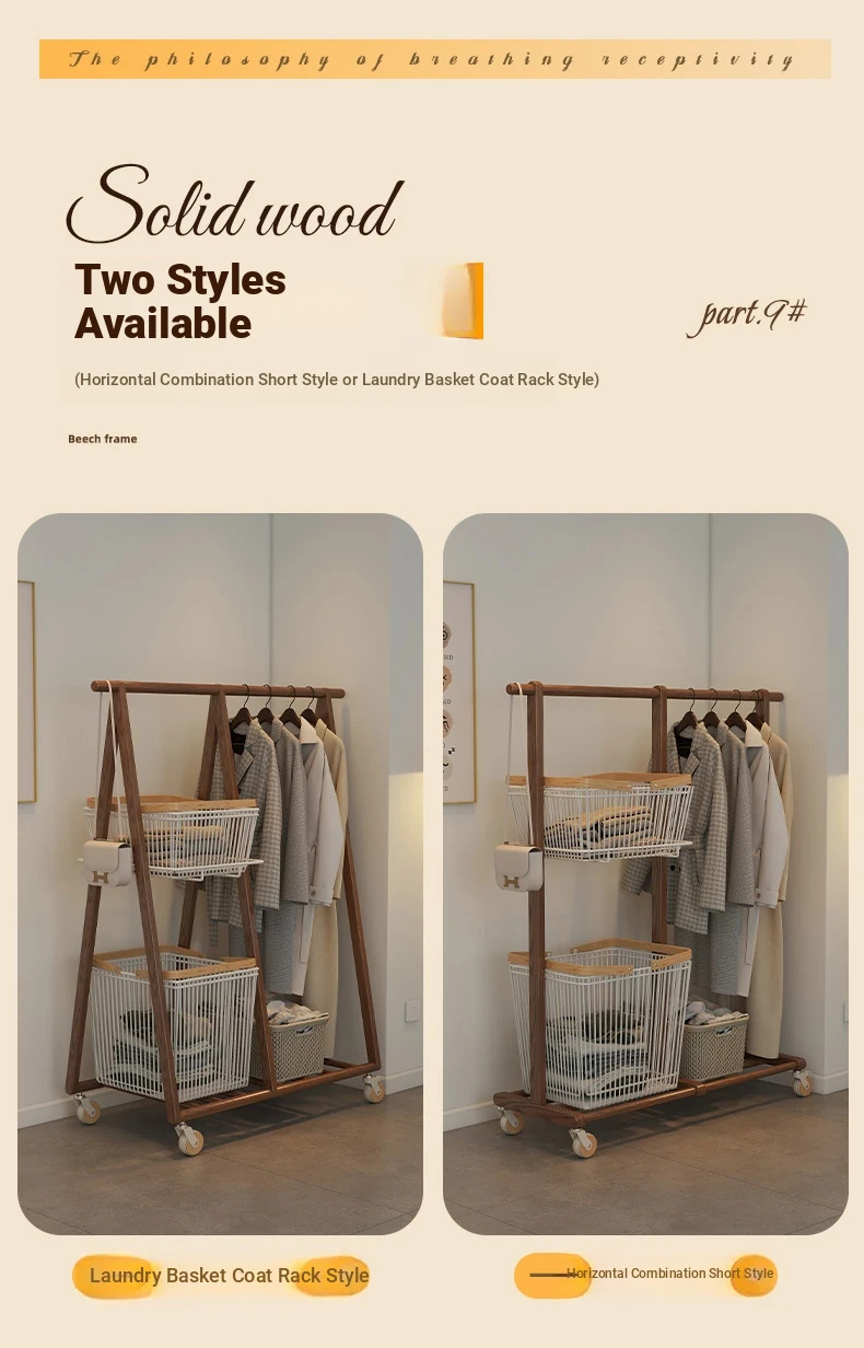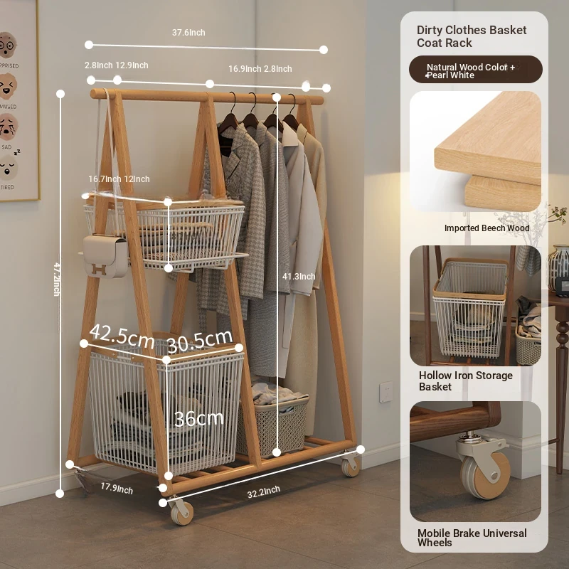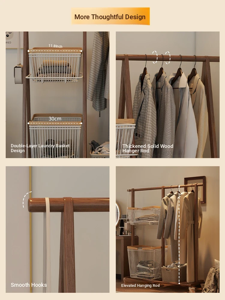 Multifunctional Solid Wood Freestanding Coat Rack - Portable and Easy to Move, Ideal for Bedroom Use, Perfect for Hanging Clothes and Laundry Drying in Your Home