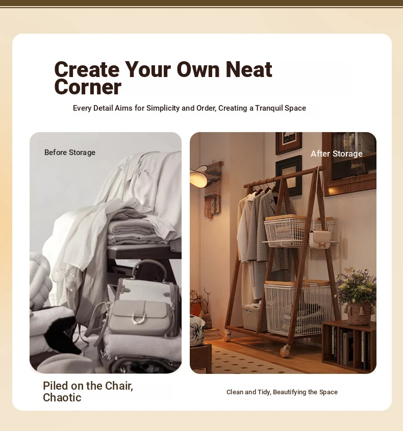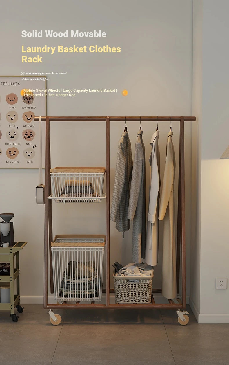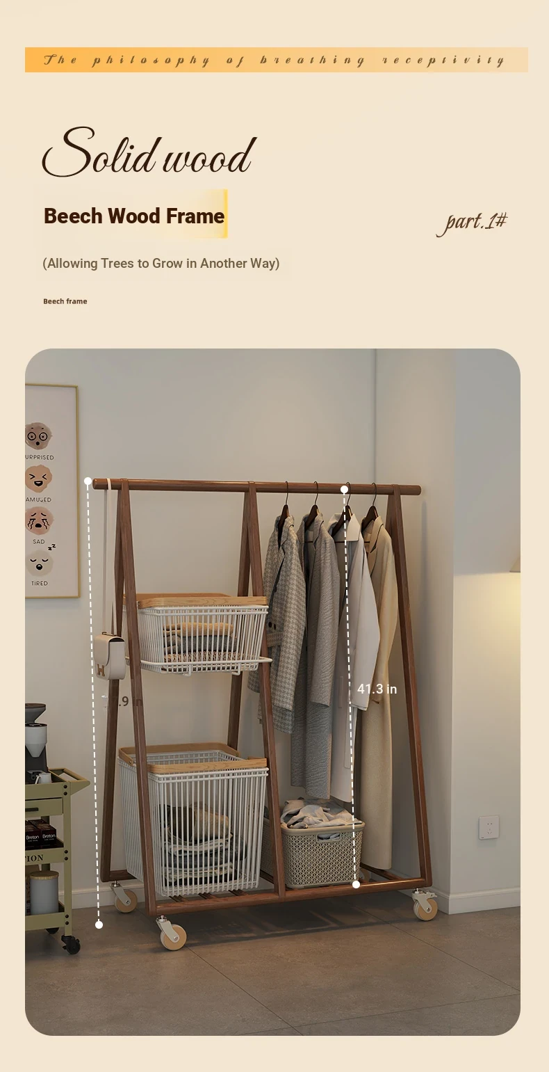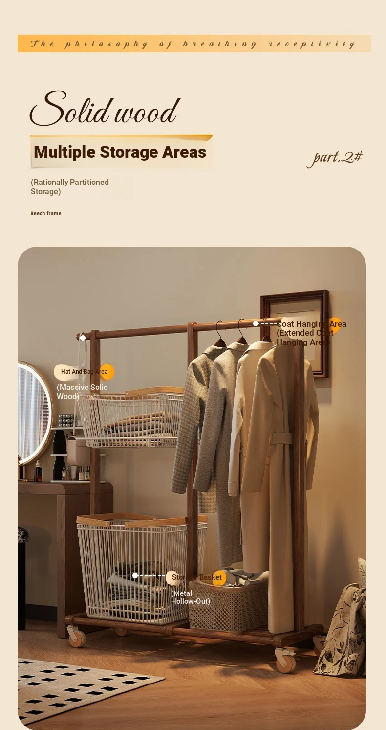 Multifunctional Solid Wood Freestanding Coat Rack - Portable and Easy to Move, Ideal for Bedroom Use, Perfect for Hanging Clothes and Laundry Drying in Your Home