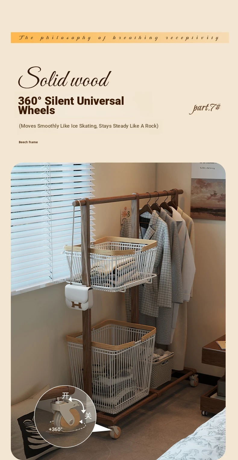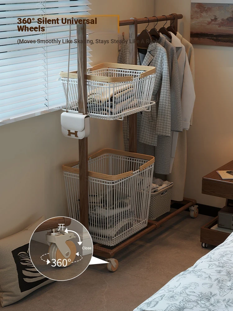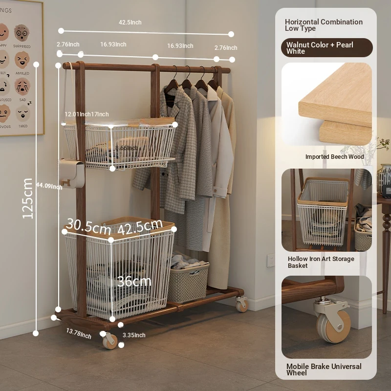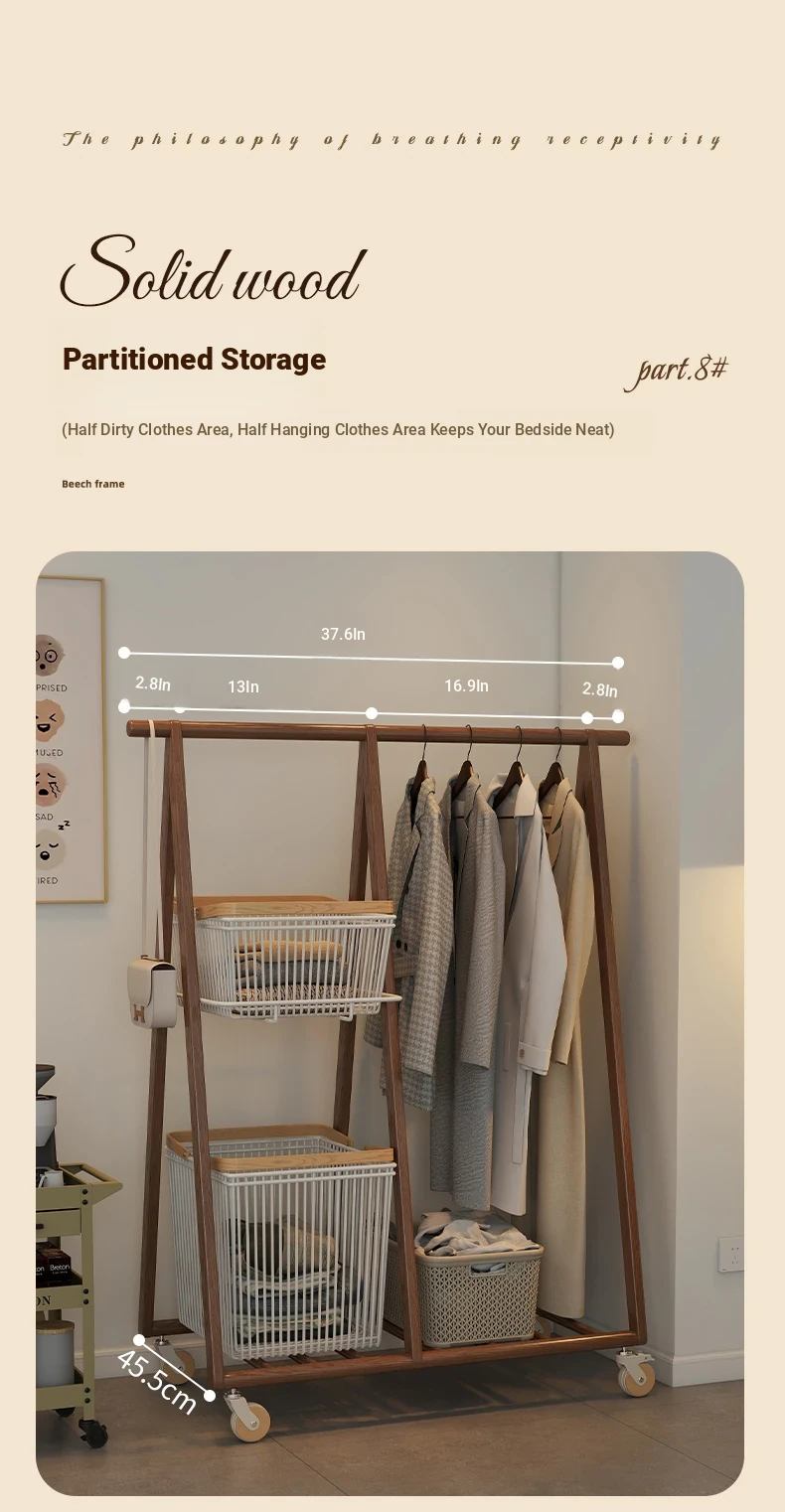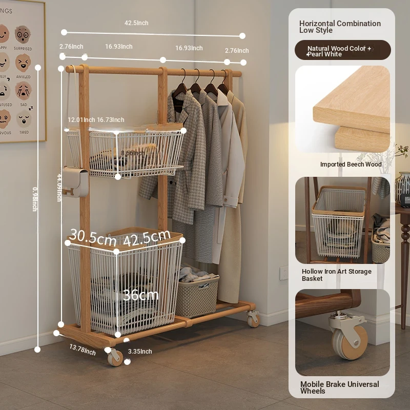 Multifunctional Solid Wood Freestanding Coat Rack - Portable and Easy to Move, Ideal for Bedroom Use, Perfect for Hanging Clothes and Laundry Drying in Your Home
