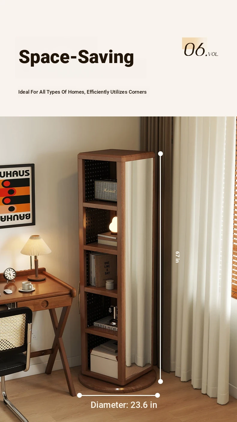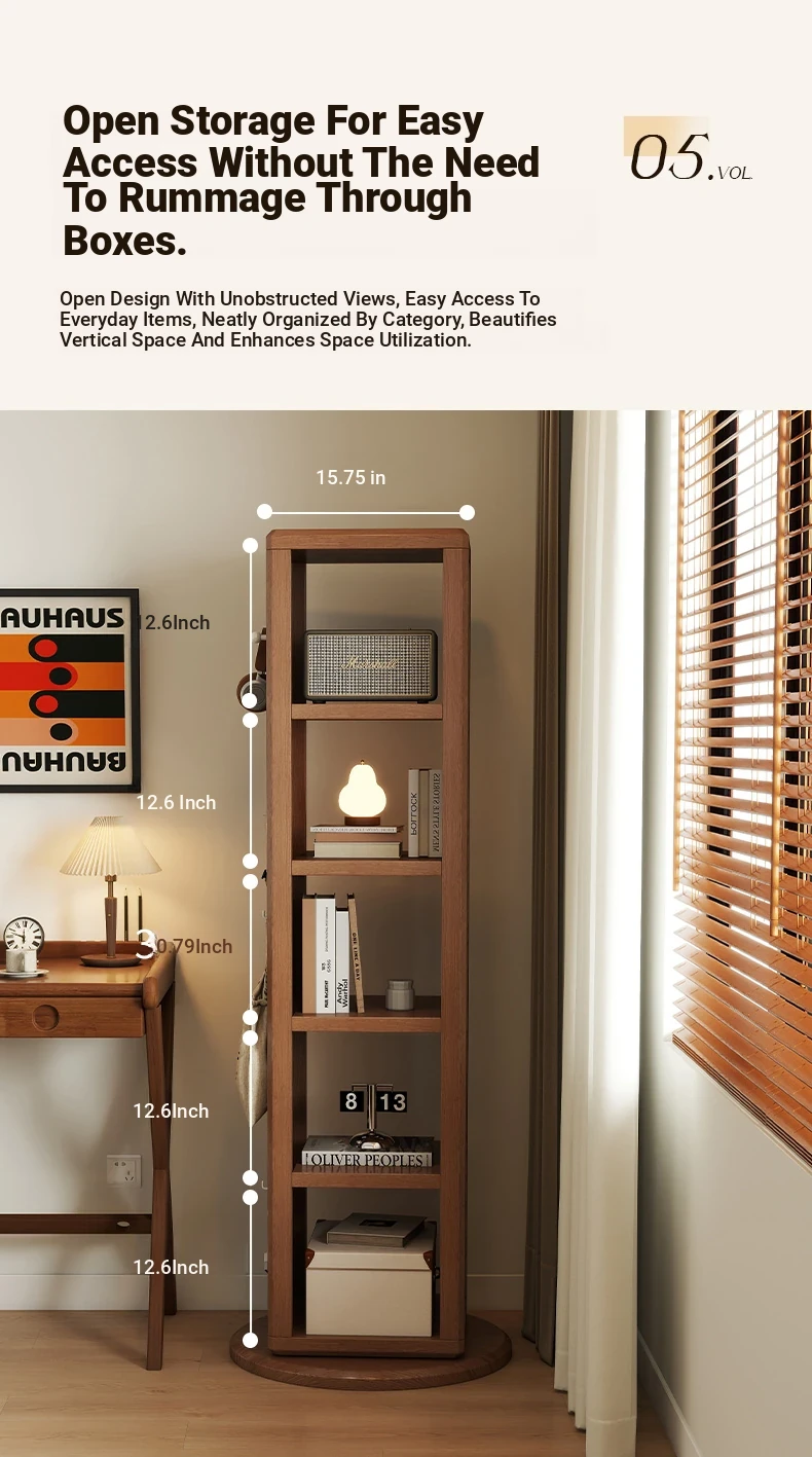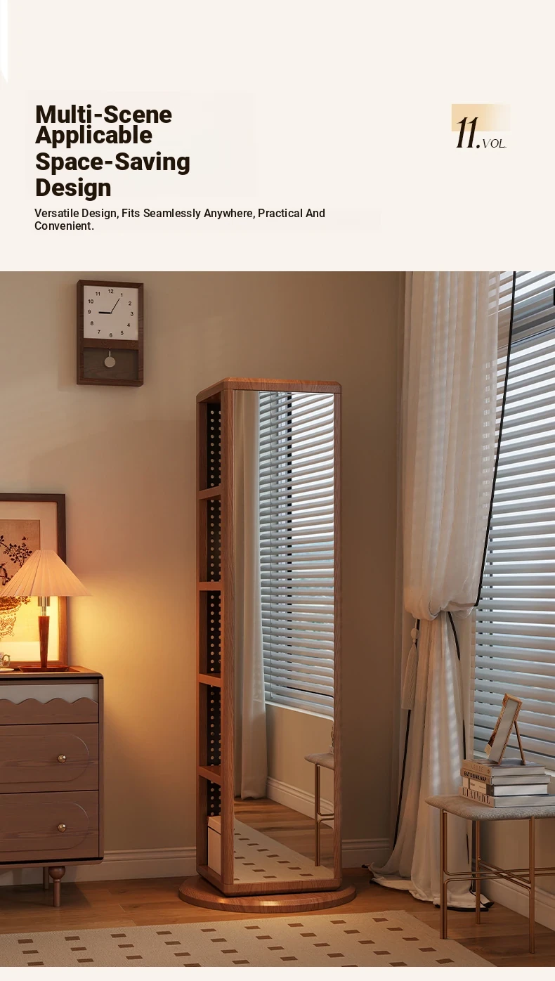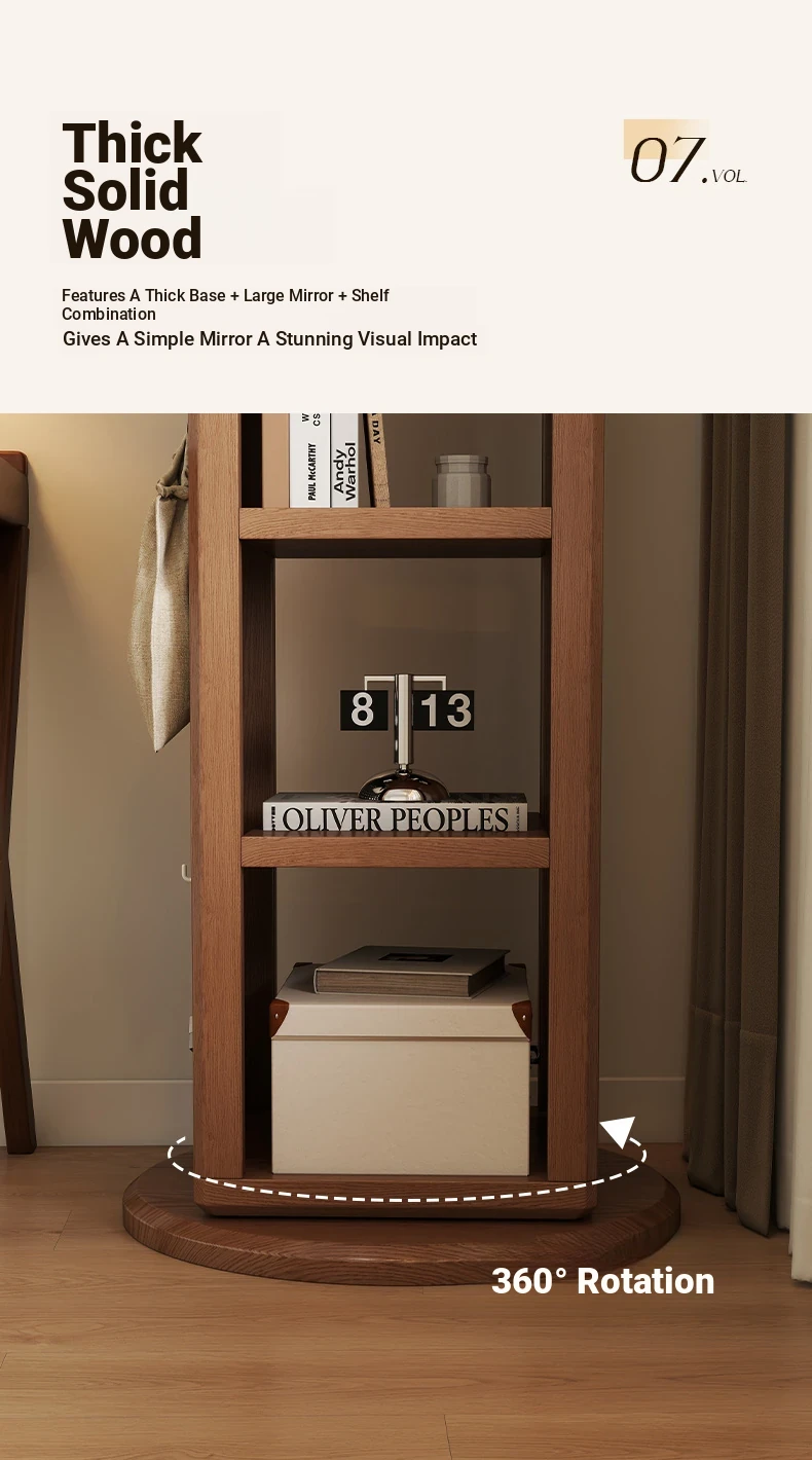 Multifunctional Wooden Full-Length Mirror with Rotating Bookshelf – Stylish Floor Storage Rack for Bedroom, Perfect for Organizing and Displaying Essentials!