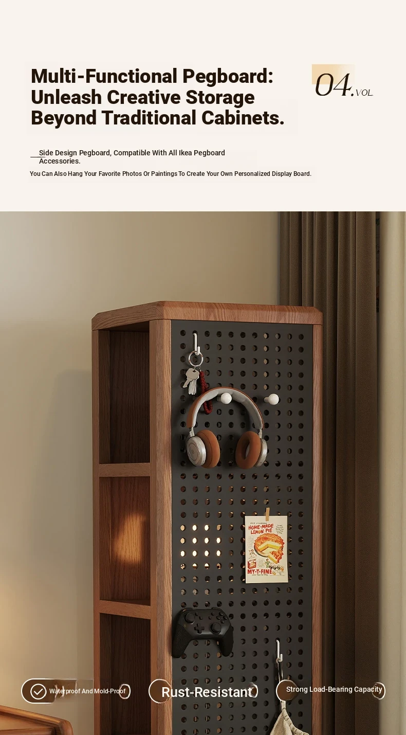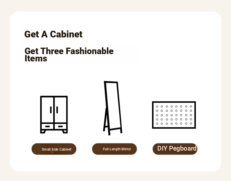 Walnut Color [Full-Length Mirror and Bookshelf Integrated]-Diy Perforated Board
