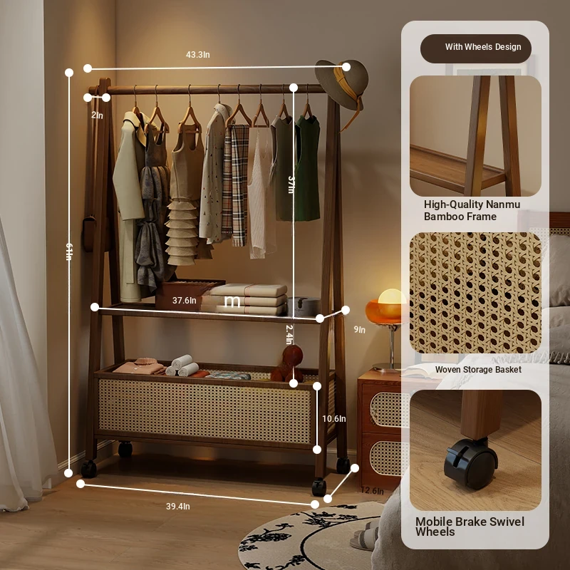 Multipurpose Floor Coat Rack for Bedroom - Movable Clothing Storage and Garment Hanger, Ideal for Home Organization and Easy Drying