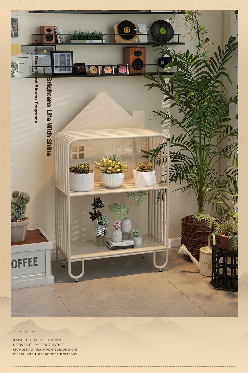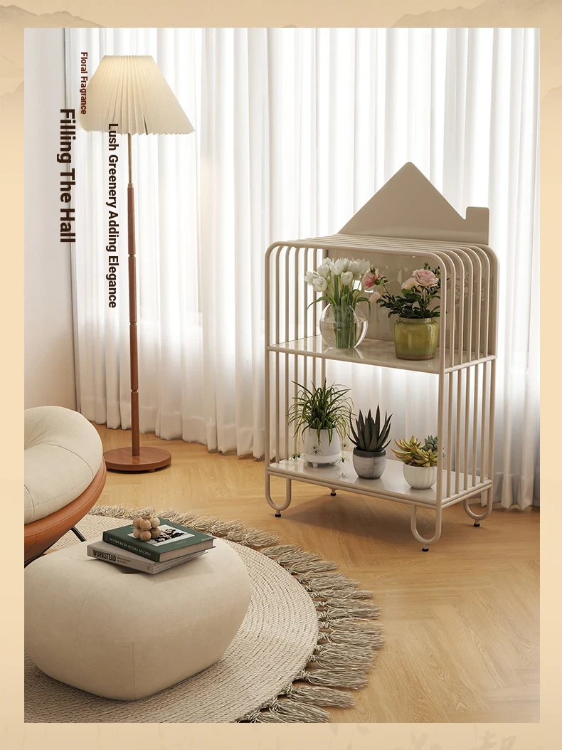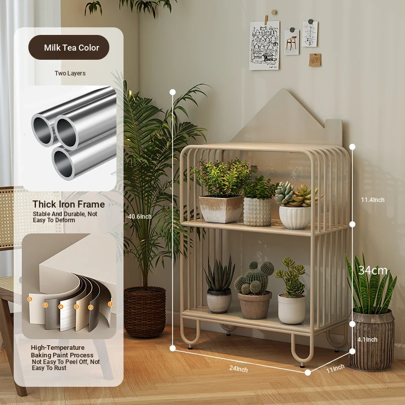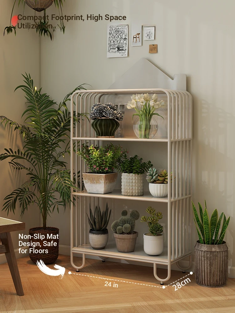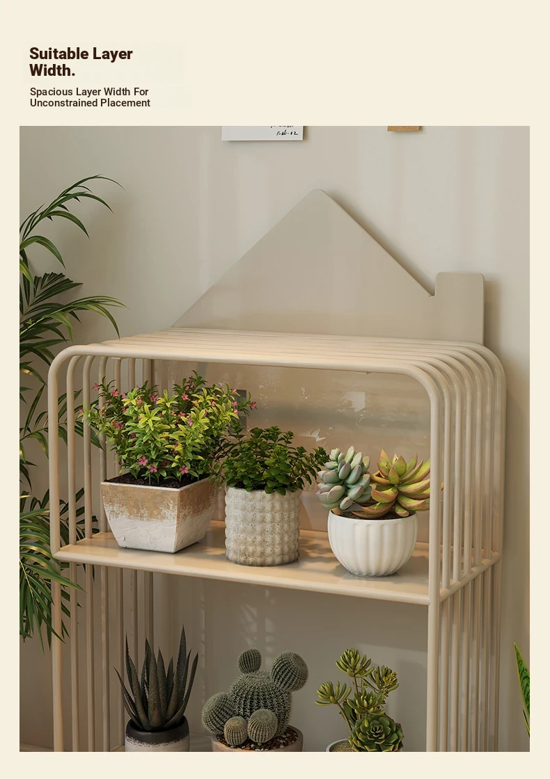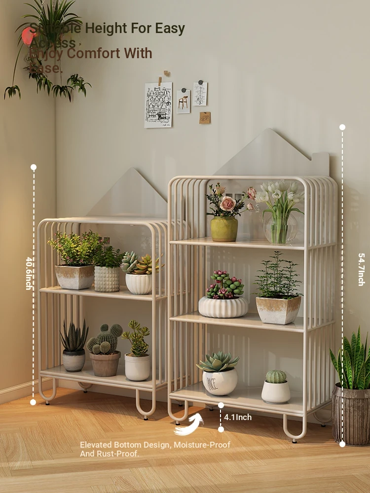 Multi-Tier Plant Stand - Creamy Minimalist Floor Iron Flower Rack for Balcony and Living Room, Spacious Storage Solution for Your Greenery